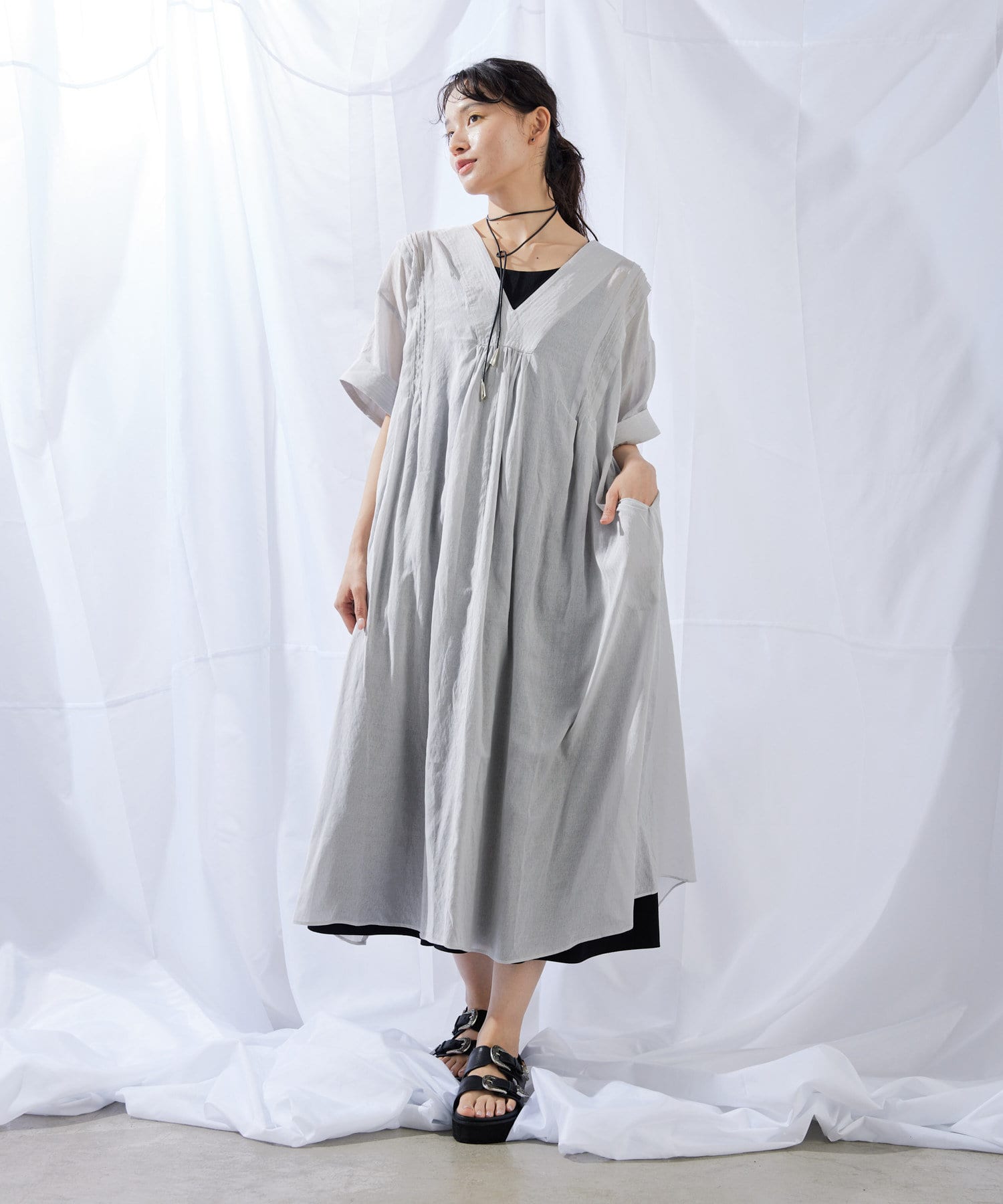 1枚で幅広い雰囲気を楽しめるワンピースとなっています。