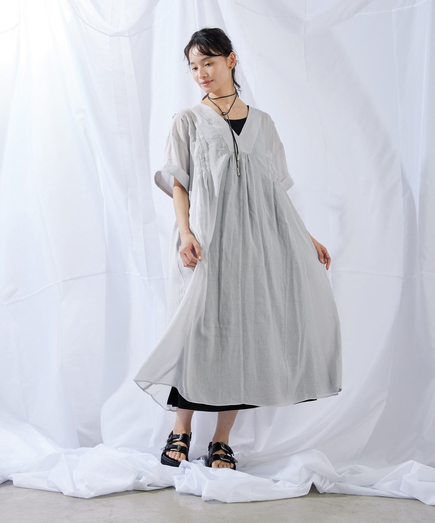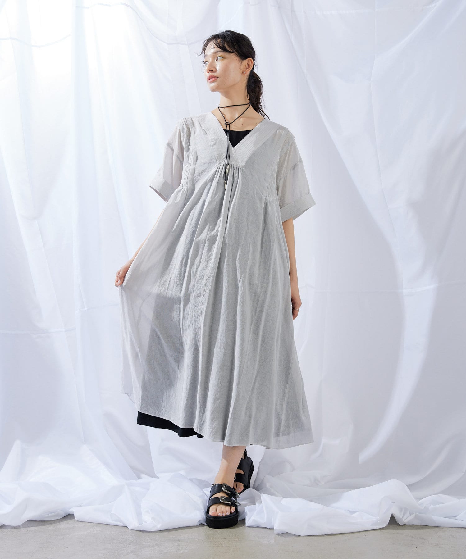 ・ほのかに透け感のある素材で軽やかな着心地