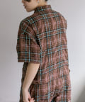 1枚でも充分にバッチリですが、麻のジャケットを羽織りチェック柄を生かした感じで着ています。