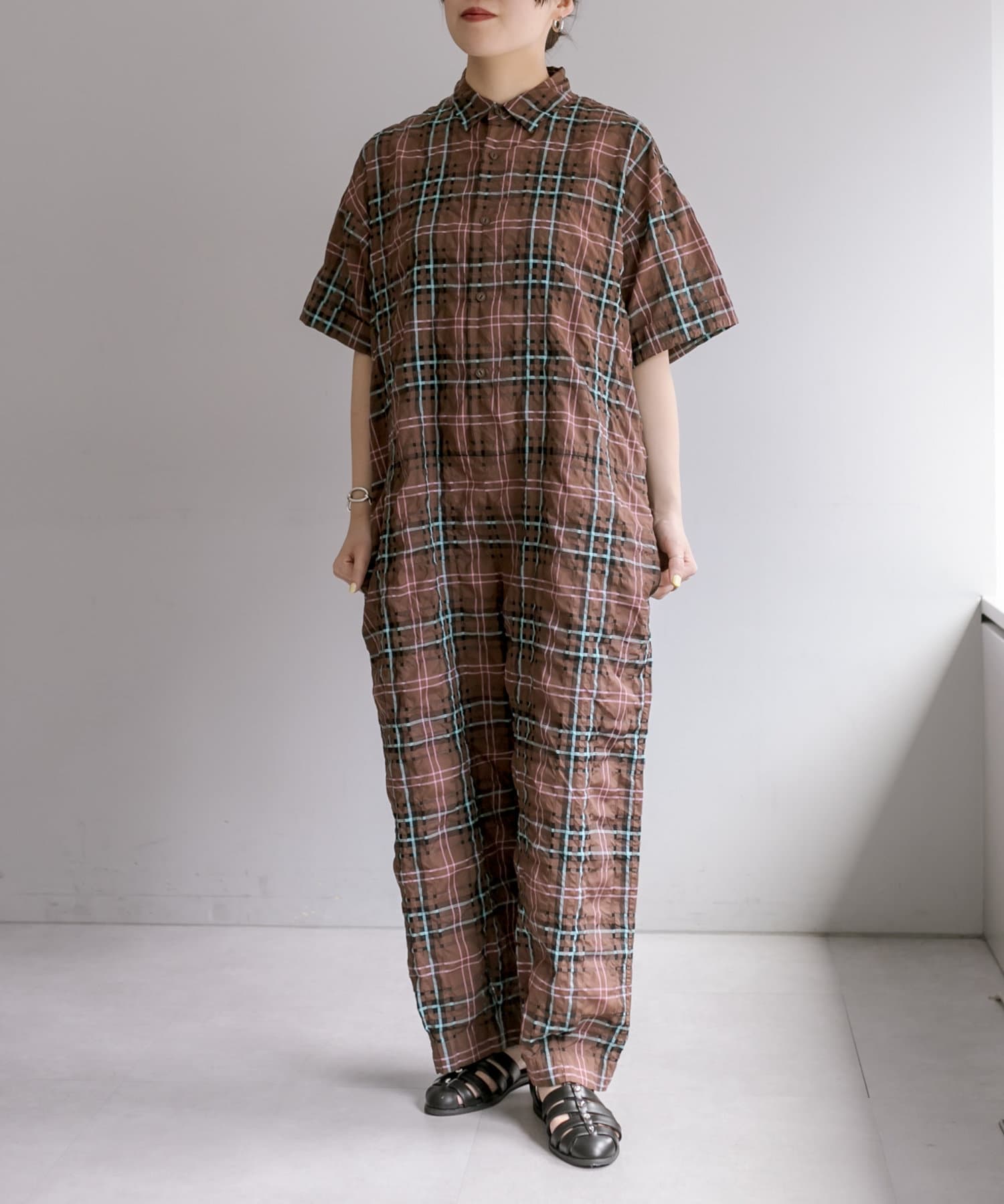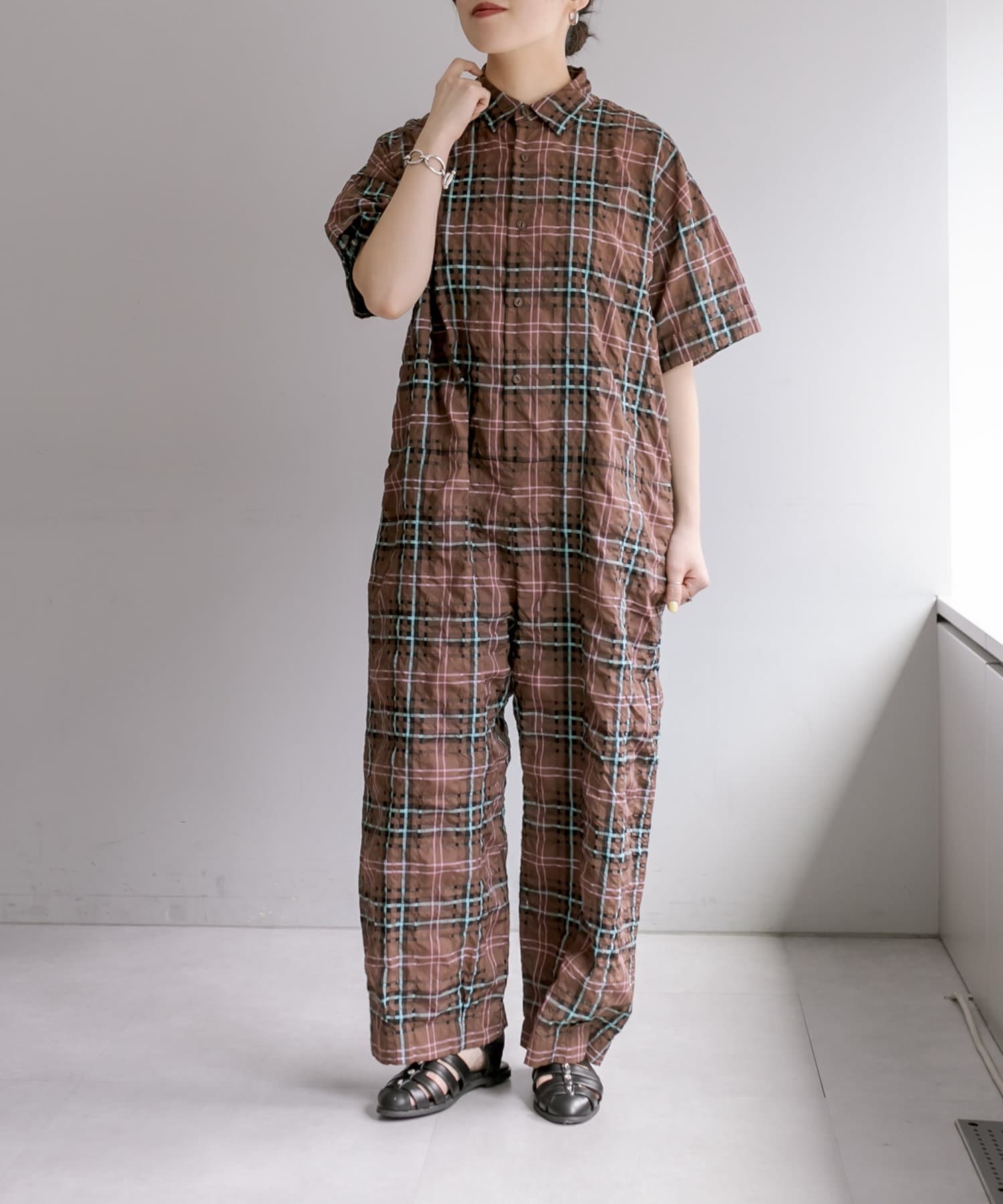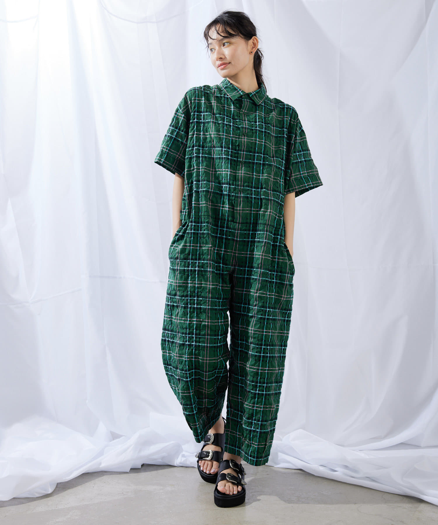 ラフで涼しい着心地が魅力のチェック柄オールインワン