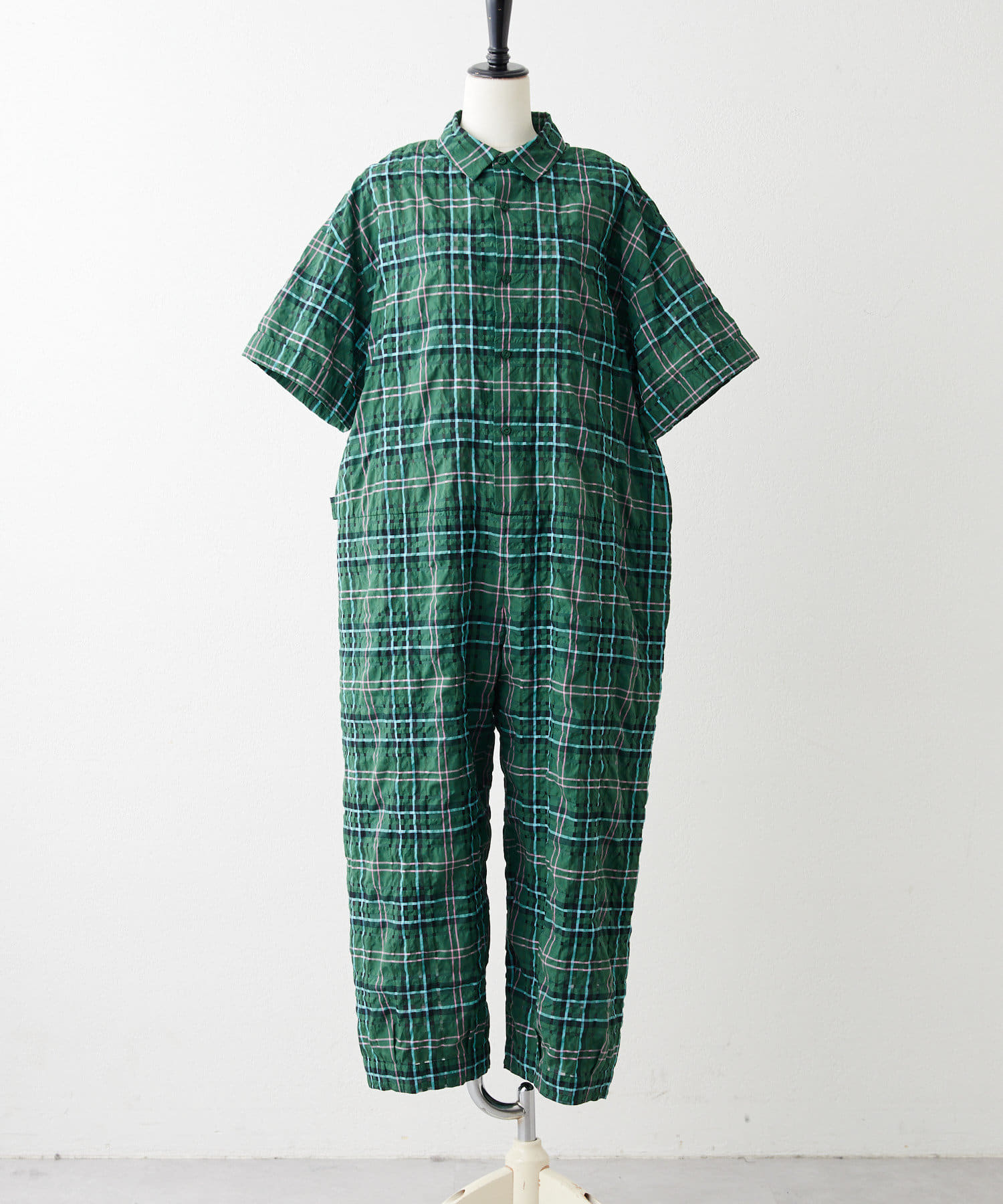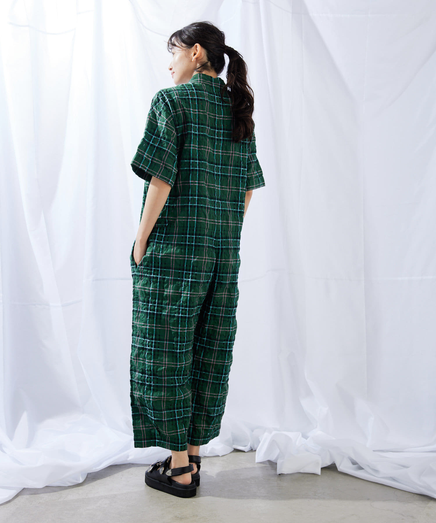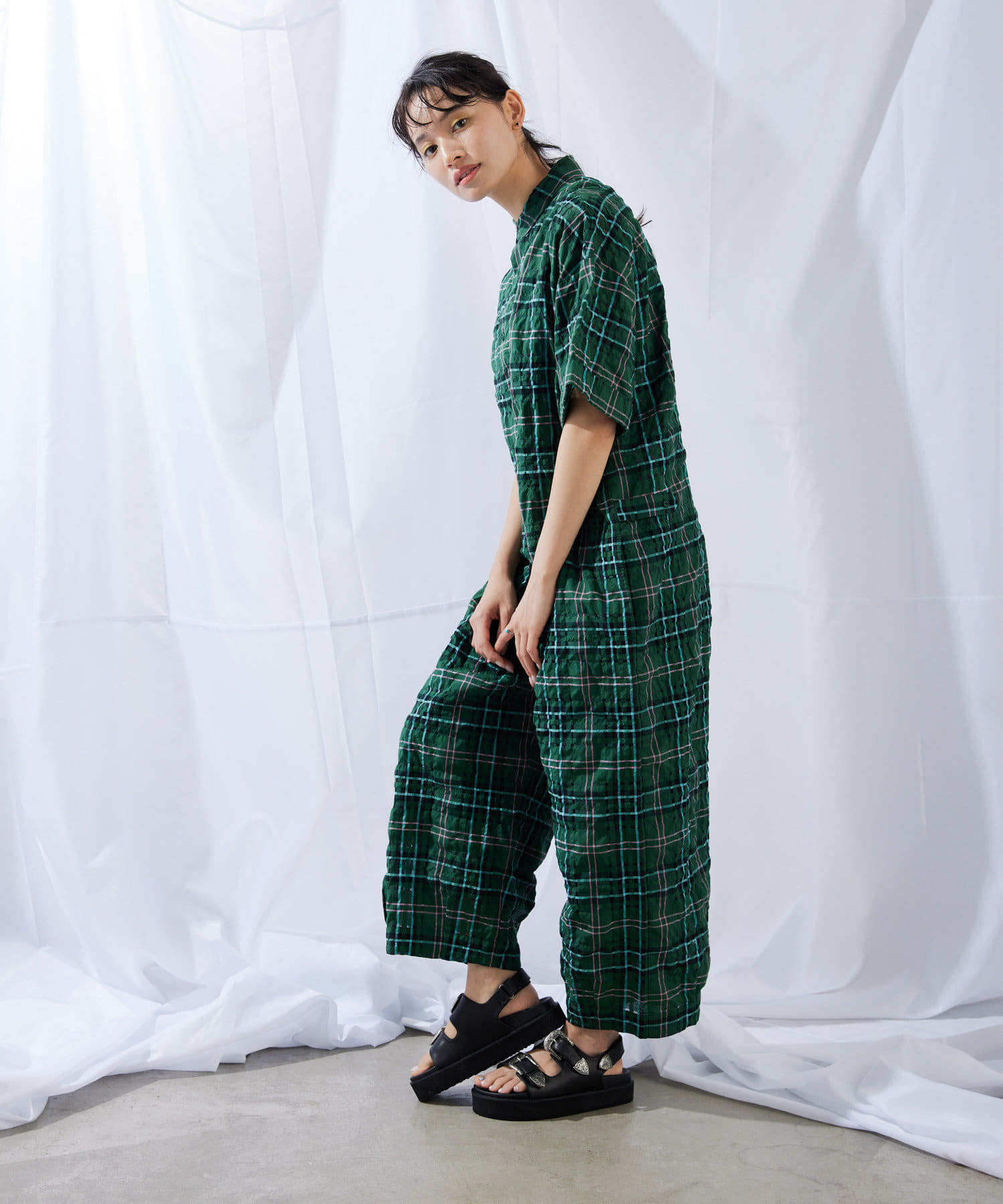 ラフで涼しい着心地が魅力のチェック柄オールインワン