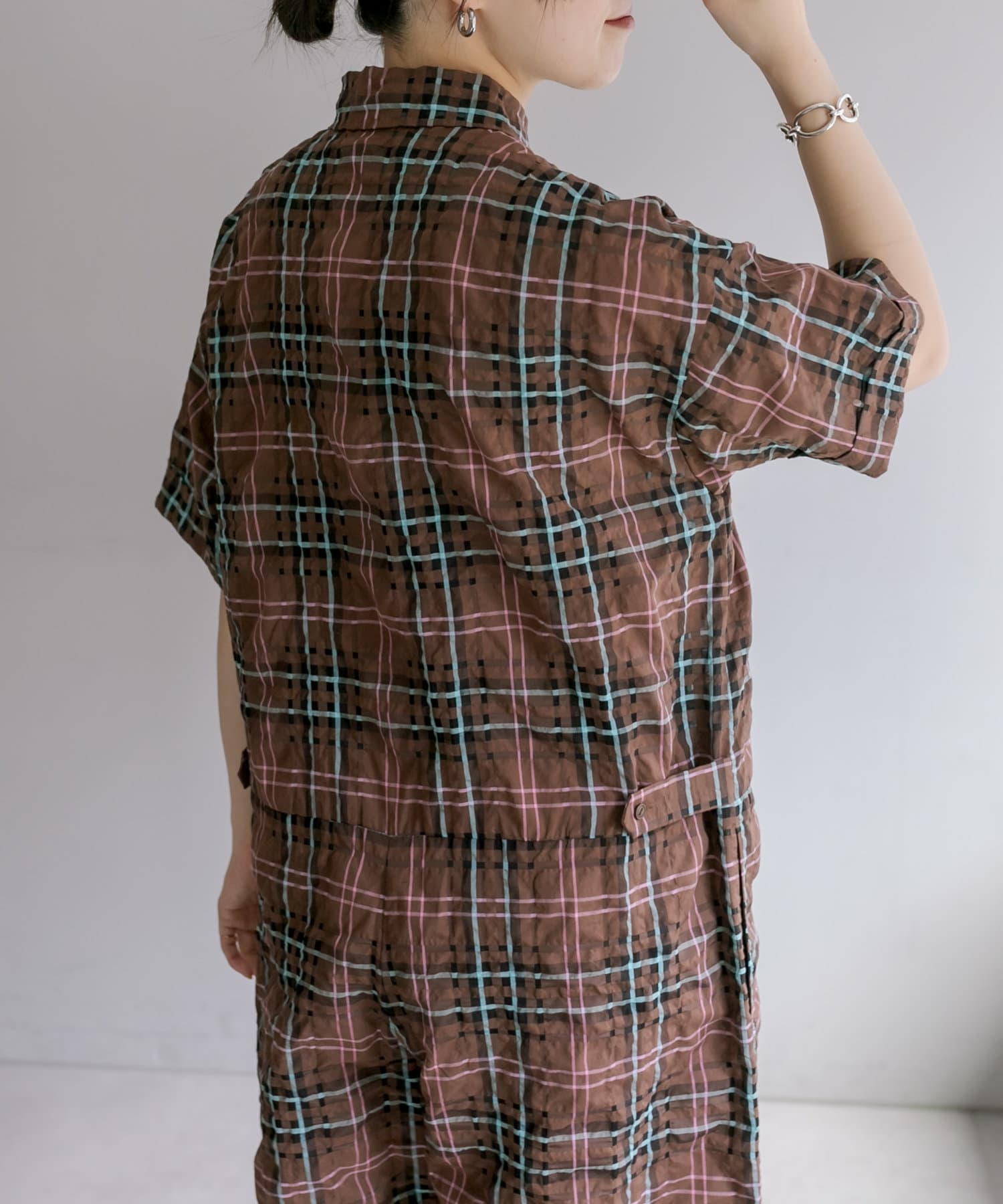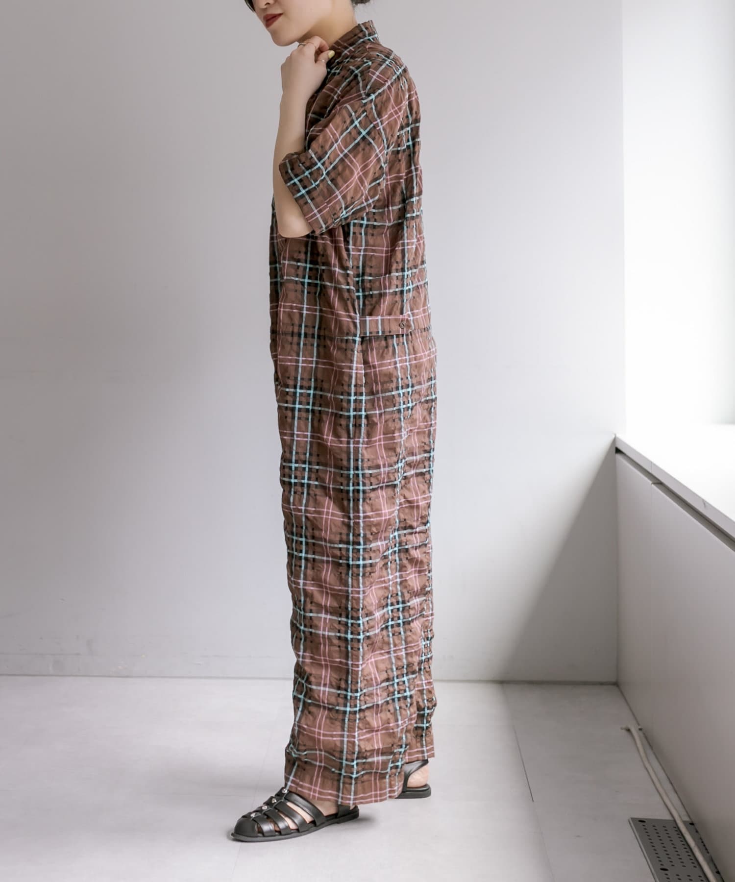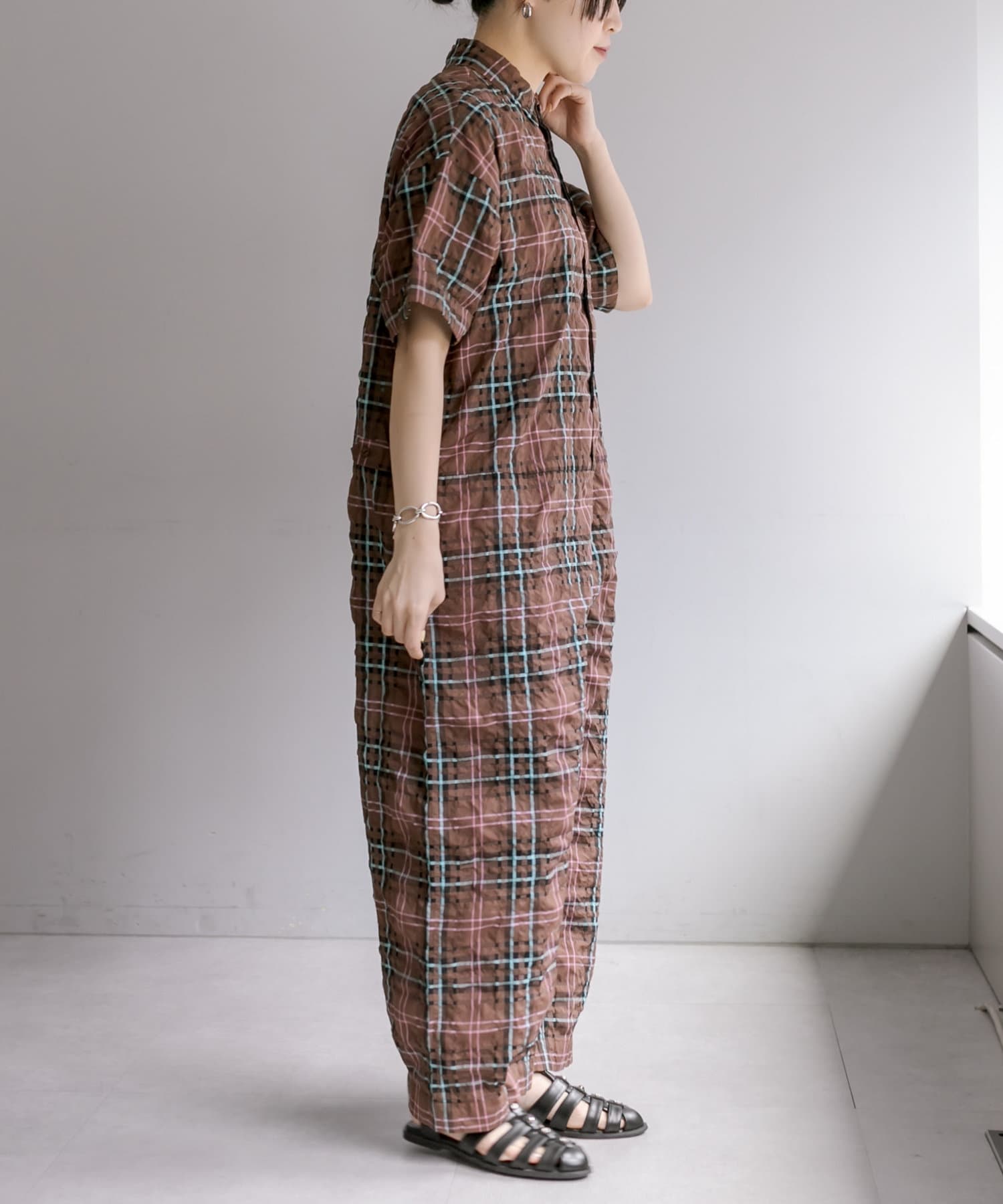 《手洗い可/肌に張り付きにくい!》チェックオールインワン【SUM1 STYLE】