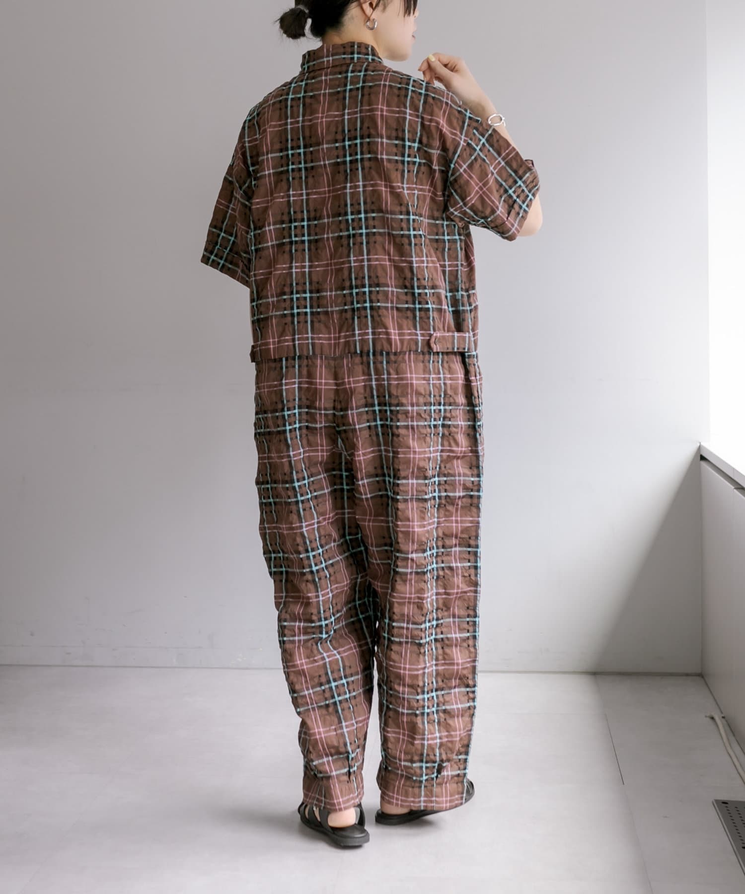 TOP > ear PAPILLONNER > レディース > オールインワン/サロペット > つなぎ/オールインワン/コンビネゾン > 《手洗い可/肌に張り付きにくい!》チェックオールインワン【SUM1 STYLE】