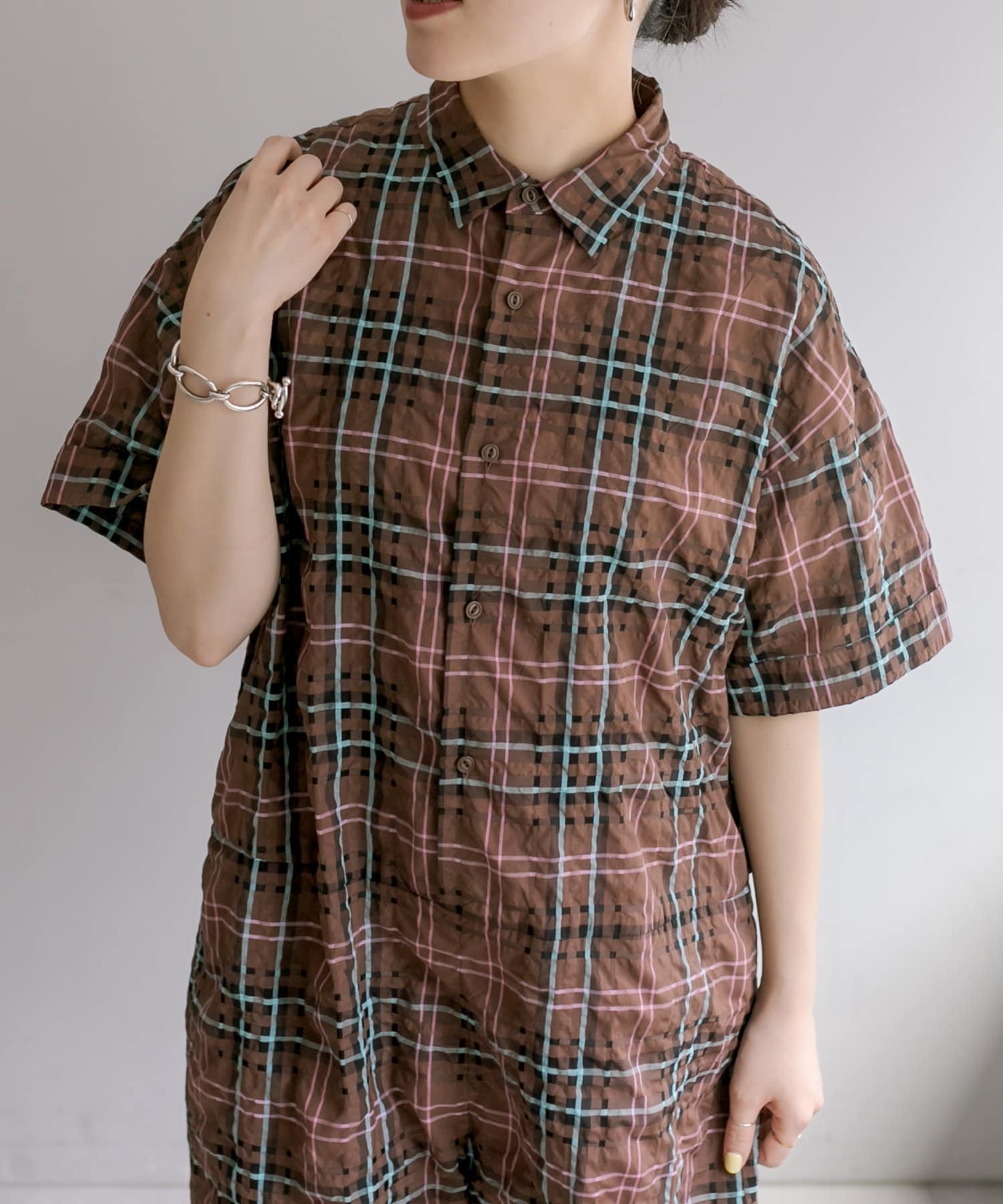 • ear PAPILLONNER(イア パピヨネ) 《手洗い可/肌に張り付きにくい!》チェックオールインワン【SUM1 STYLE】