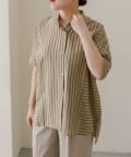 TOP > ear PAPILLONNER > レディース > トップス > シャツ/ブラウス(ボタン) > 《手洗い可》半袖ストライプシャツ【SUM1 STYLE(スミ スタイル)】
