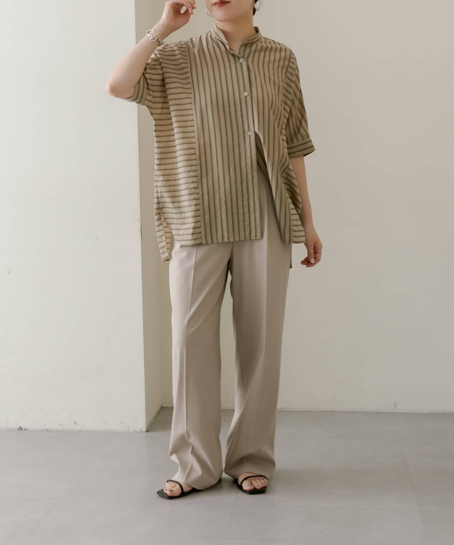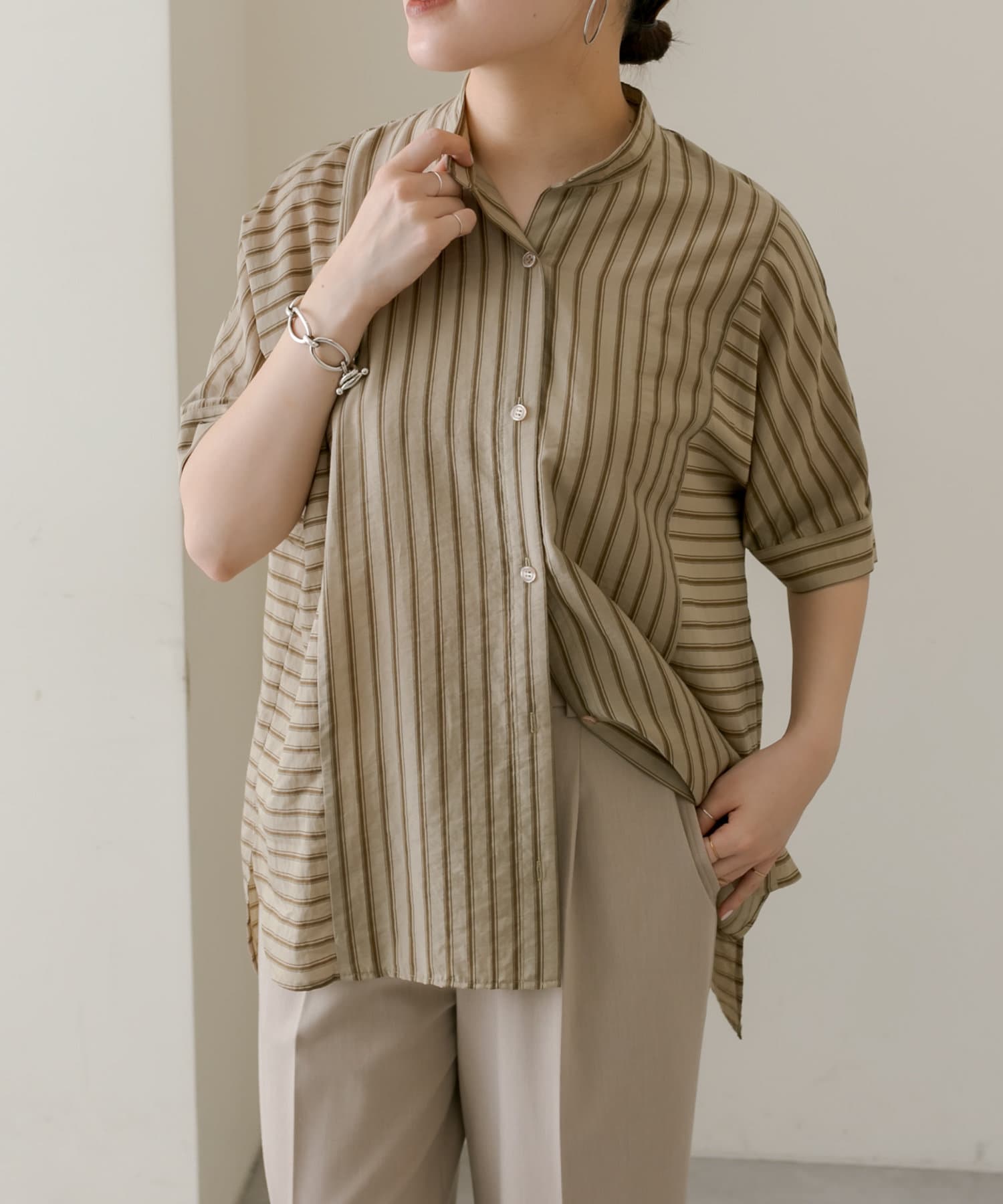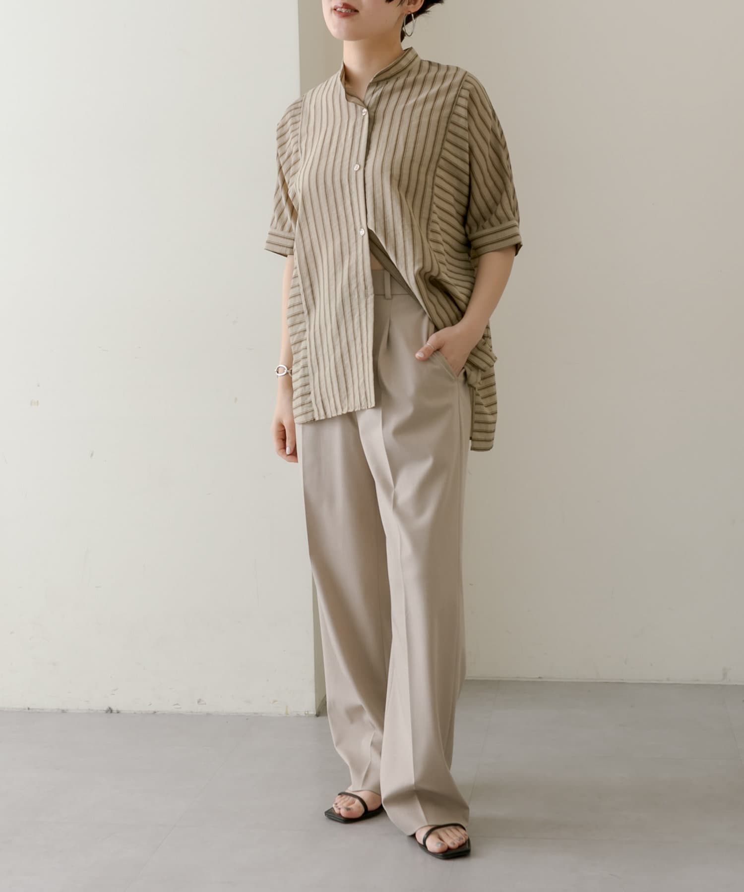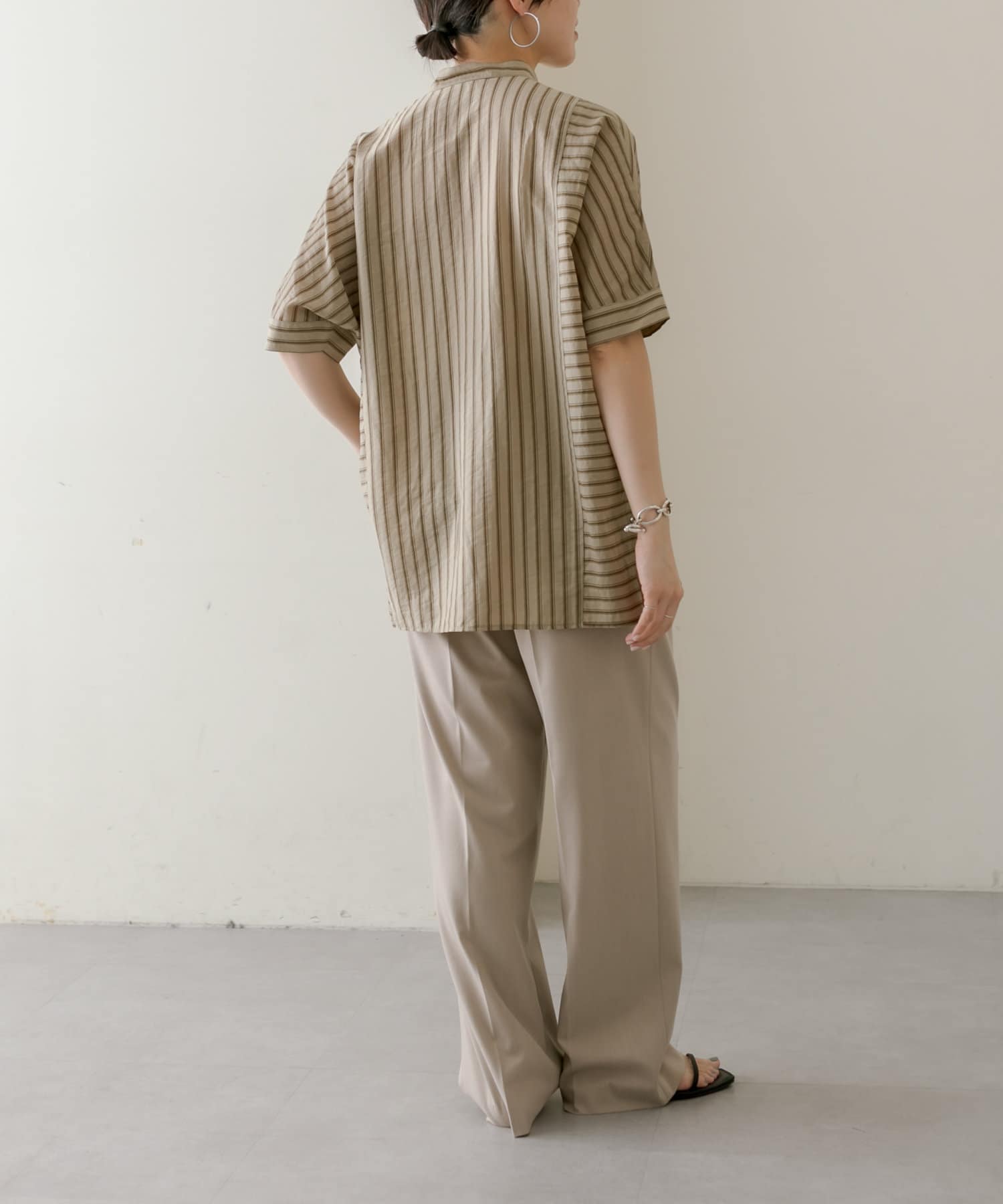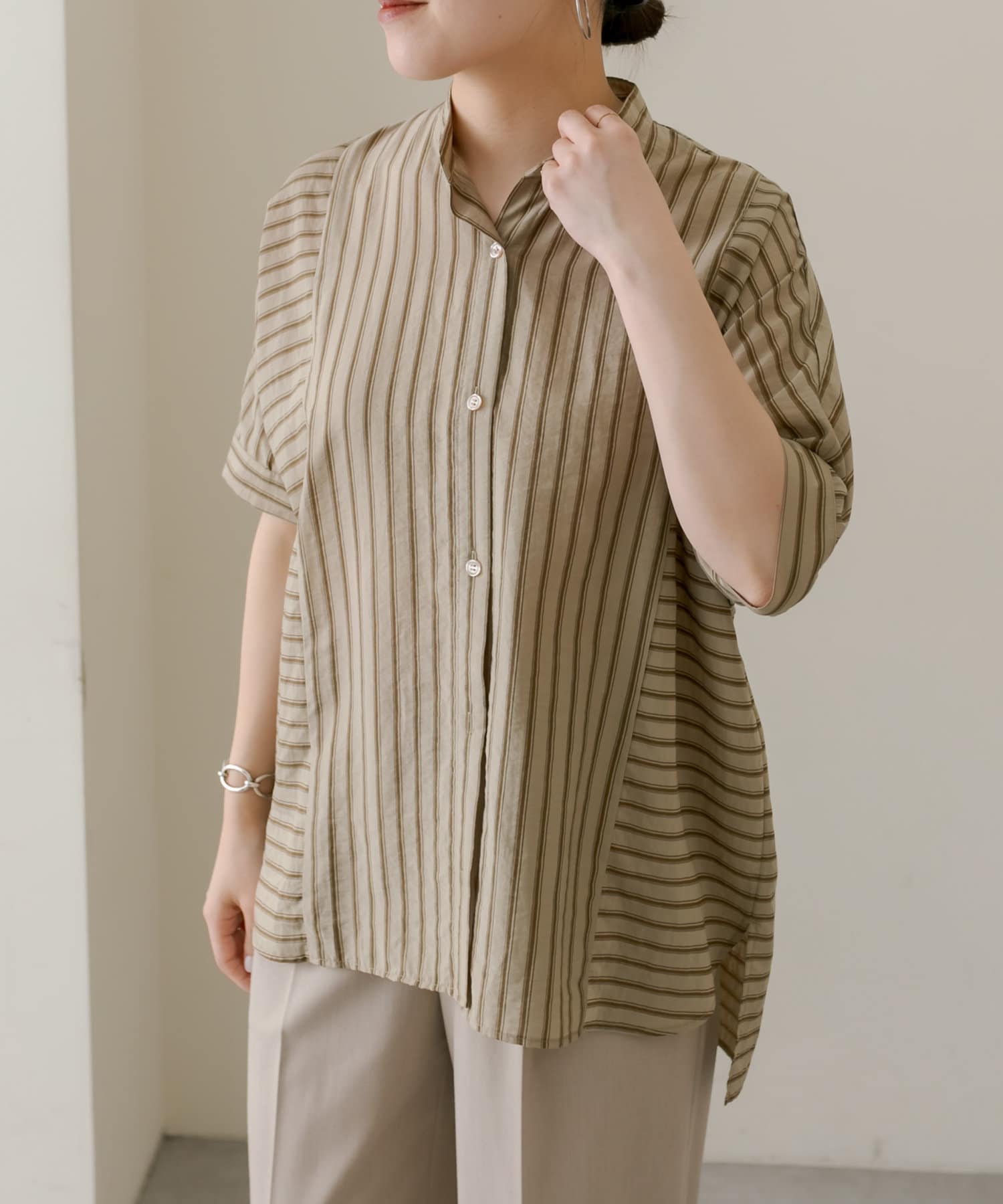 • ear PAPILLONNER(イア パピヨネ) 《手洗い可》半袖ストライプシャツ【SUM1 STYLE(スミ スタイル)】