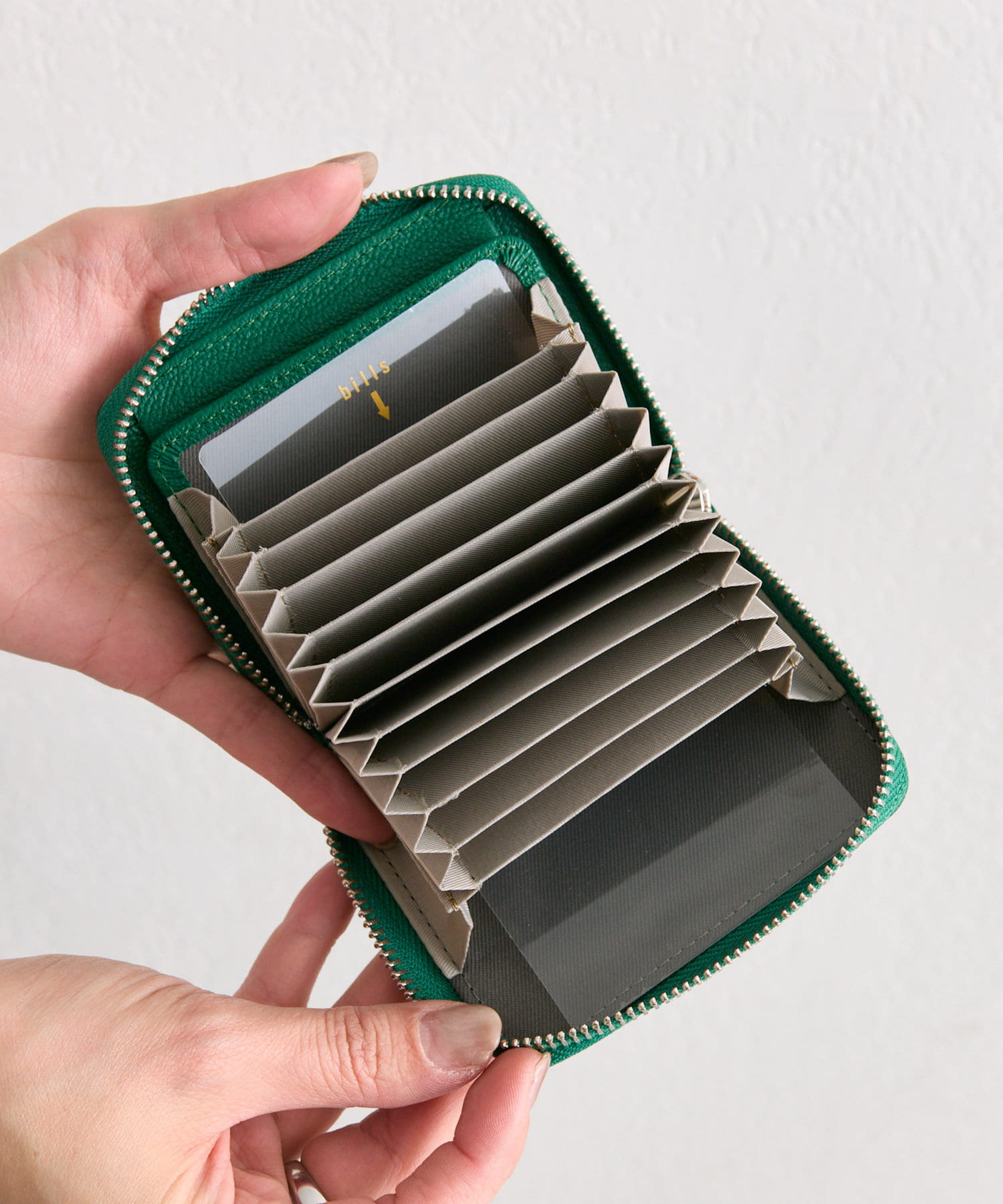 取り出したいカードが一目で分かり取り出しやすいジャバラ式のカードポケット。