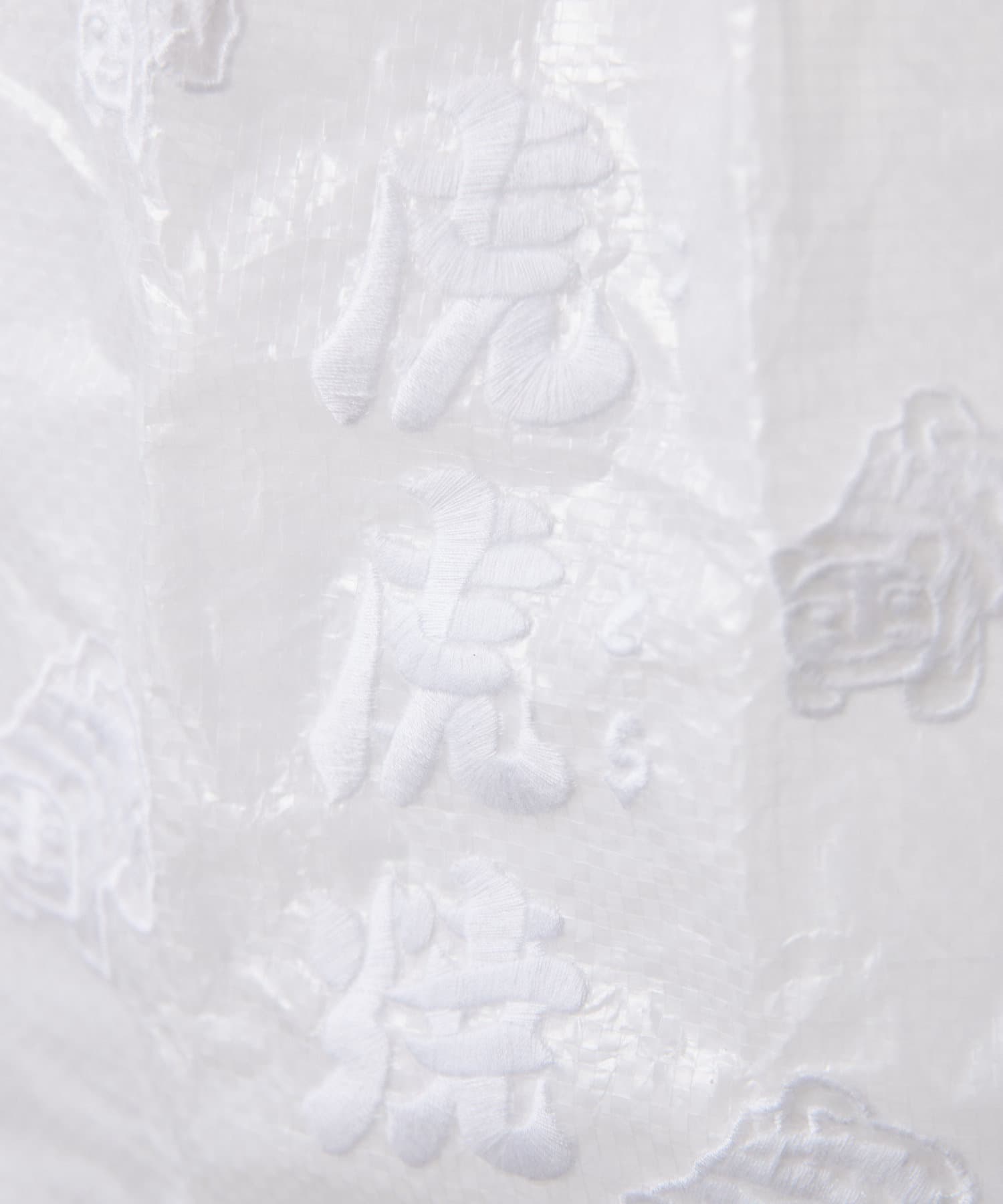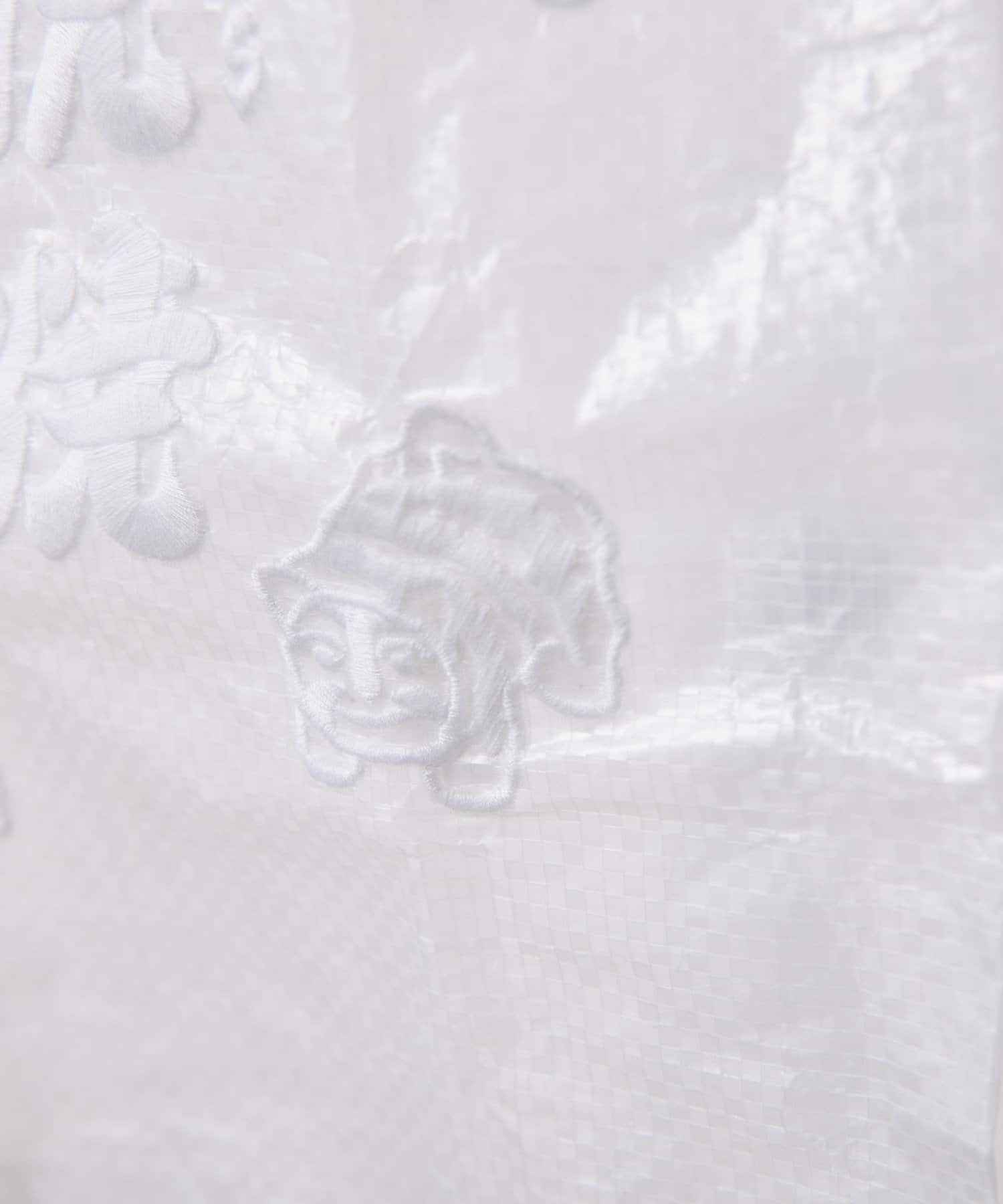 程よくハリのあるビニールシートのような素材感に、刺しゅうで柄が施されています。