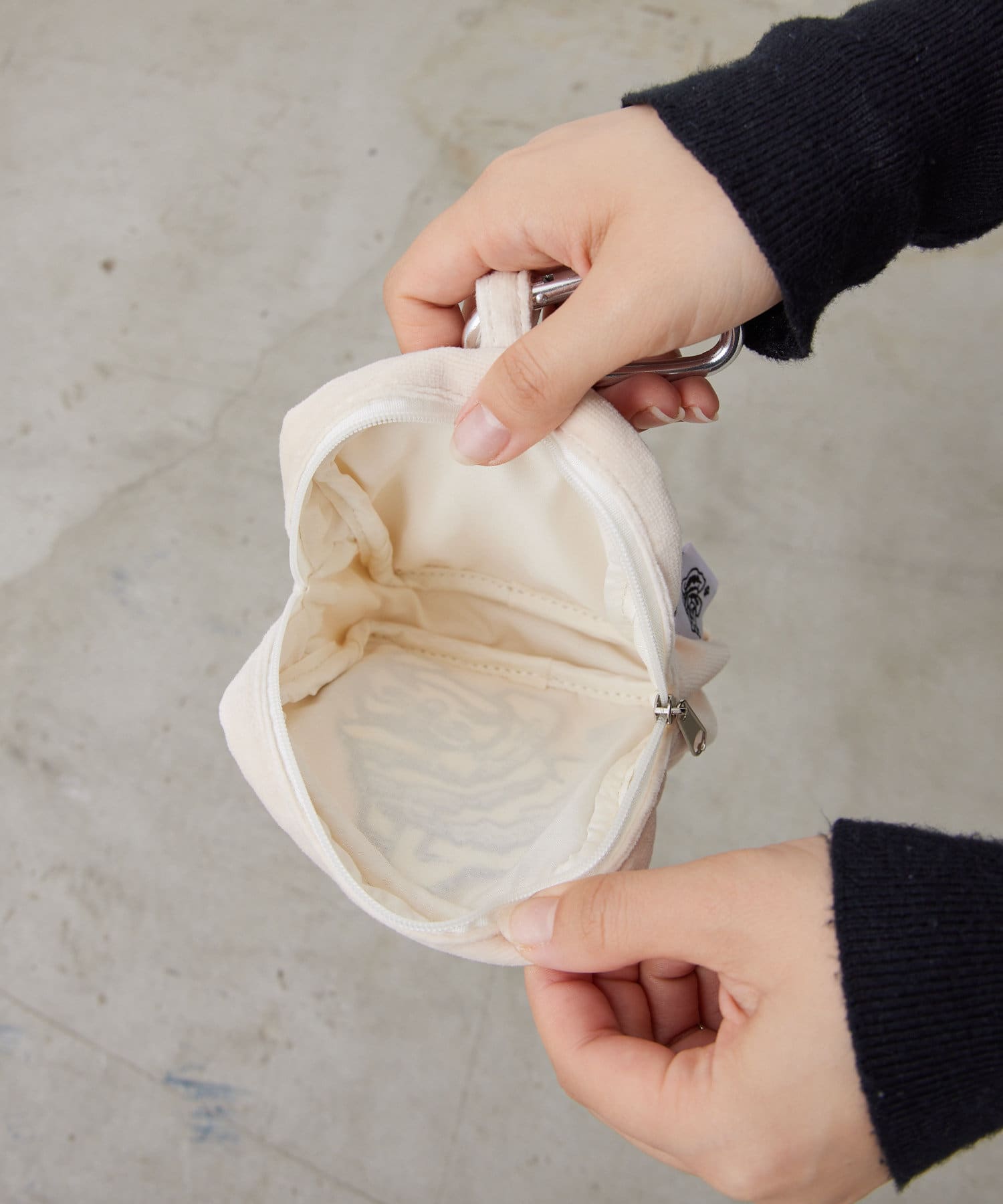 ポーチとしても使い勝手がよく、カラビナが付いているから、こまめに取り出したい物を入れて鞄の外側にぶら下げておく事も出来ます。