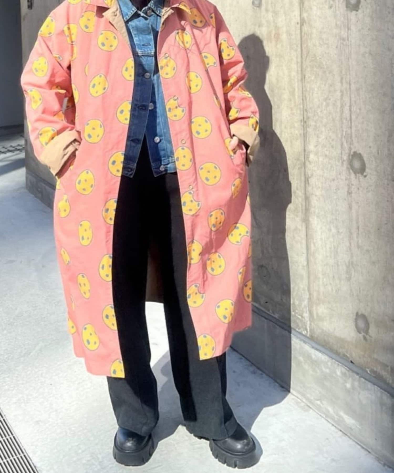 無地とクッキー柄のリバーシブル仕様で使えるライトアウター