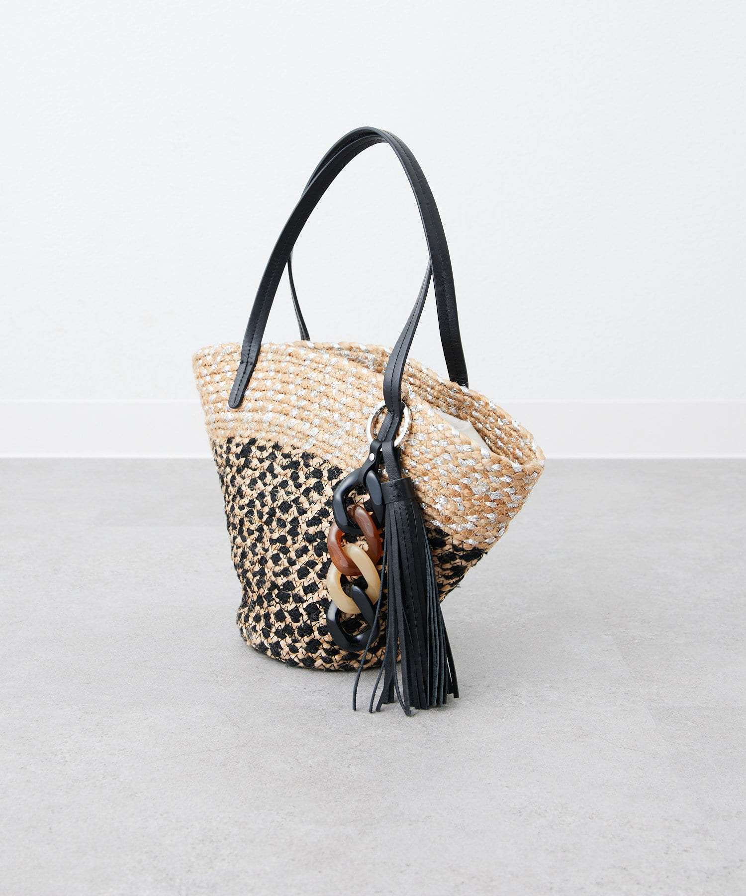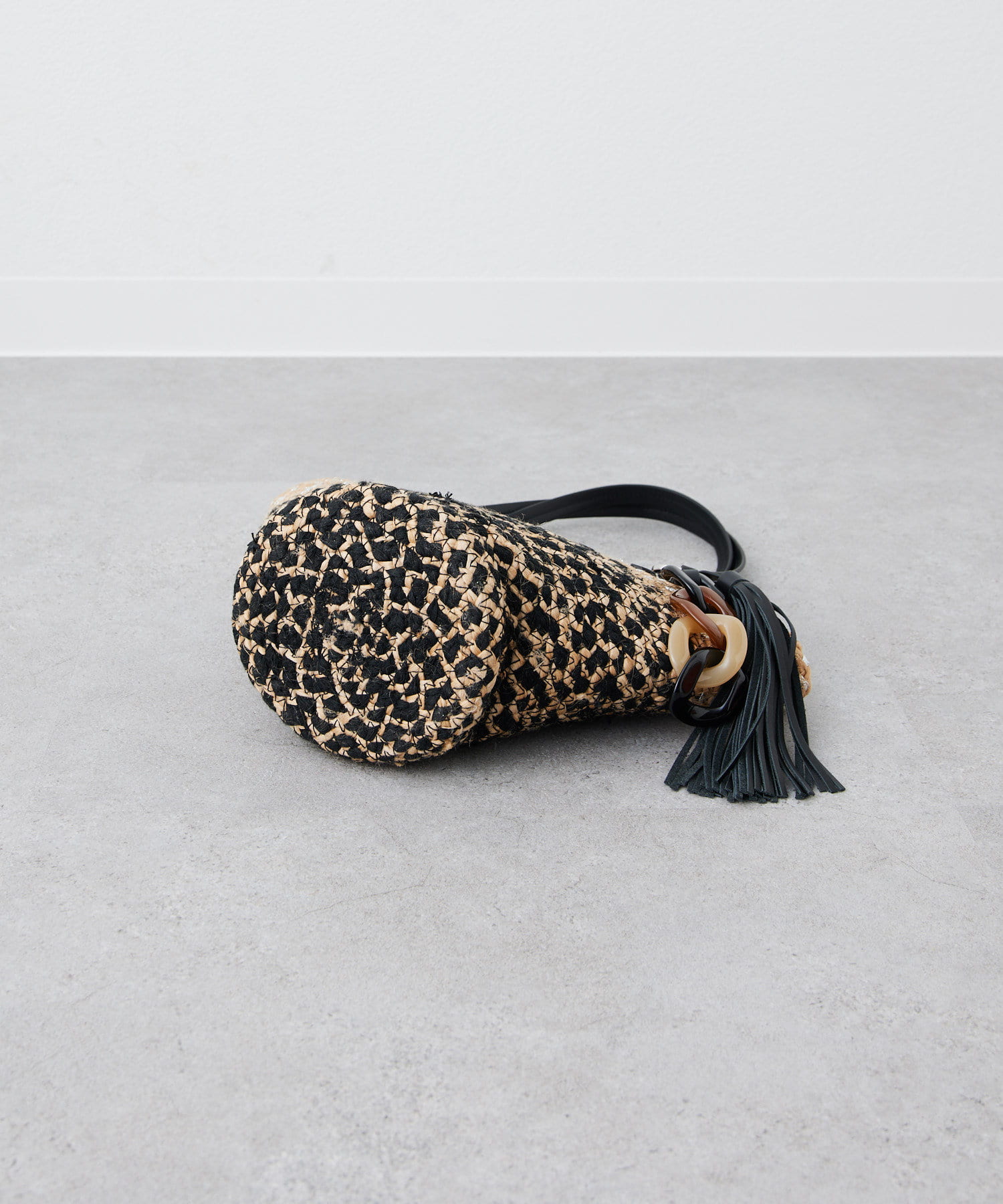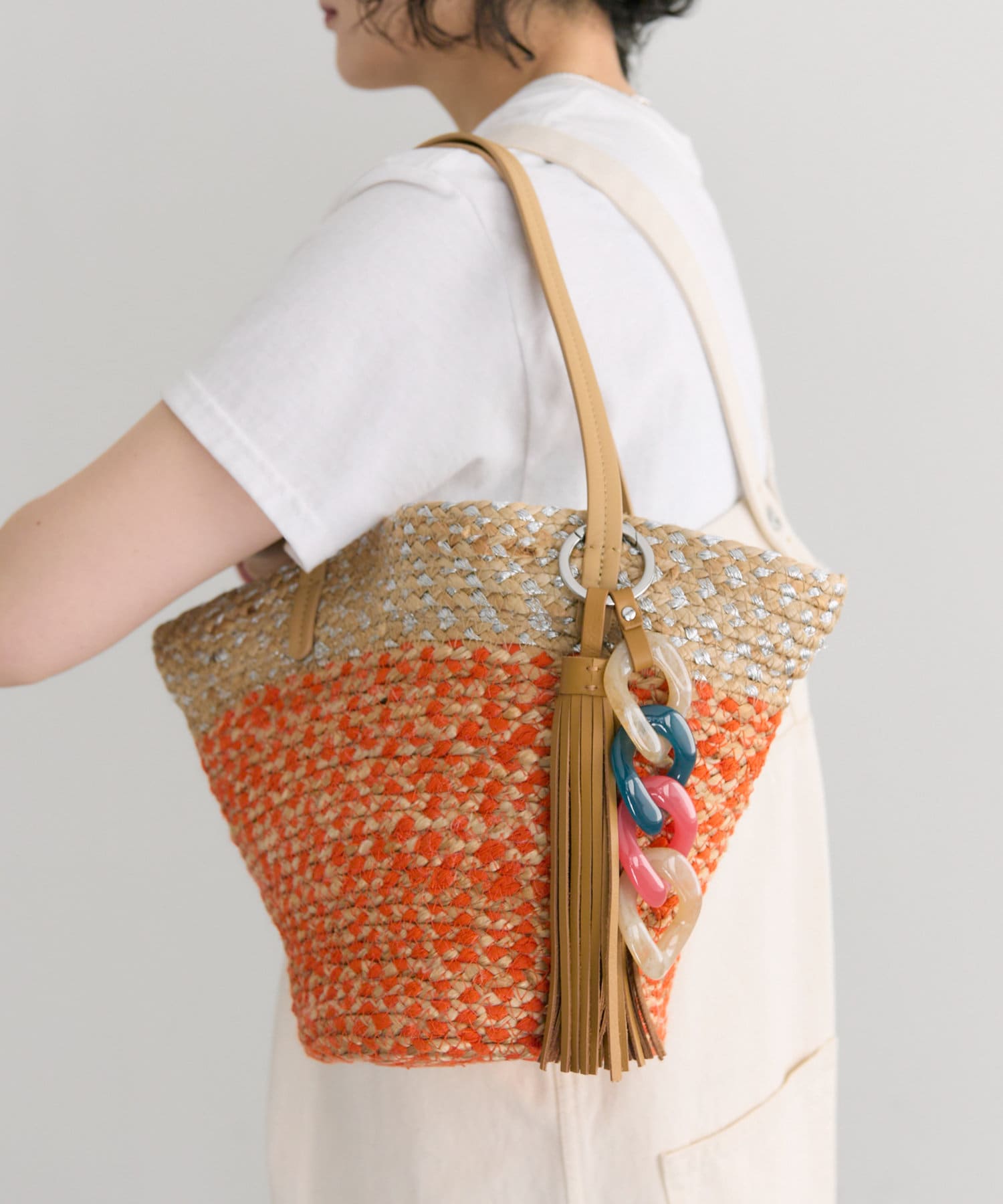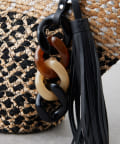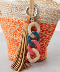 ポイントは大ぶり樹脂とタッセルパーツを使用したバッグチャーム。