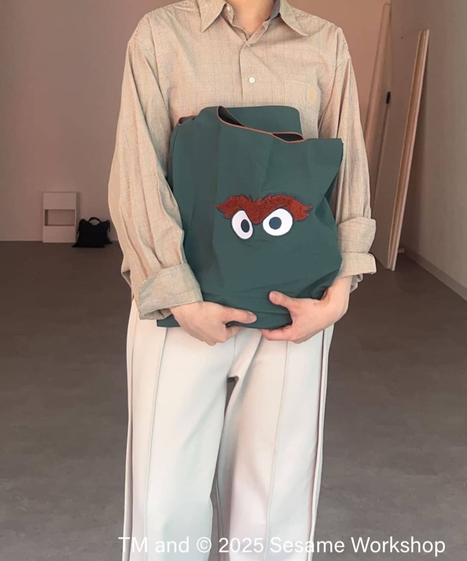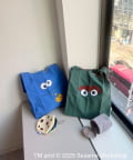 クッキーモンスターとオスカーの顔にスポットをあてたエコバッグ。