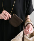 コーヒー豆を連想させるような深みのあるブラウンレザーのカップ型ポーチ