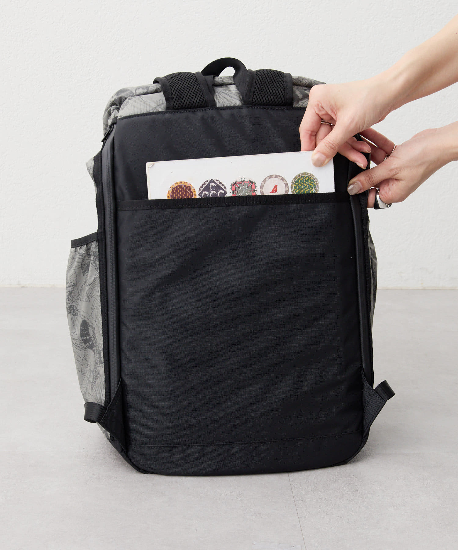 背中から中の荷物を取り出せる背面ファスナー付きで