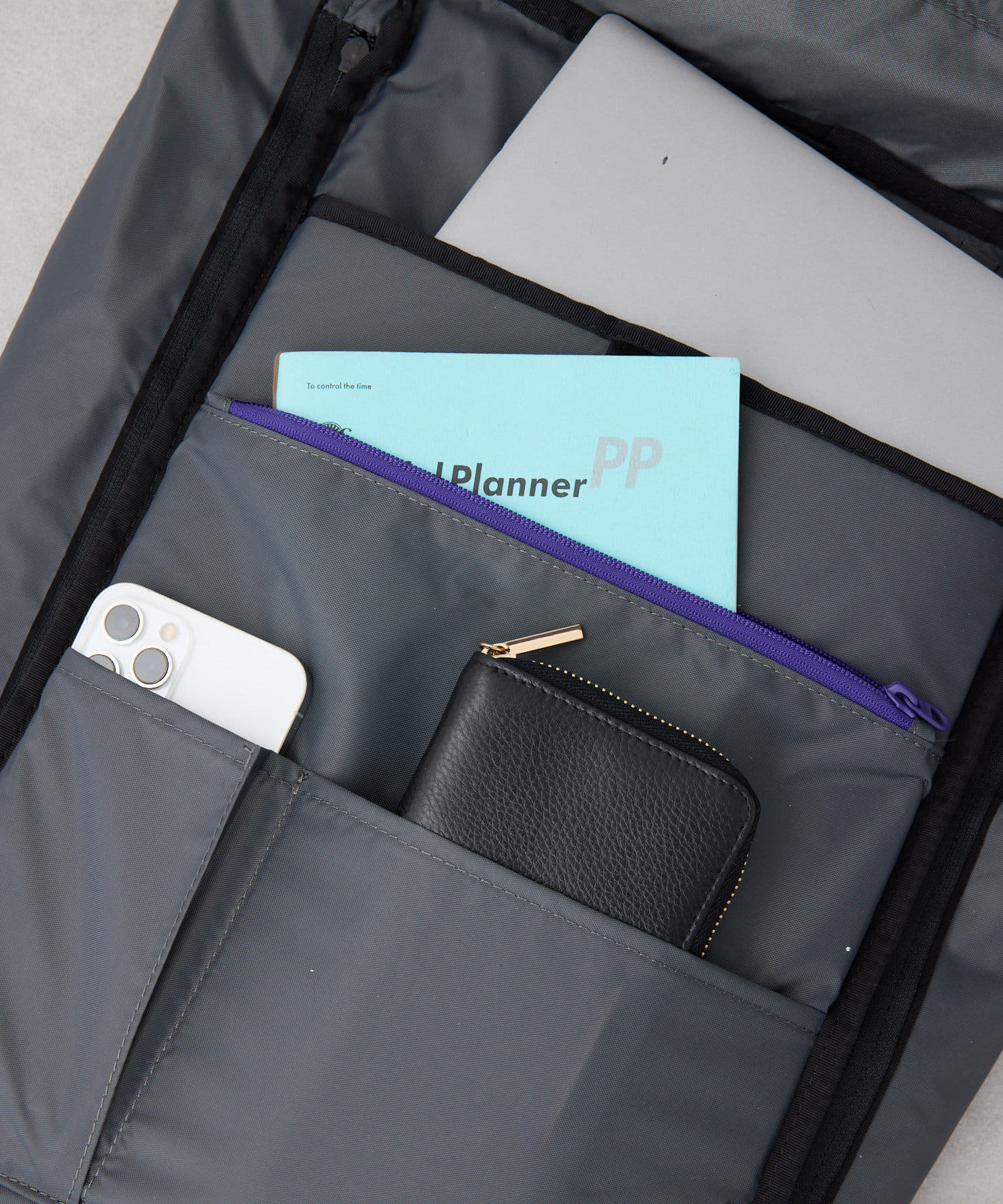 ・内側ファスナーポケット×1、差しポケット×3(その内1箇所はA4対応サイズ)