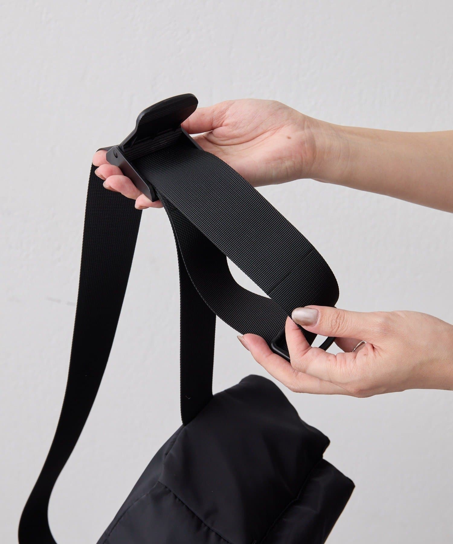 ・左右どちらの肩に掛けても使えるよう真っ直ぐ取り付けされたショルダーベルト