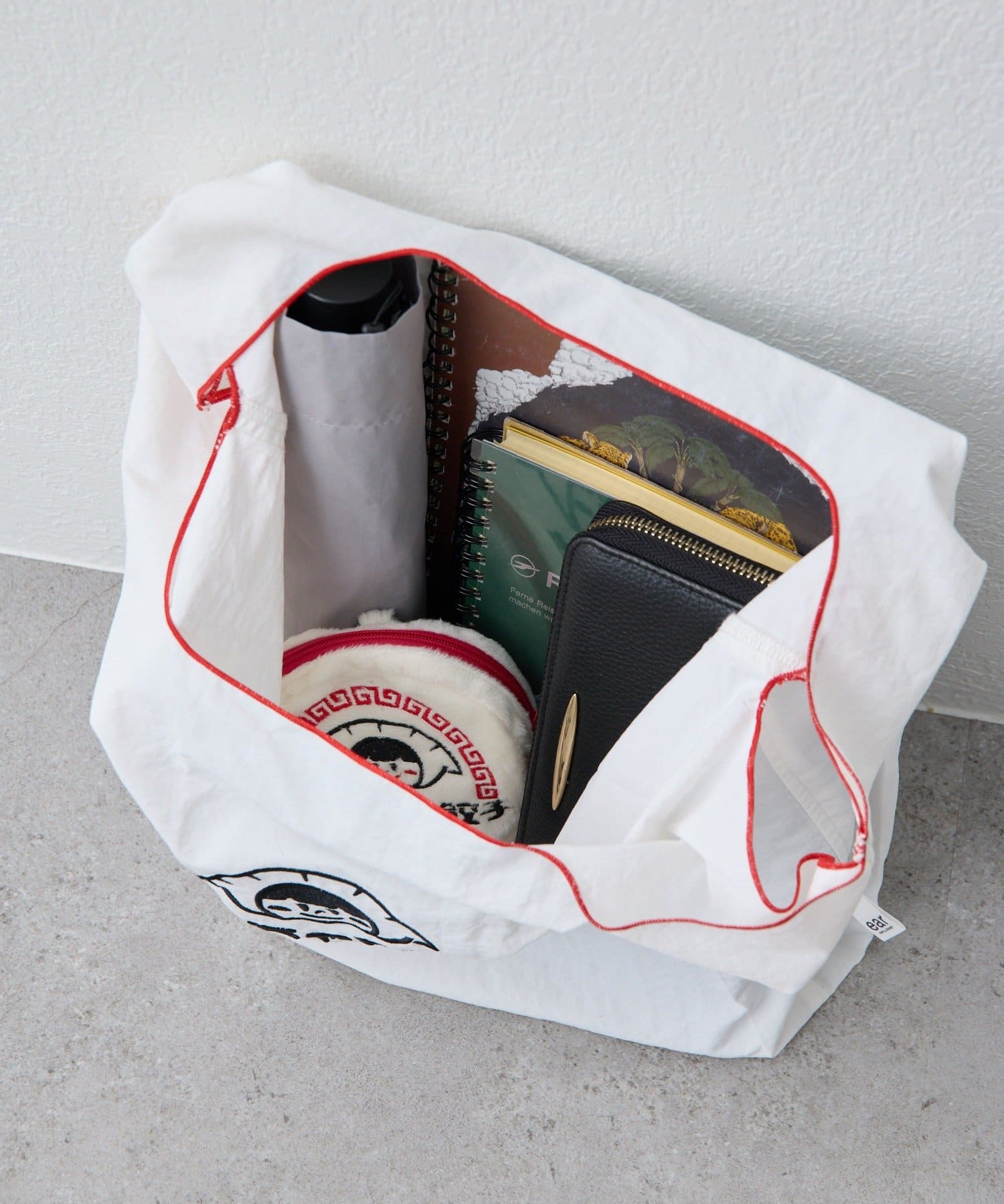 ホワイトはショッパーをイメージした刺しゅうデザイン、