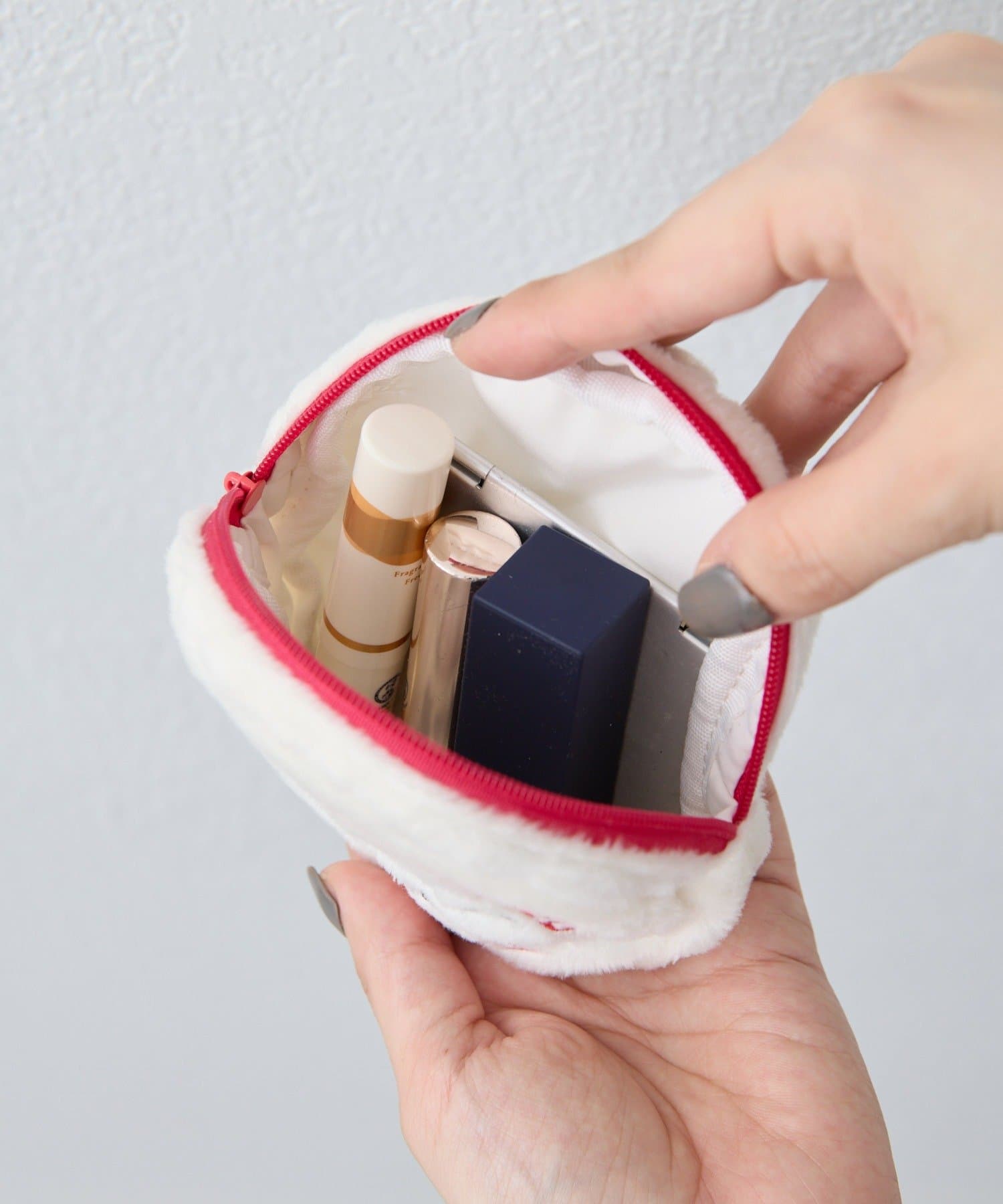 付属ポーチはふわふわと手触りの良い素材。