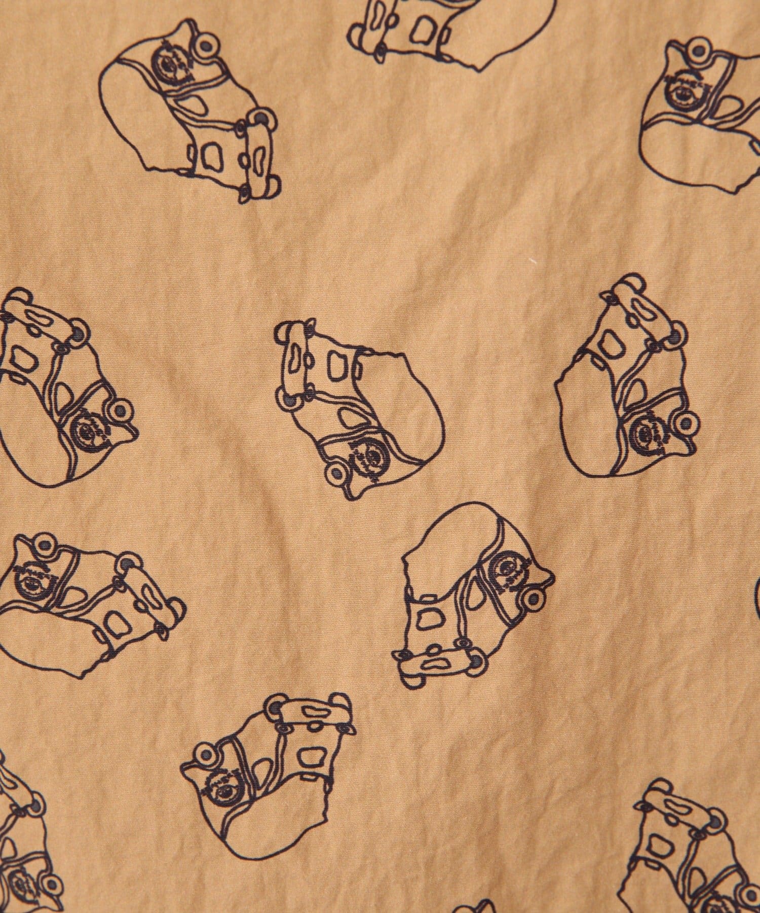 オレンジはミッちゃん餃子のキッチンカーのイラストを総柄でプリントした