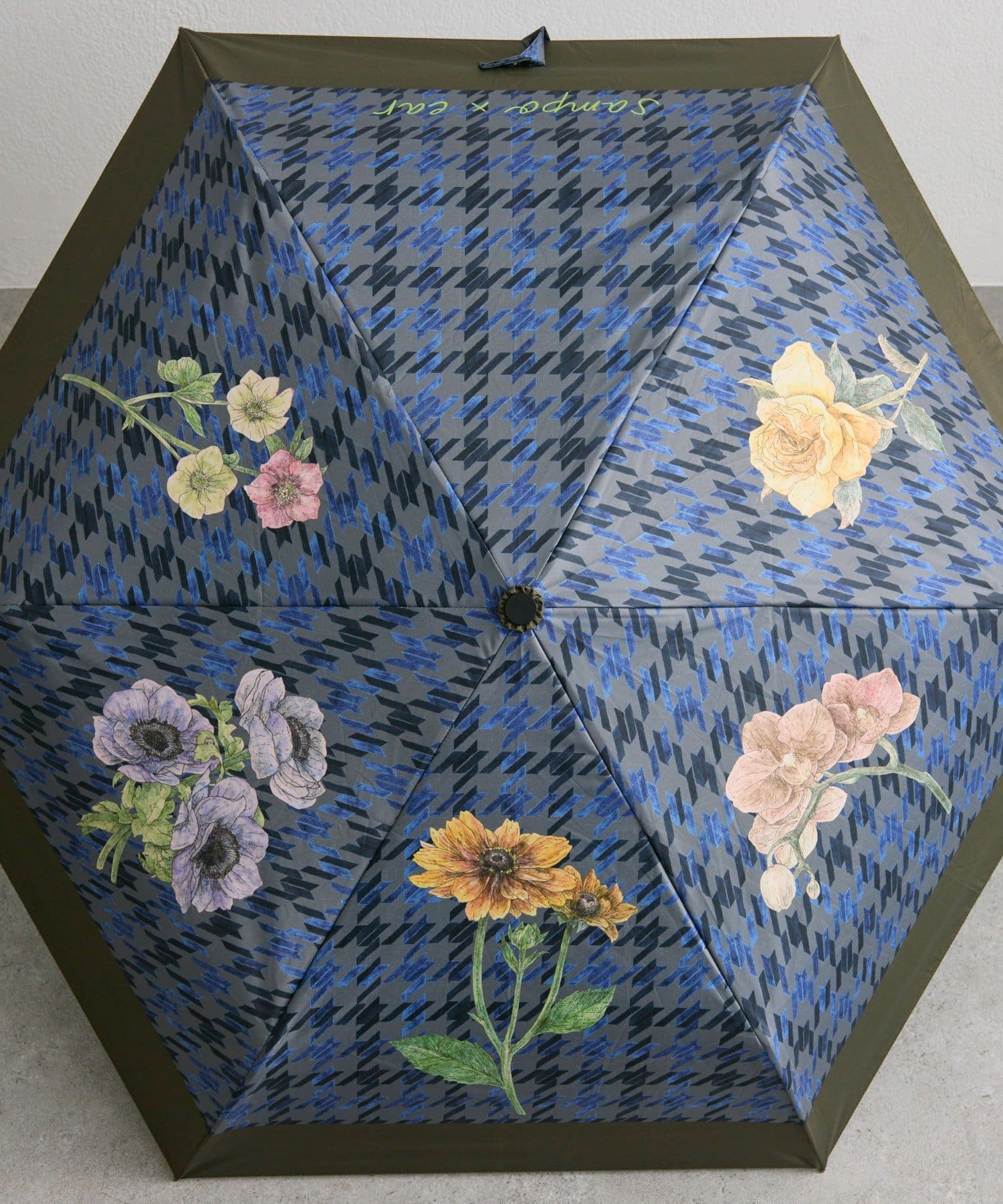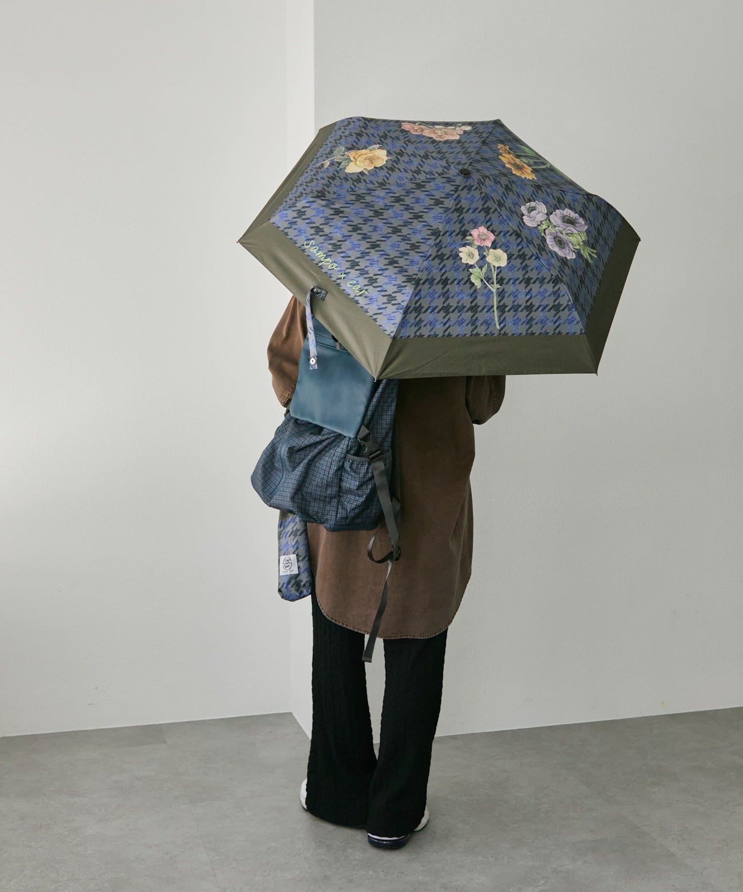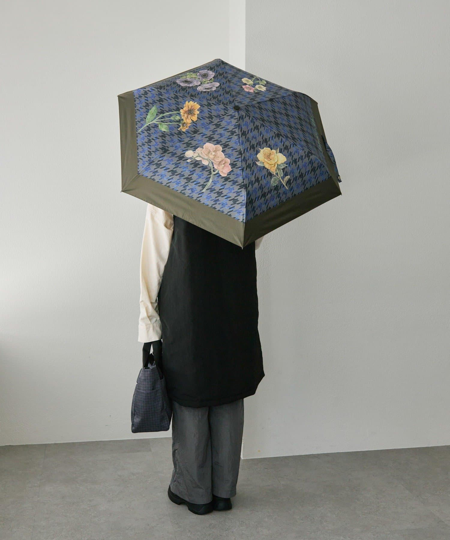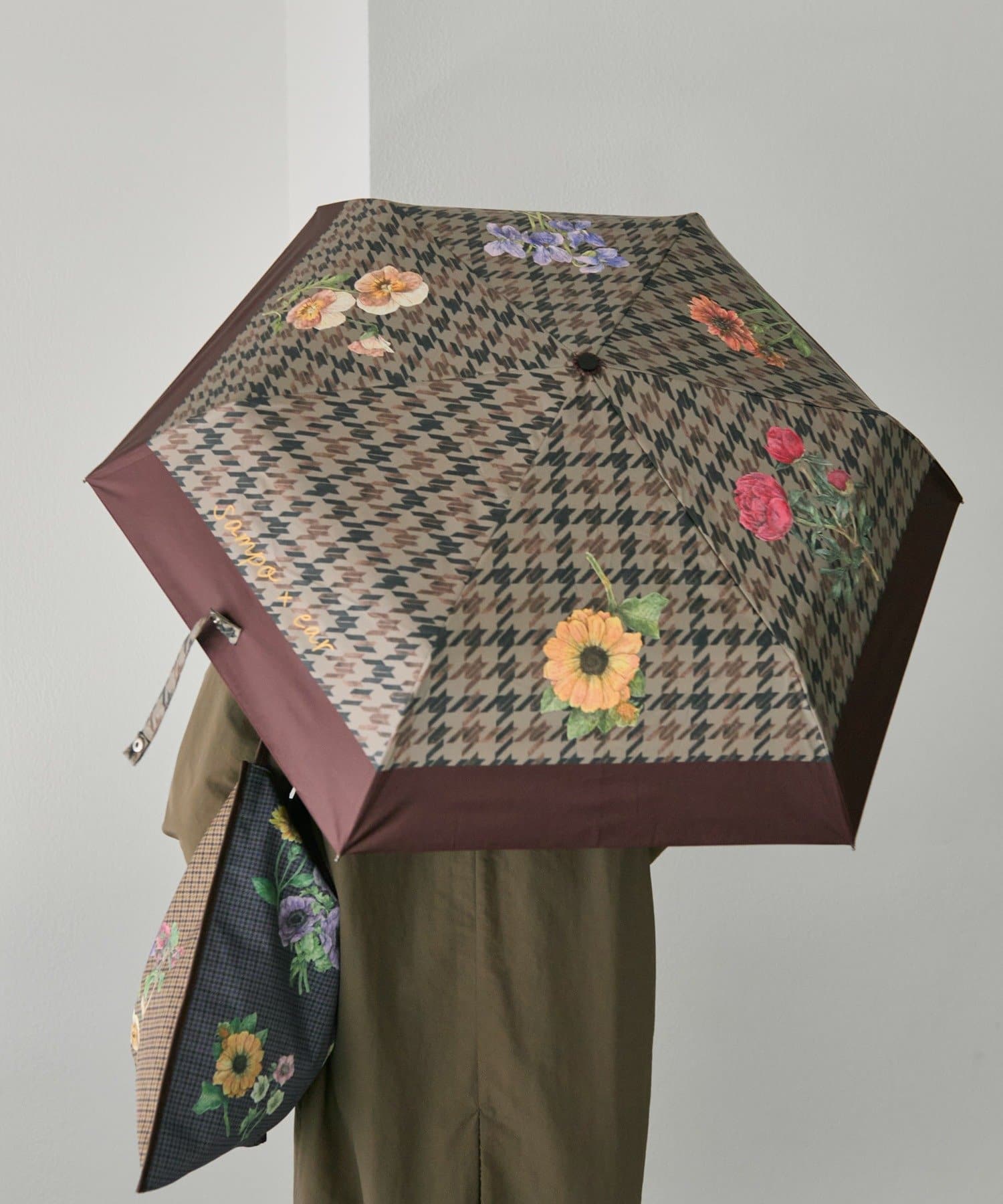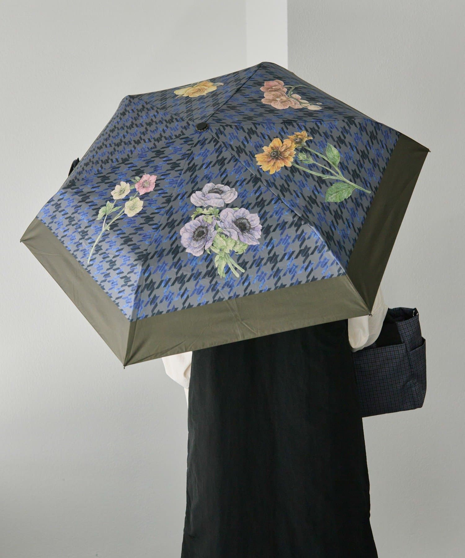 千鳥格子と花柄をMIXした晴雨兼用折りたたみ傘