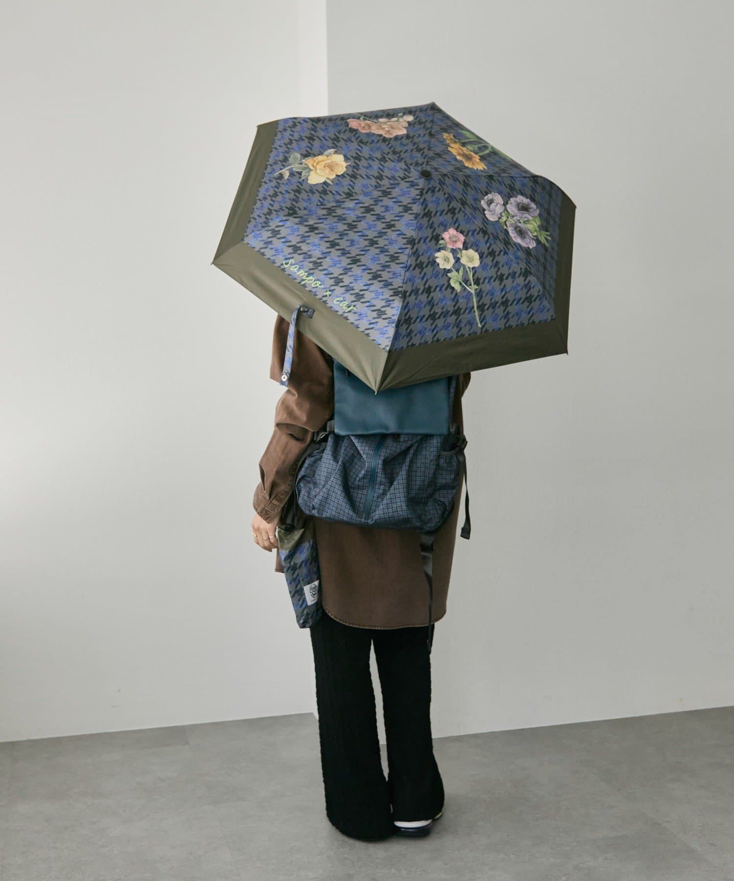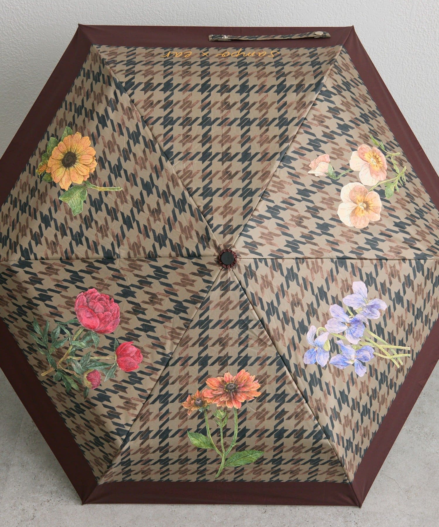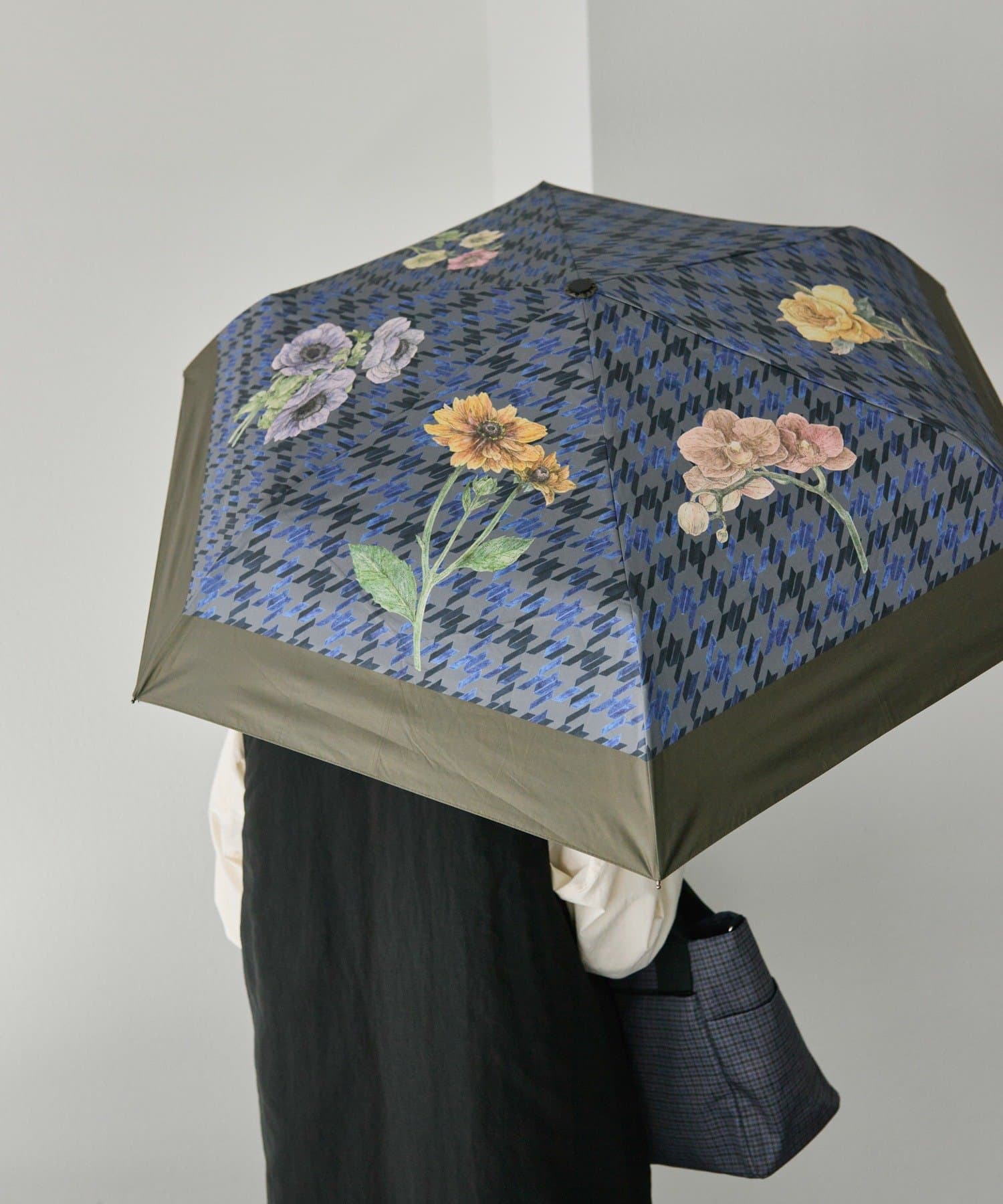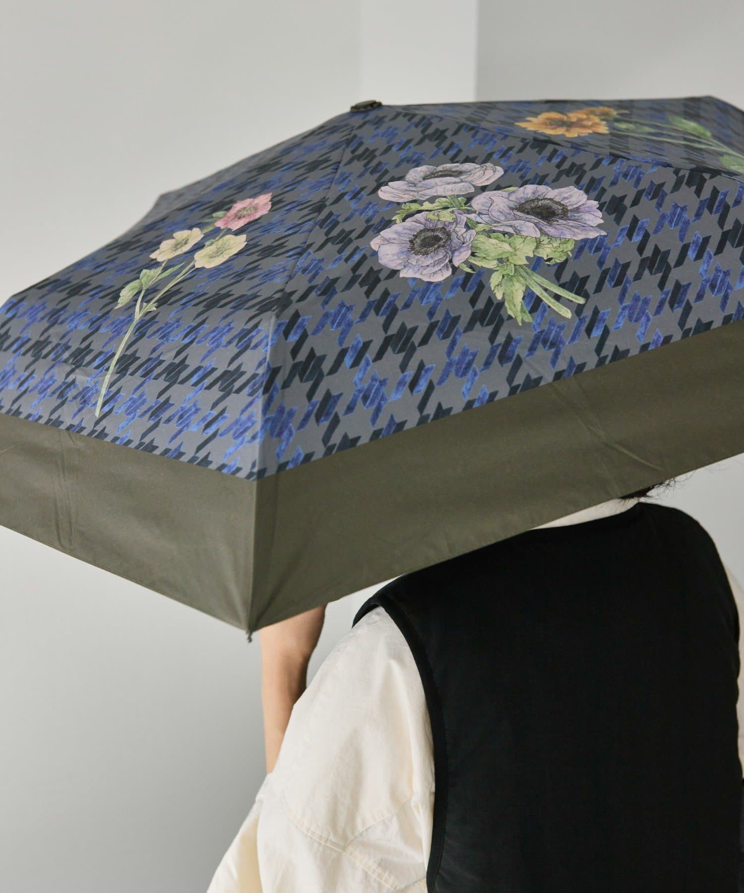千鳥格子と花柄をMIXした晴雨兼用折りたたみ傘