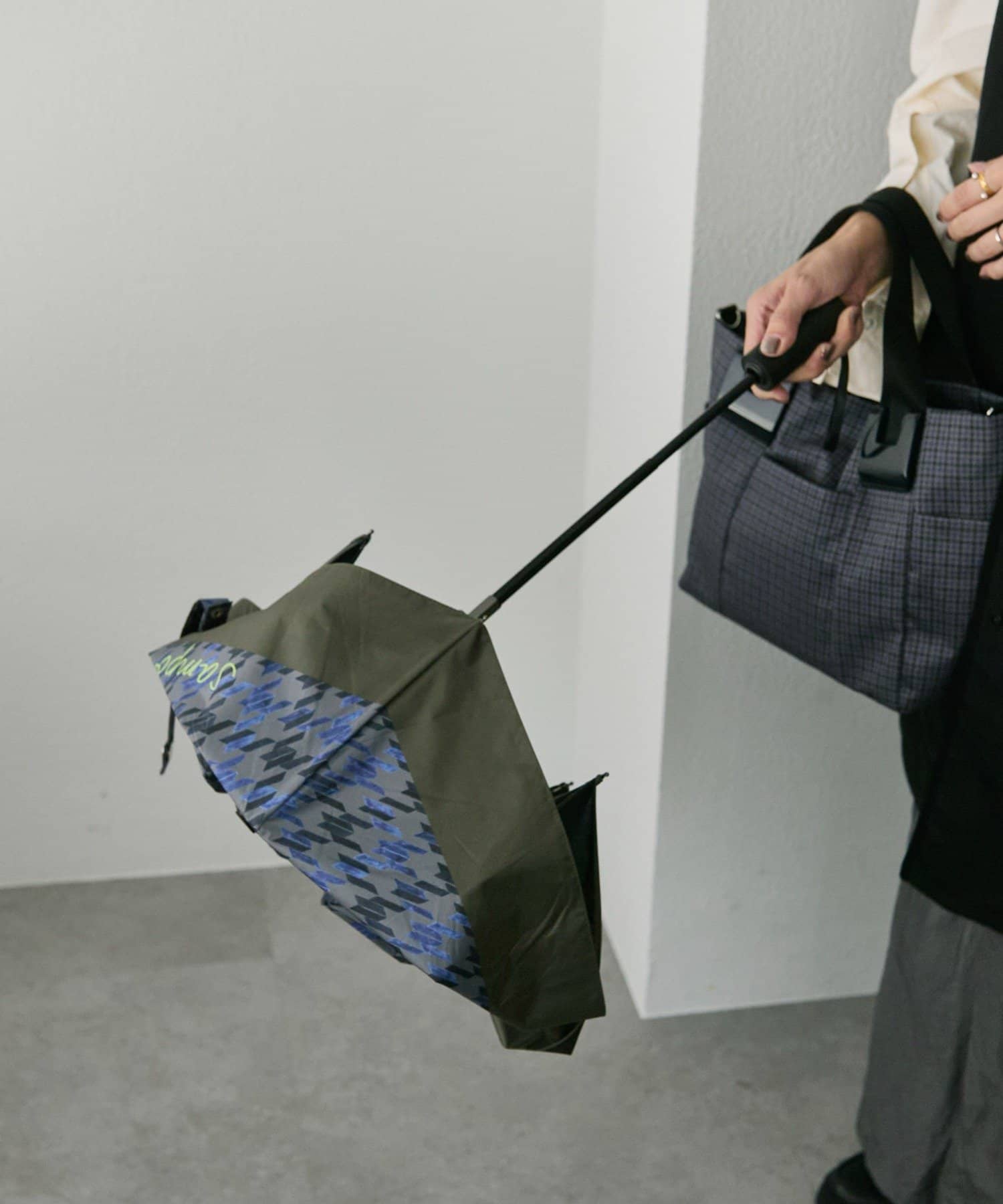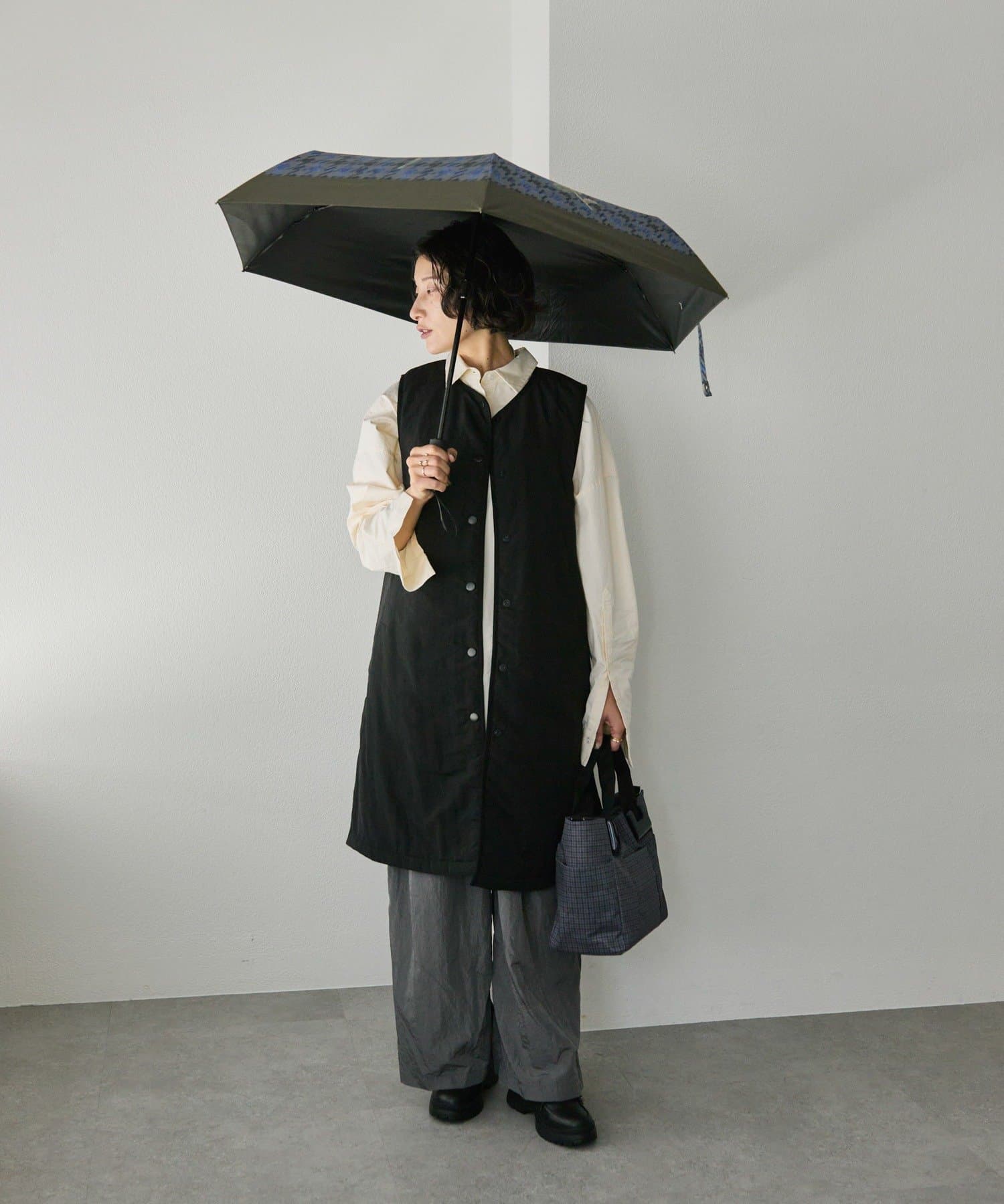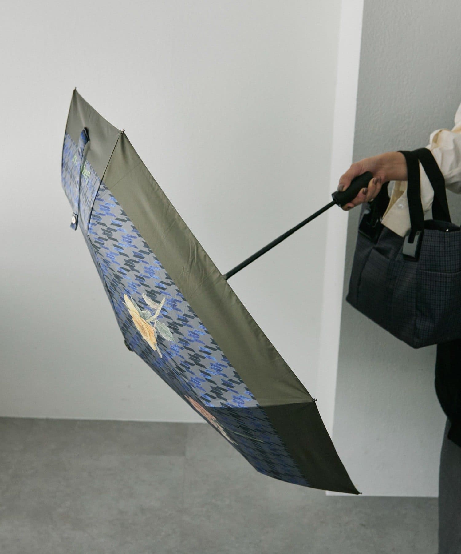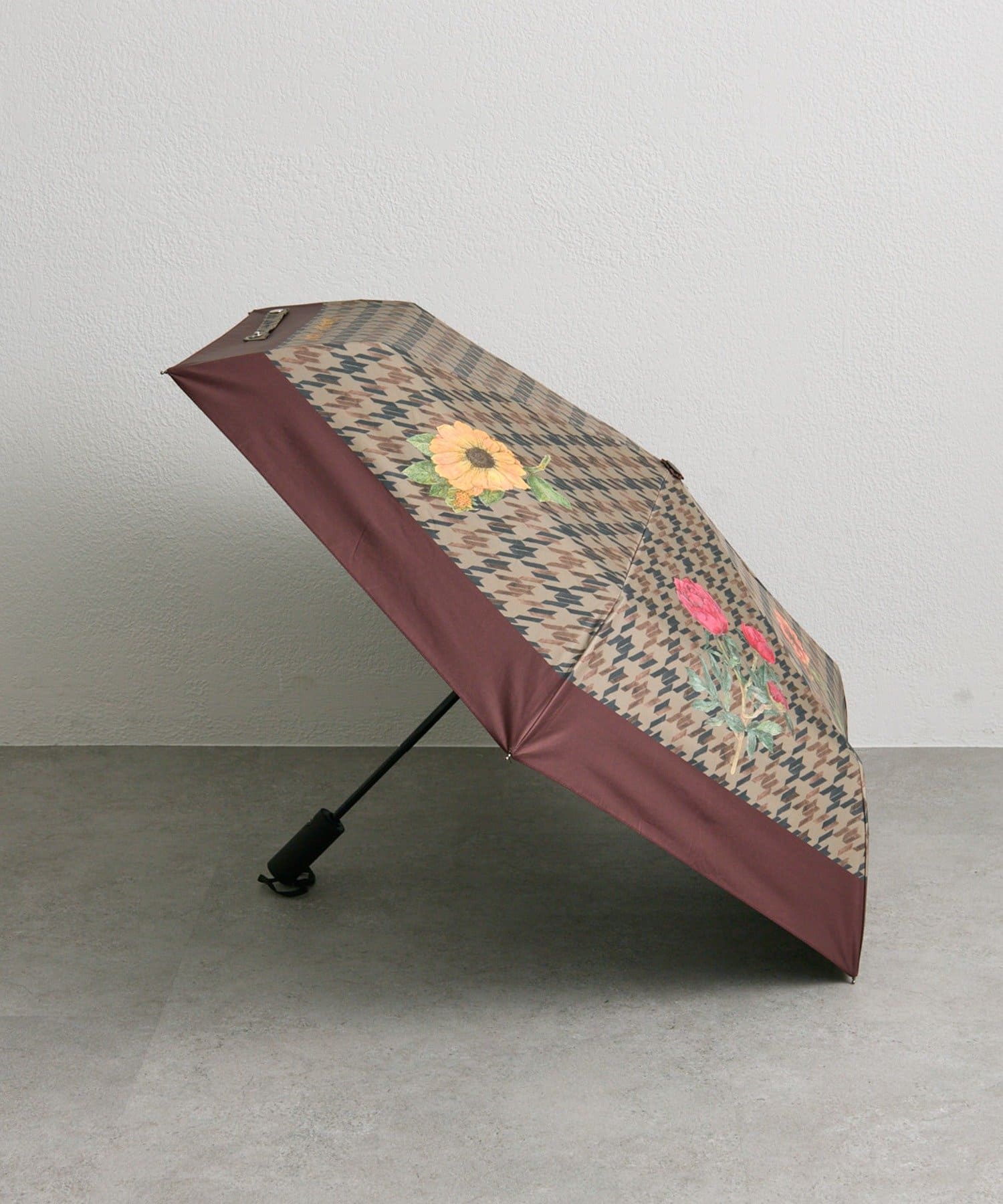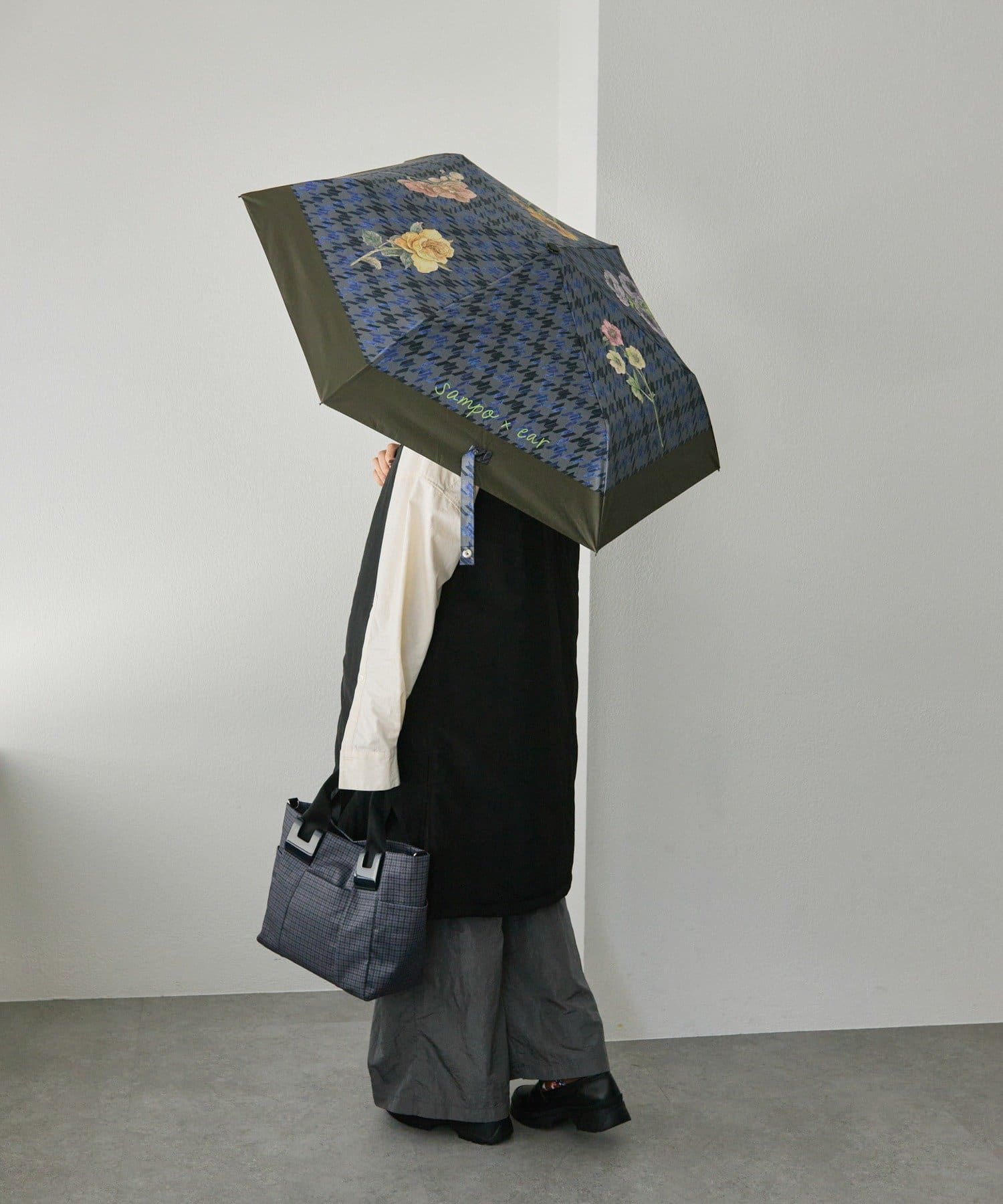 千鳥格子と花柄をMIXした晴雨兼用折りたたみ傘