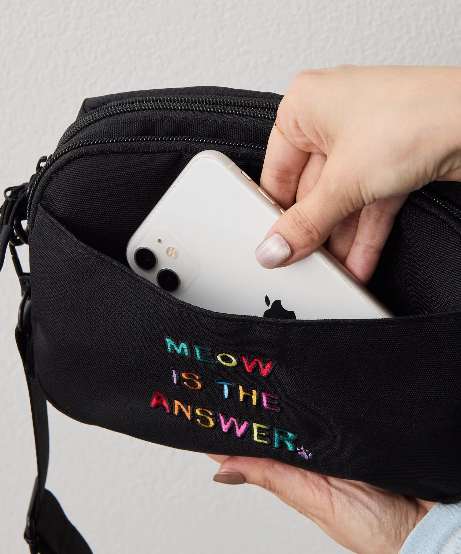 ・背面にはそれぞれ『LIFE WITH PAWS(犬のいる生活)』『MEOW IS THE ANSWER(ニャーが答え)』の文字が刺しゅう
