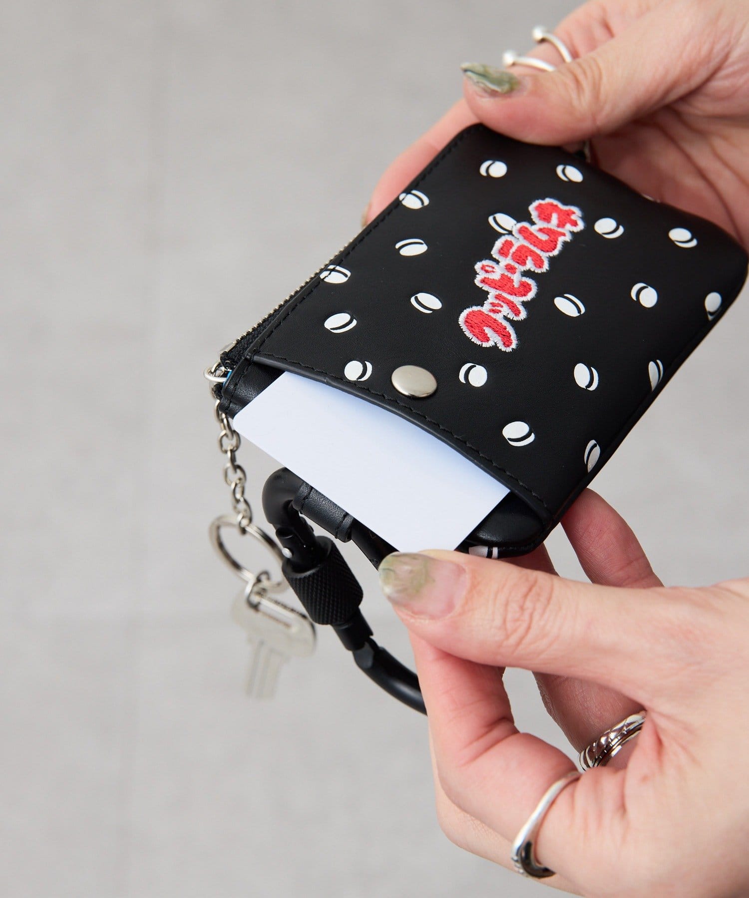 【クッピーラムネ×ear】本革/コラボカラビナ付きパス&キーケース