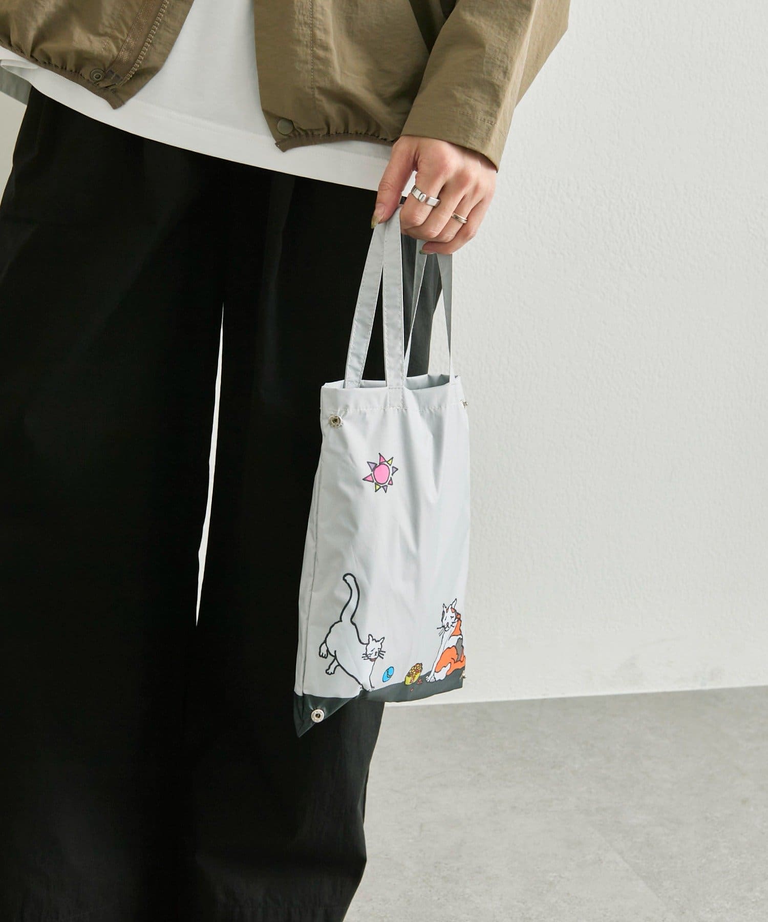 付属袋:持ち手30cm、縦26cm、幅20cm(最大値)、スナップボタンを留めたときの幅約10cm