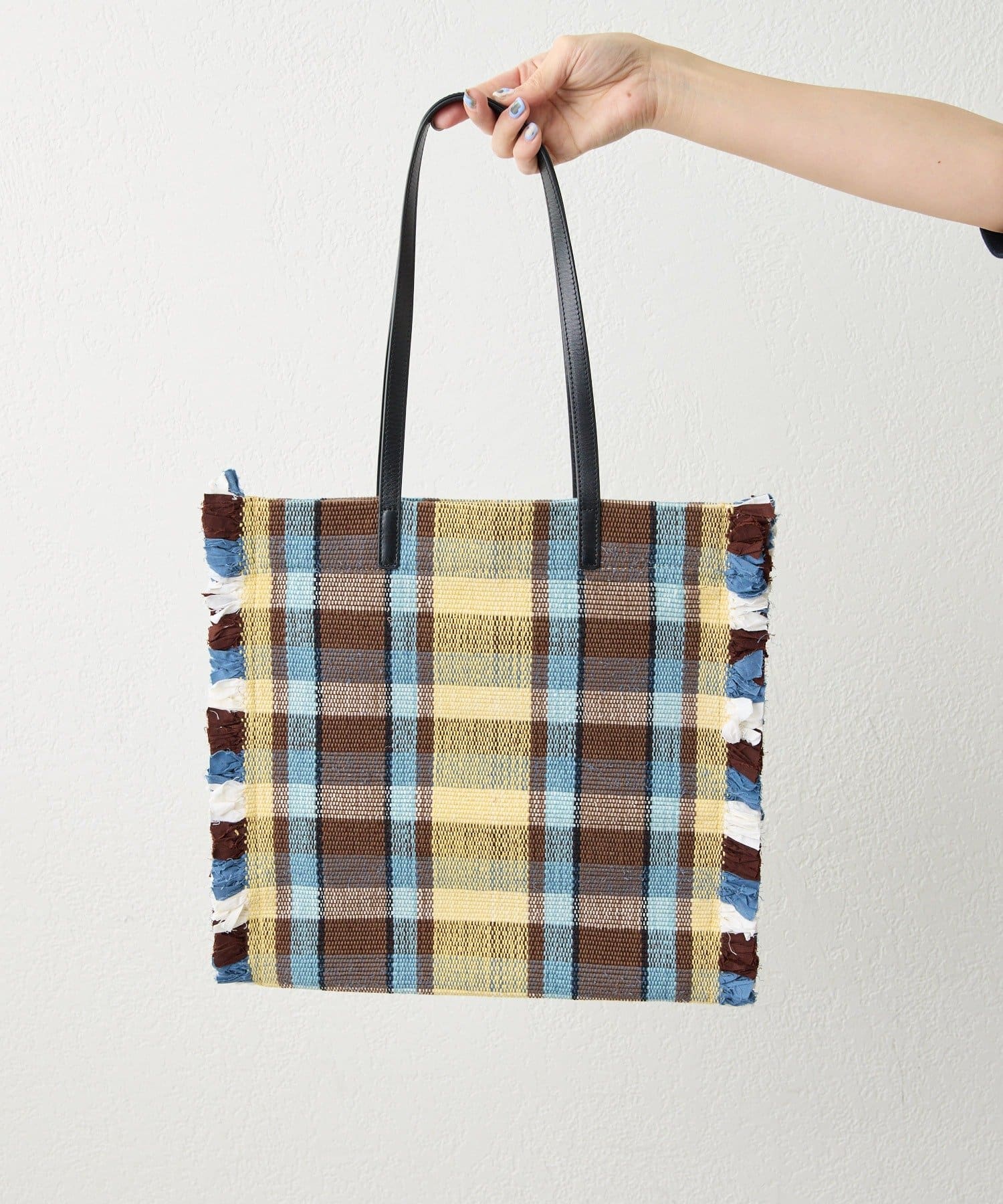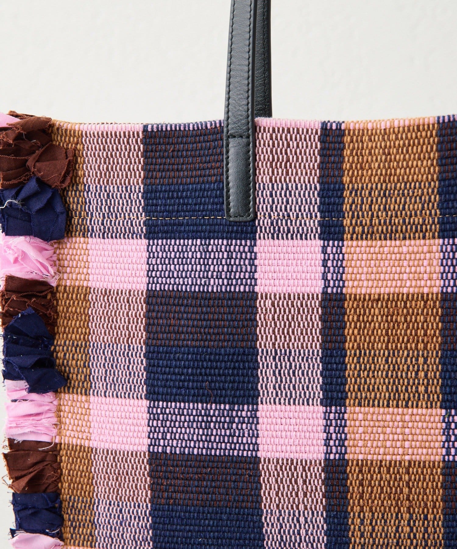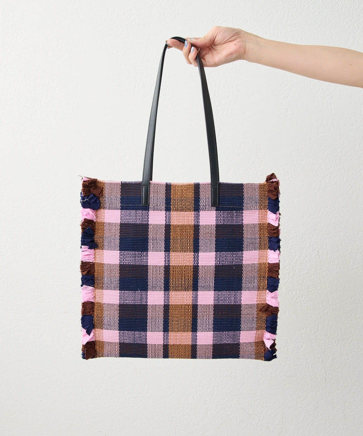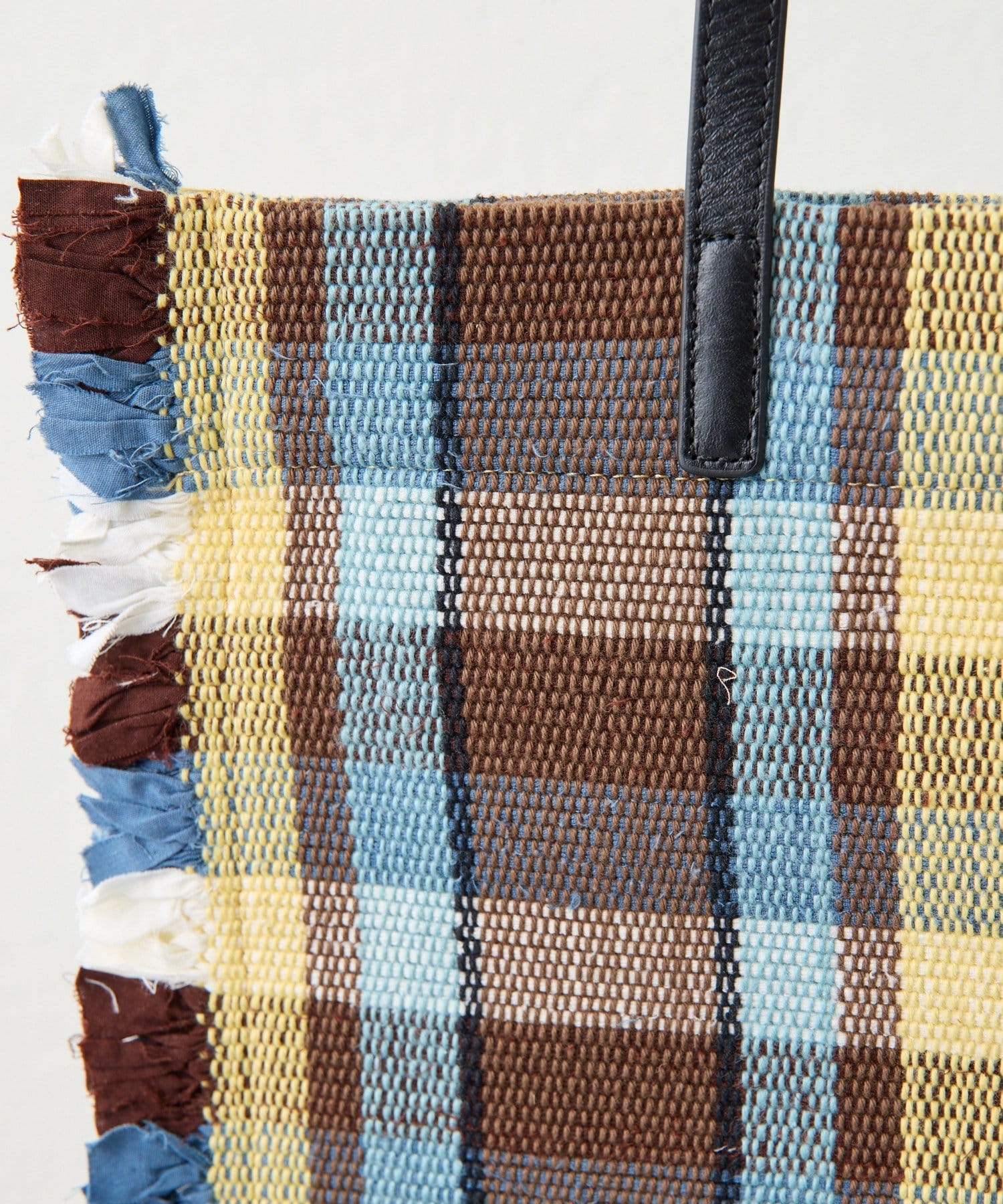• 一段一段手織り機で織り上げたラグをトートバッグに
