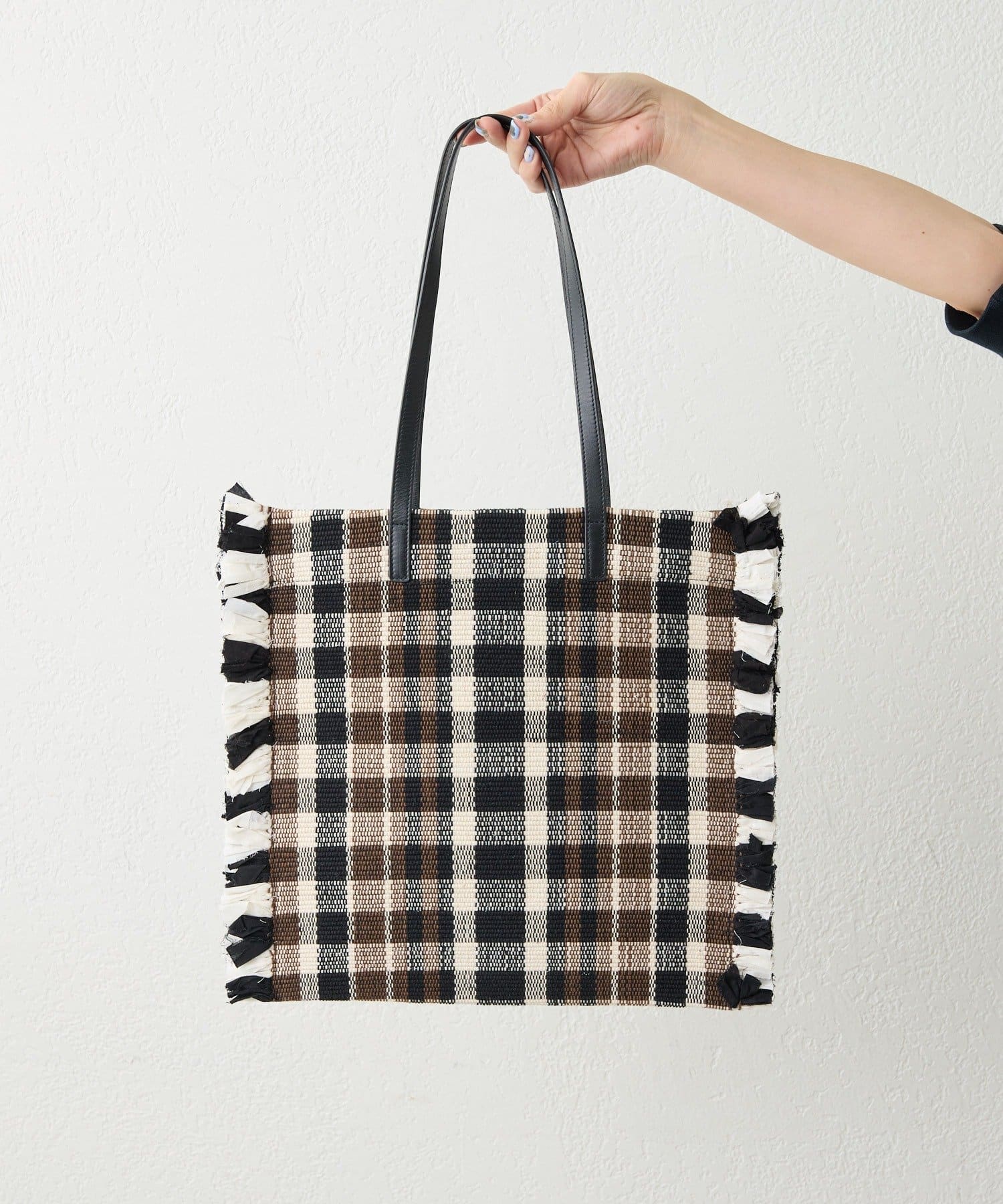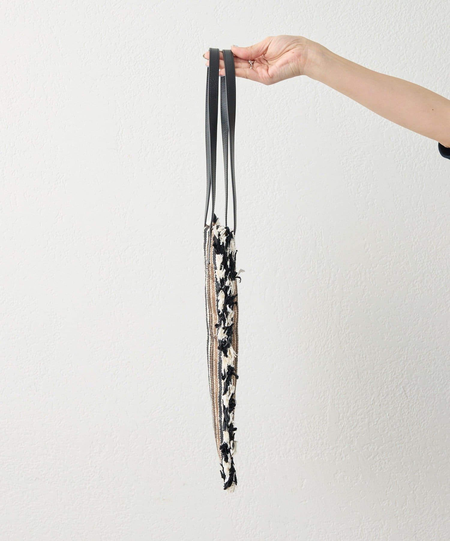 • ブラック/サイズ:持ち手58cm、高さ35cm、幅38cm(フリンジなし34cm)、開口幅31cm、重さ340g※一点ずつハンドメイドによる個体差があります。