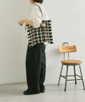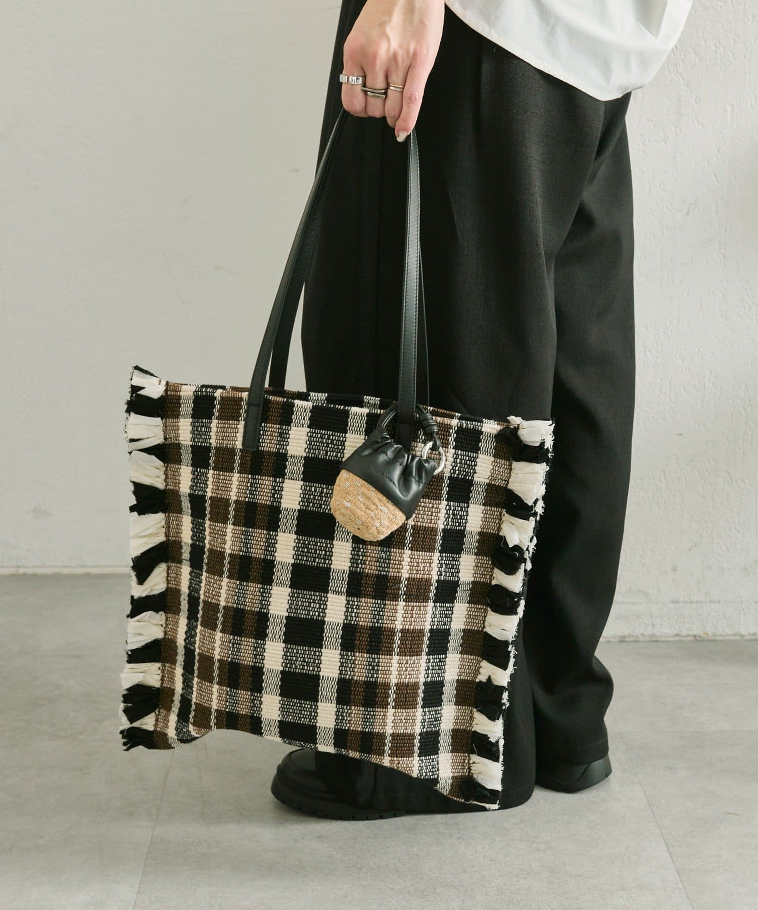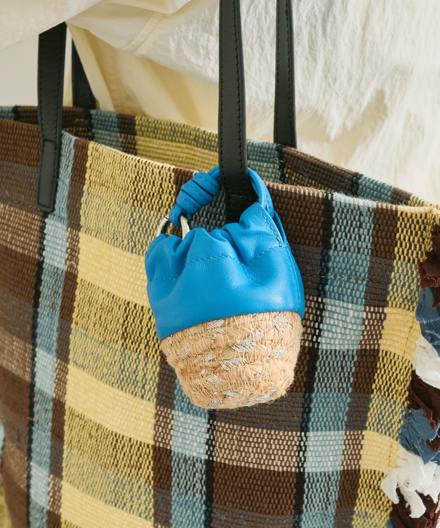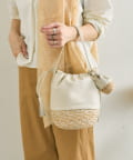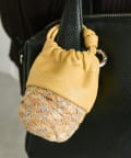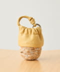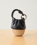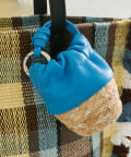 • ジュート素材のかごにレザー巾着を組み合わせたデザイン
