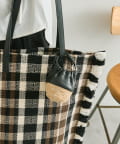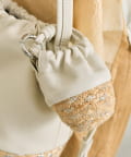 ・ジュート素材のかごにレザー巾着を組み合わせたデザイン