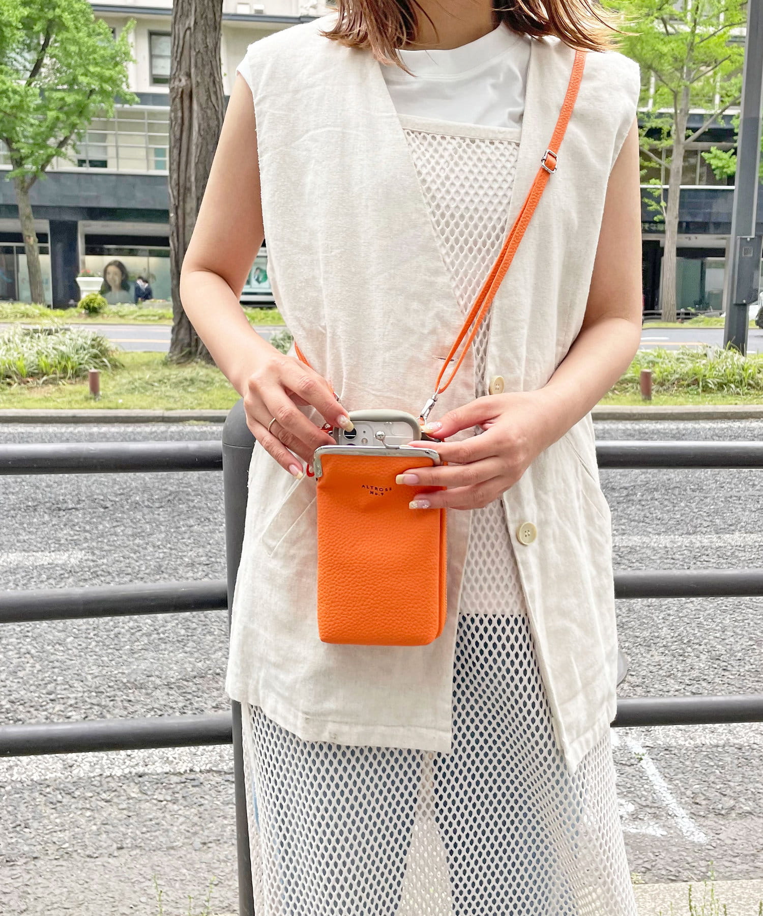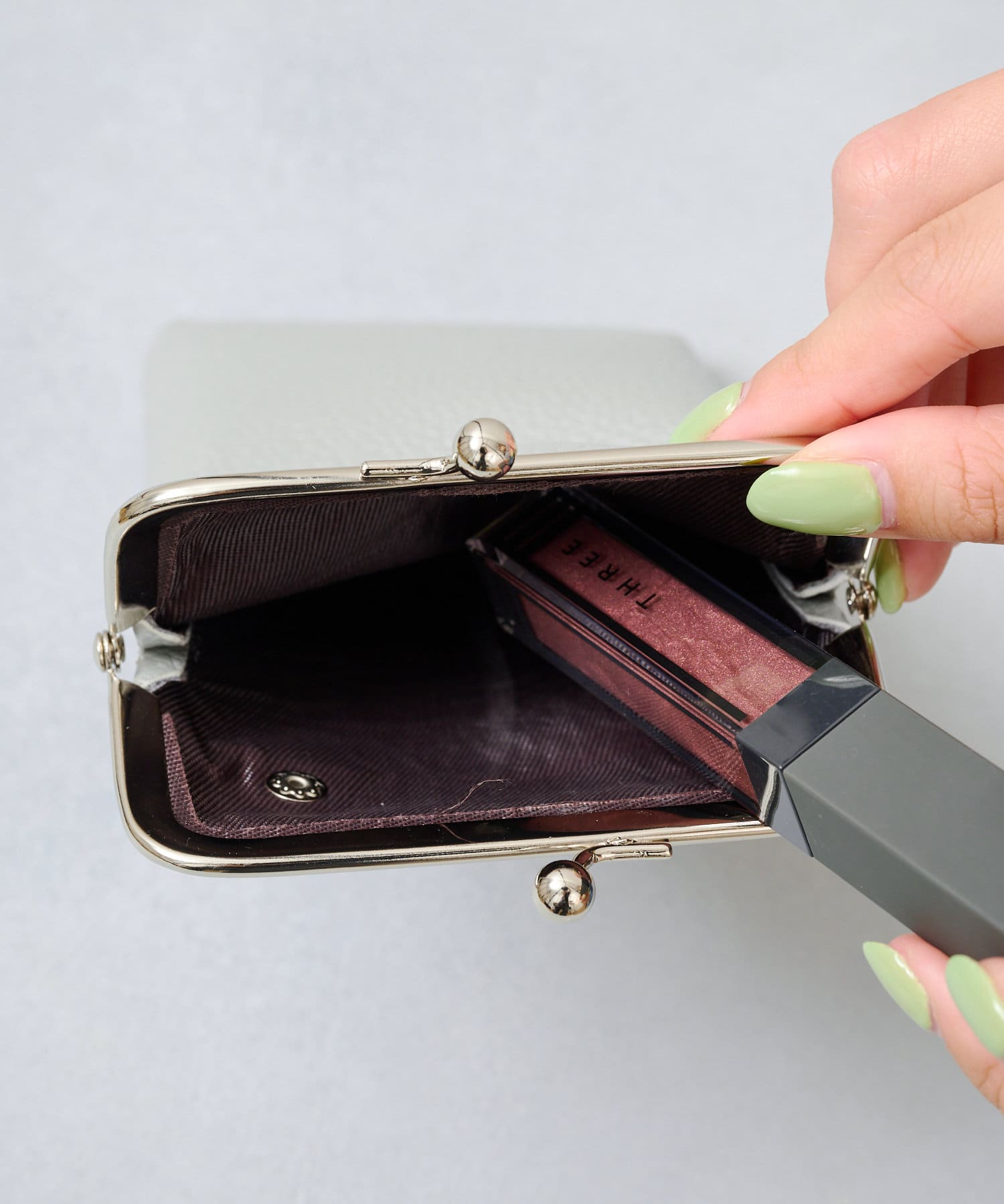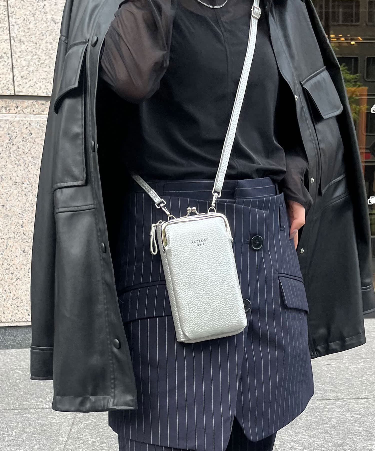 ・外側のがま口ポーチは深さがあり、コスメやスマホが収納可能♪