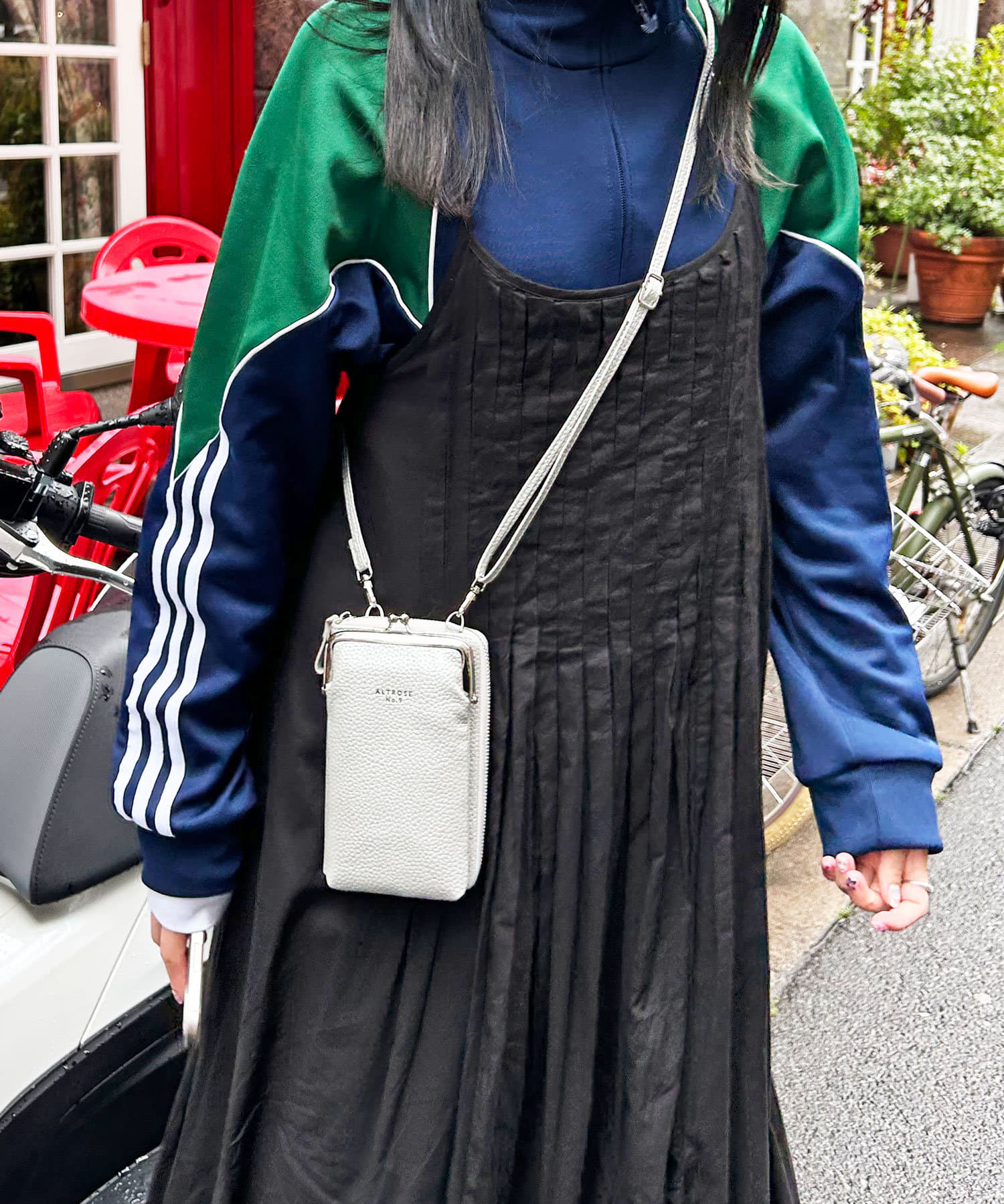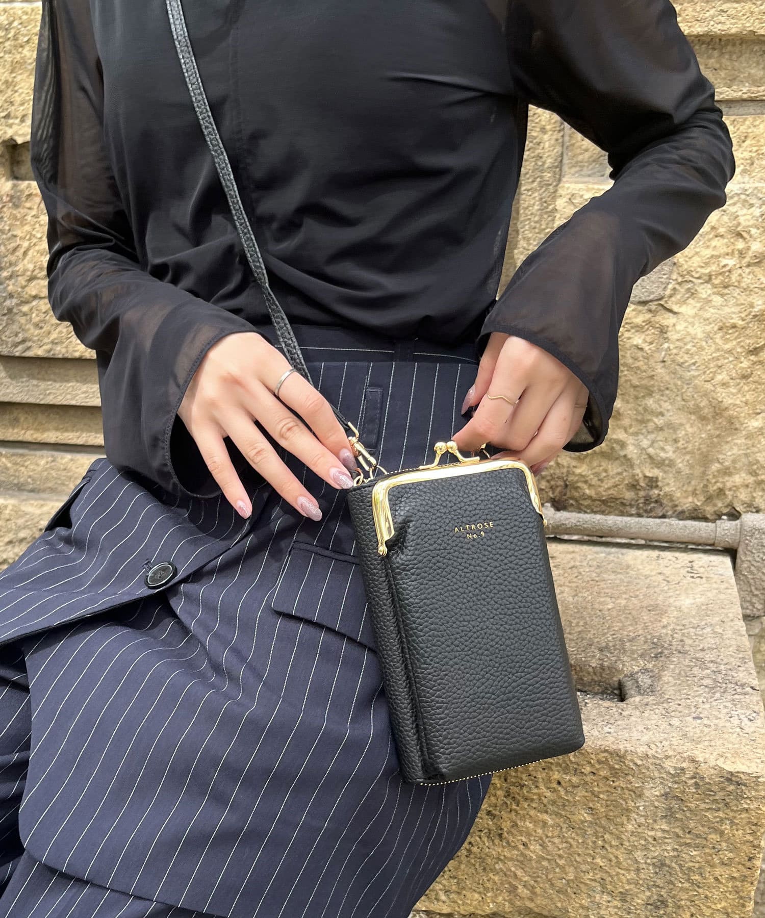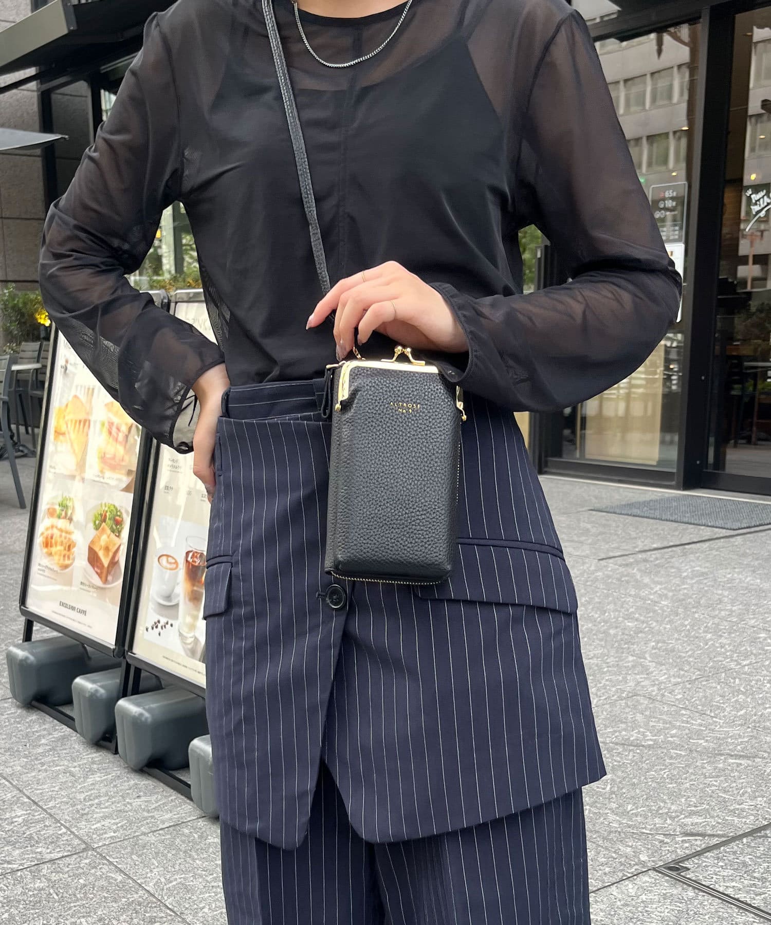 ・外側のがま口ポーチは深さがあり、コスメやスマホが収納可能♪