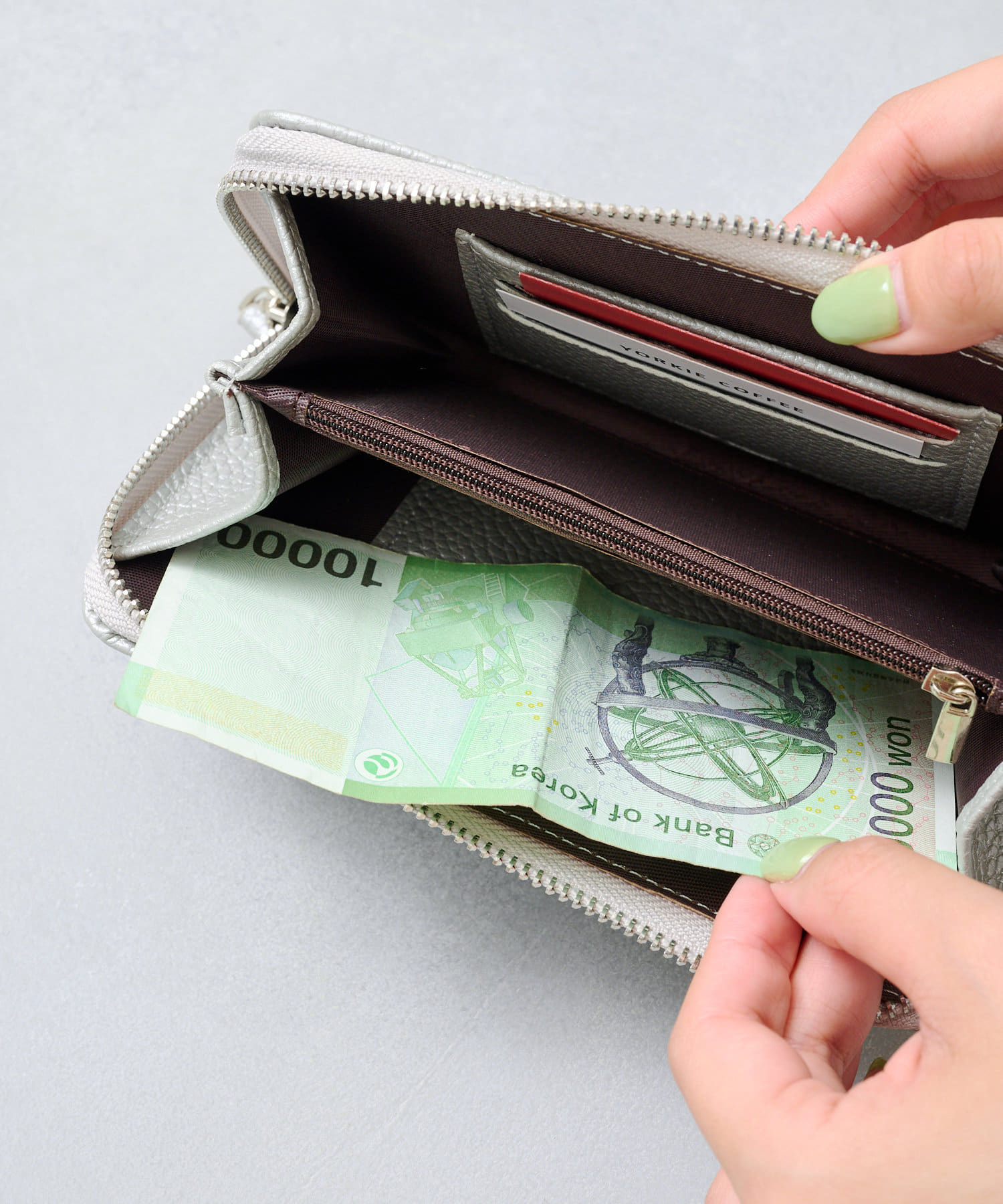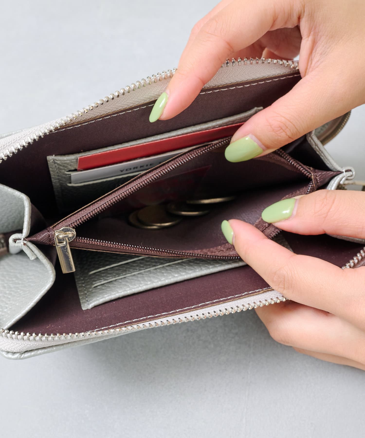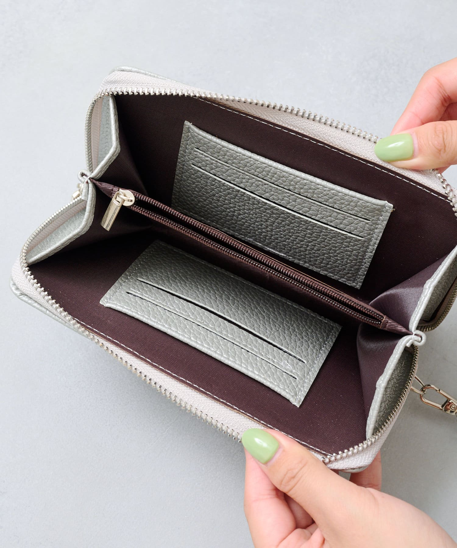 内側のお財布には、カードやお札が収納可能で機能性抜群(カードは最大6枚収納可能)