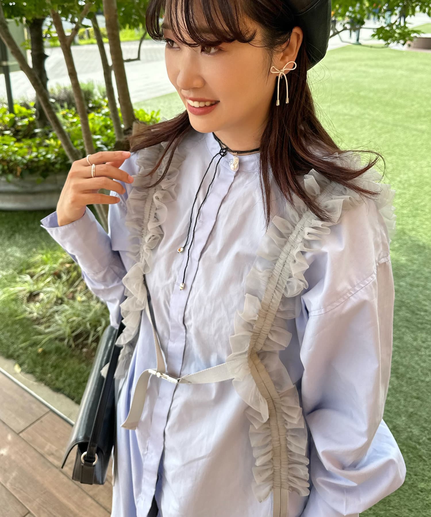 一気にトレンドライクなスタイルに仕上がる万能アイテム。