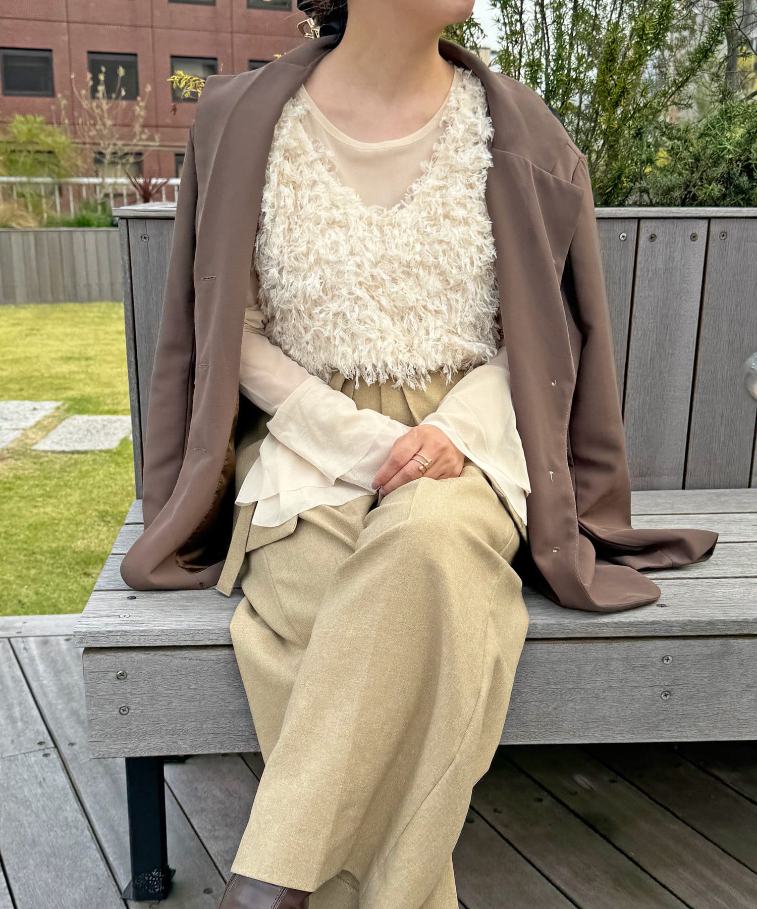 コーデをトレンドライクに仕上げるフェザーベスト