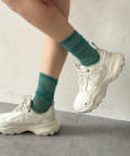 スニーカー合わせだけでなく、パンプスやローファーに合わせて、