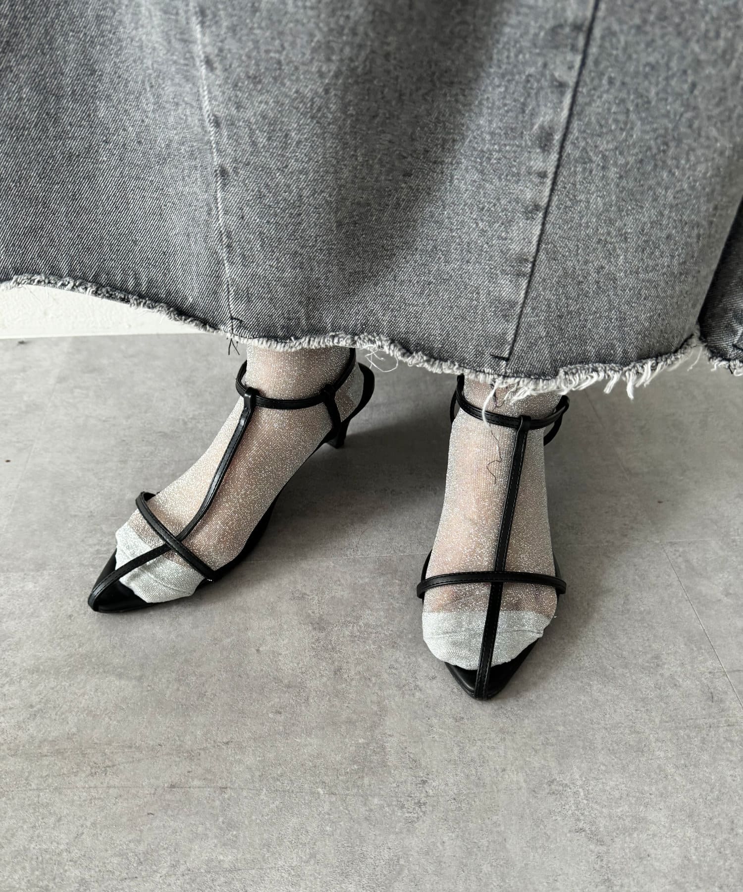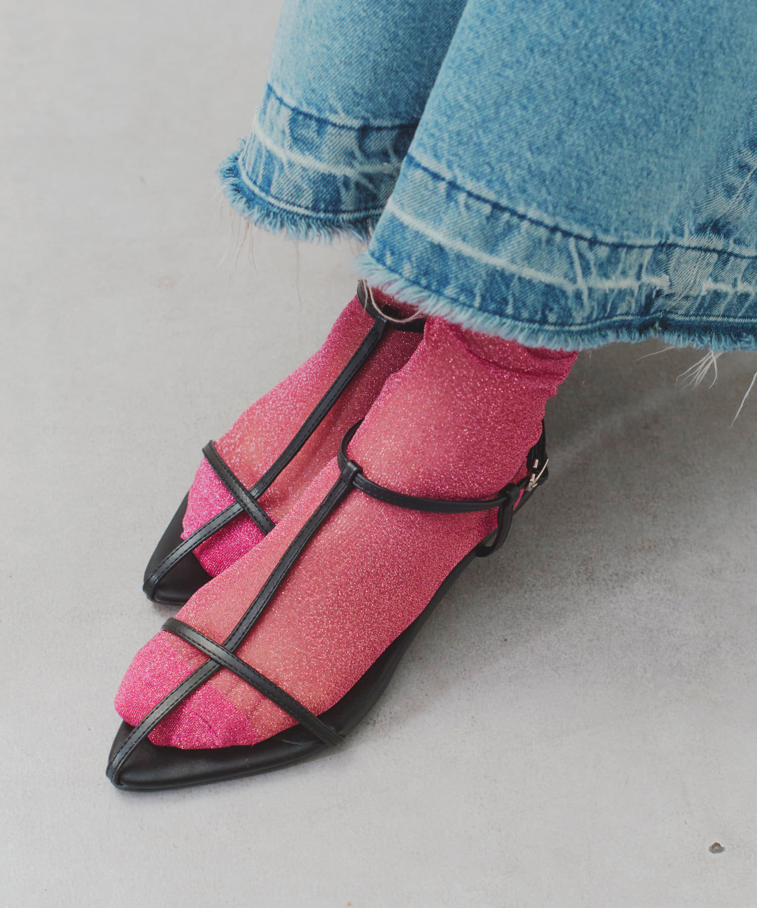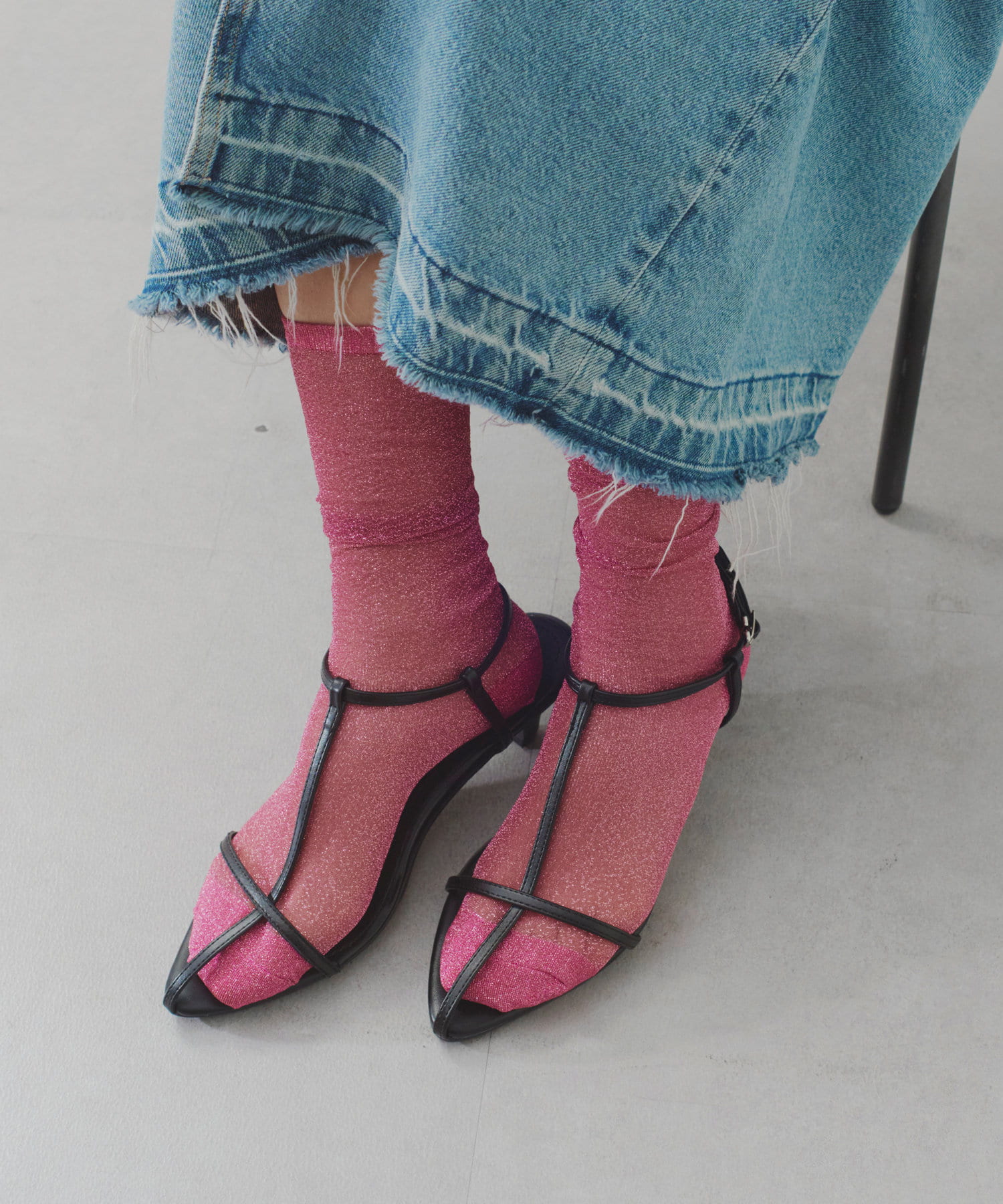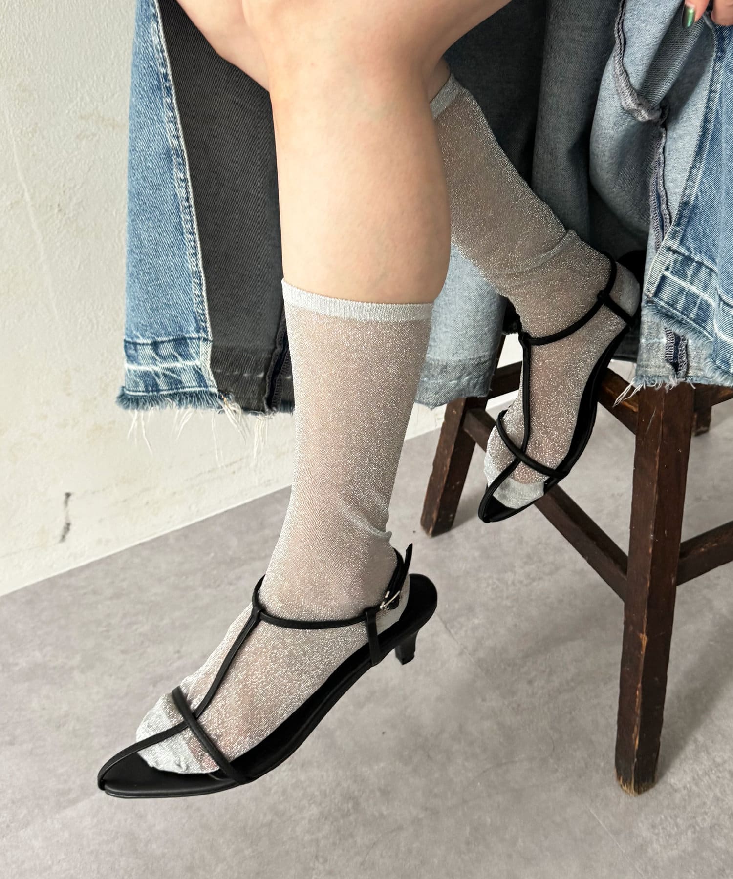 程よいシアー感と細かなラメがポイントのソックス。