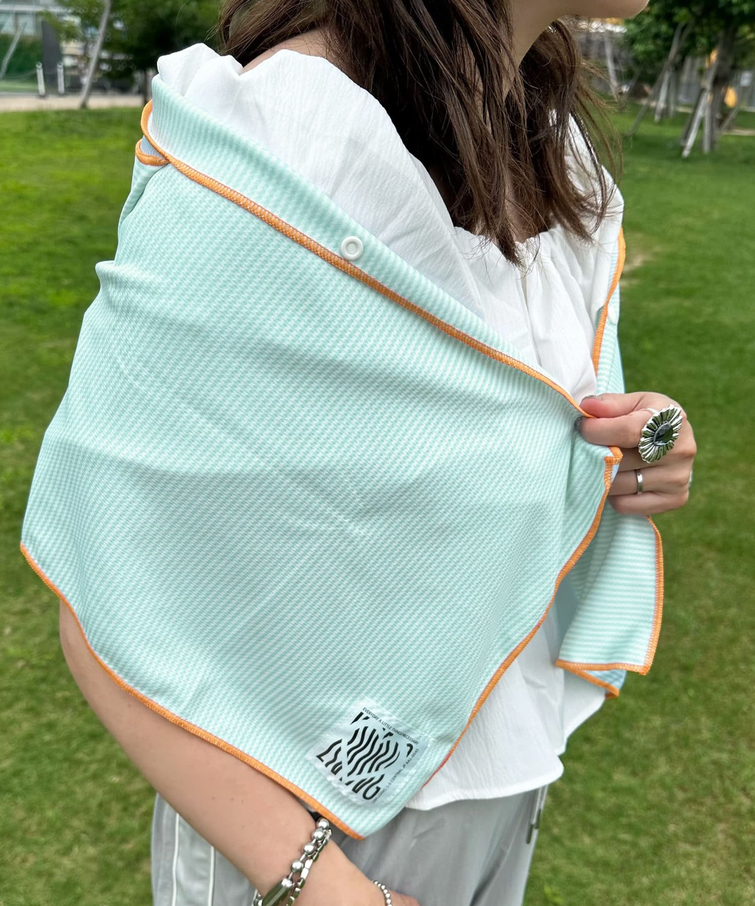 野外で普通にタオル肩にかけたりすることを考えると日除けにも使えて涼めるのは便利そうです!