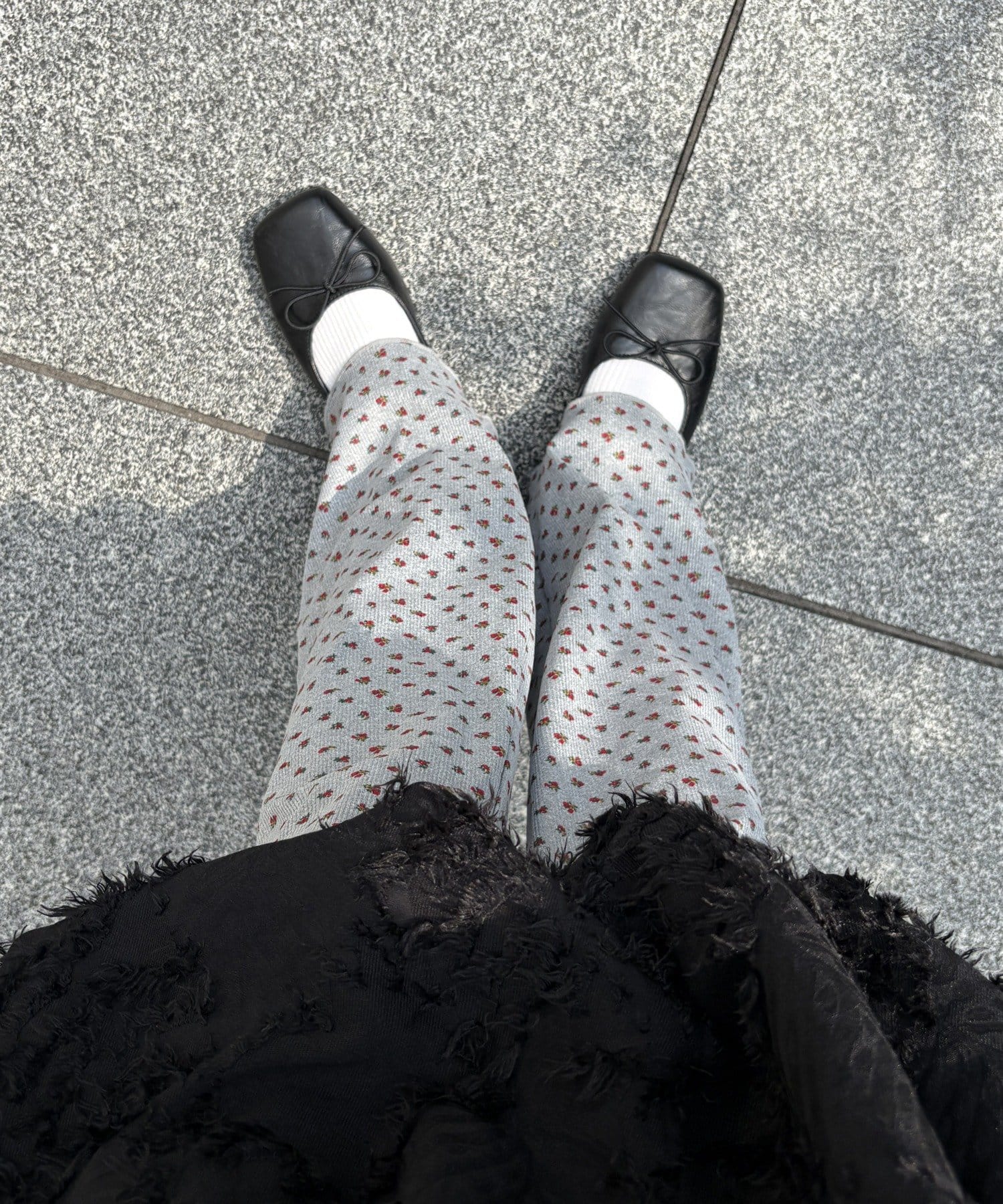 膝から裾にかけて広がるフレアシルエットが脚を長く、細く見せてくれます◎