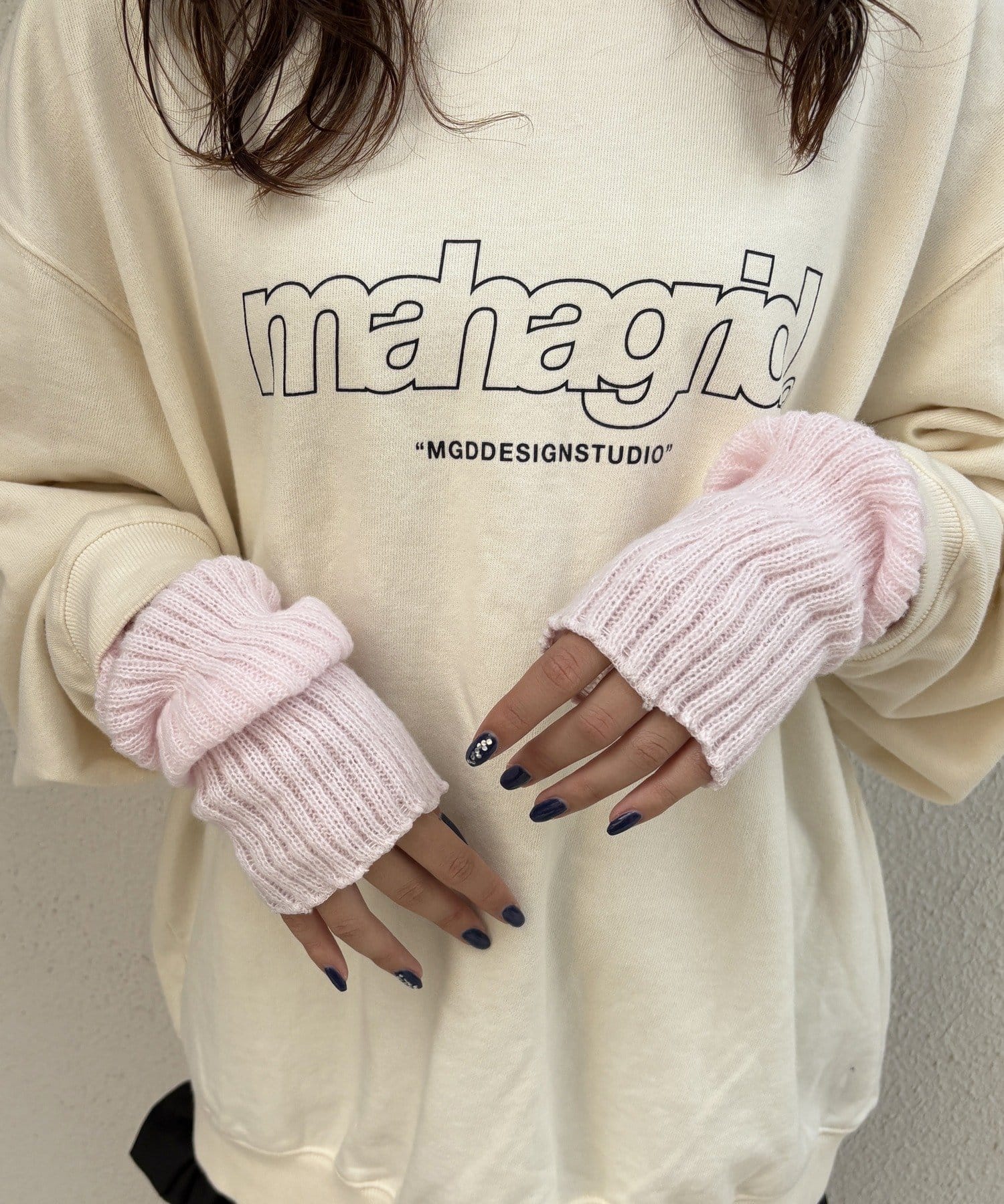 スウェットやニットに合わせて袖からチラ見せするのが可愛い♪