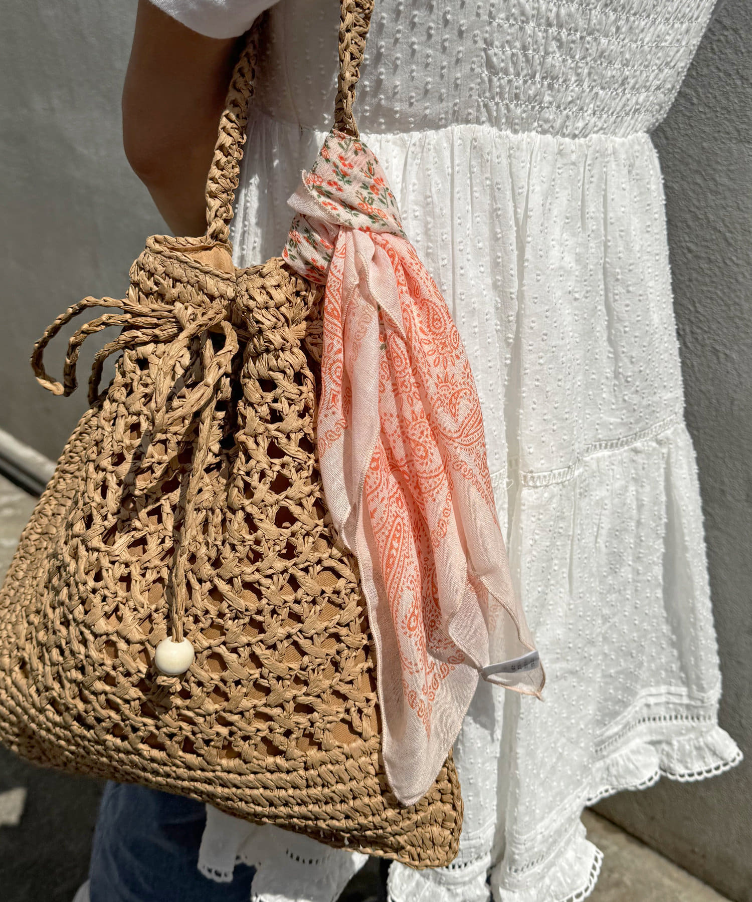 顔周りにはもちろん、バッグに巻いても可愛いです!