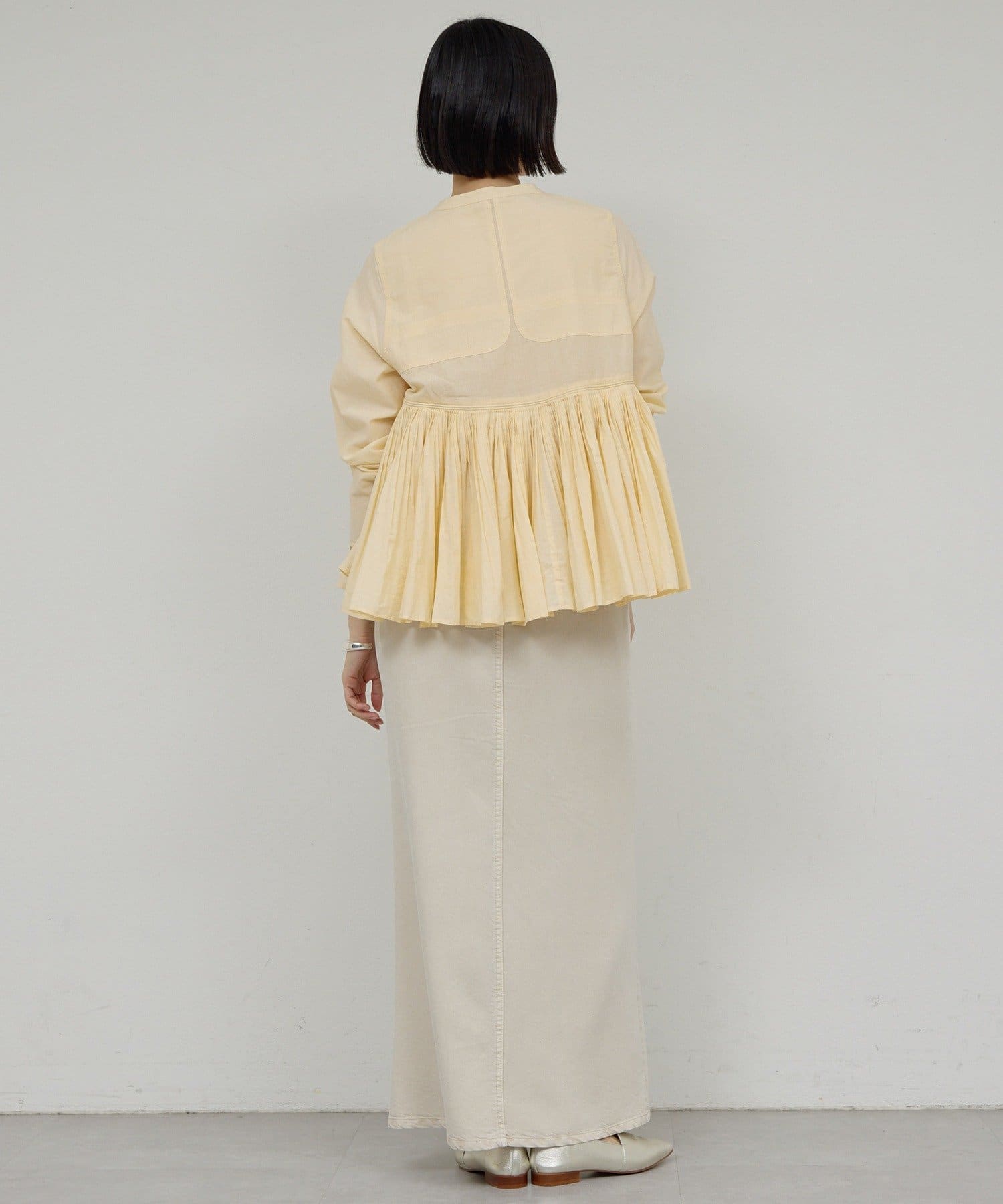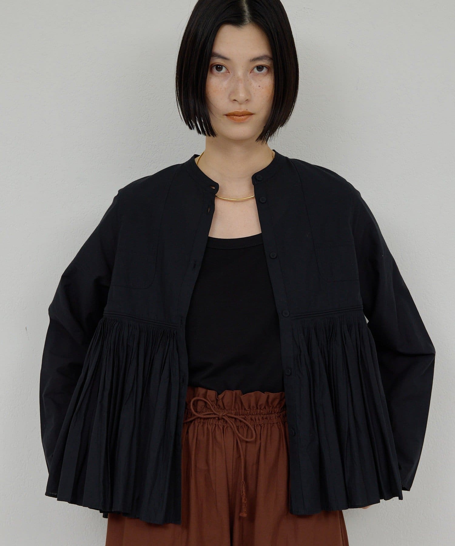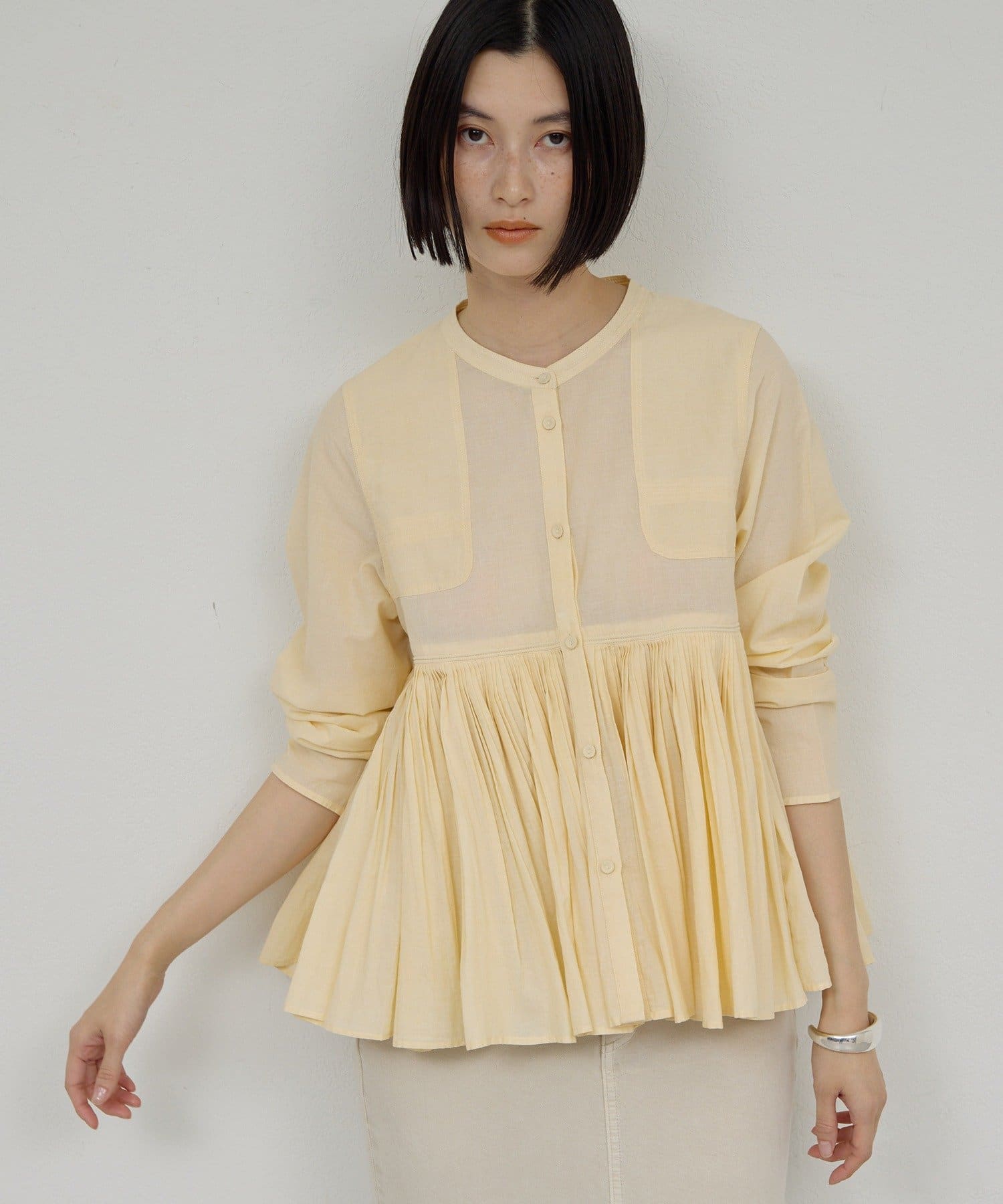 ●細やかなタックが施された、モードなブラウス。