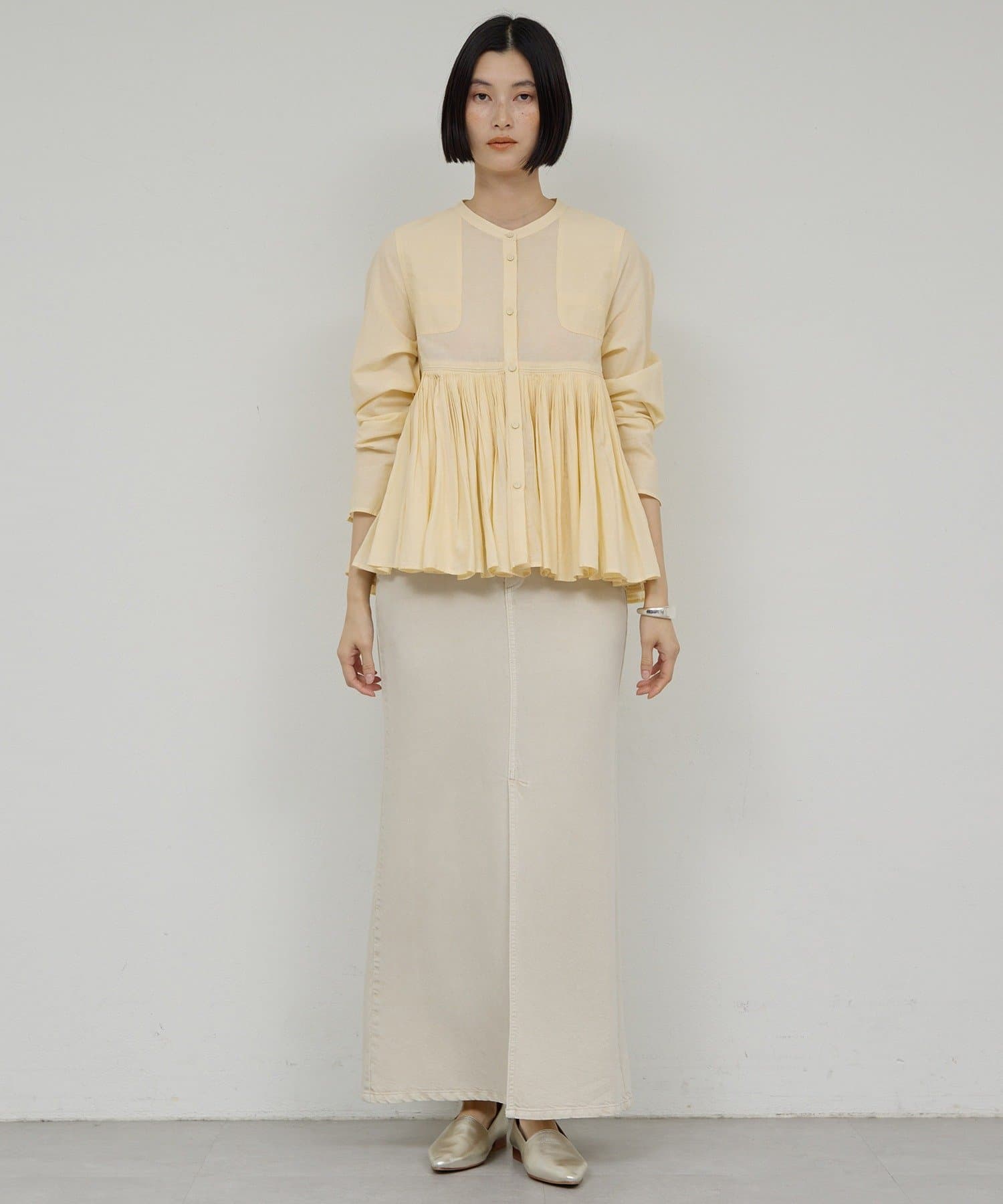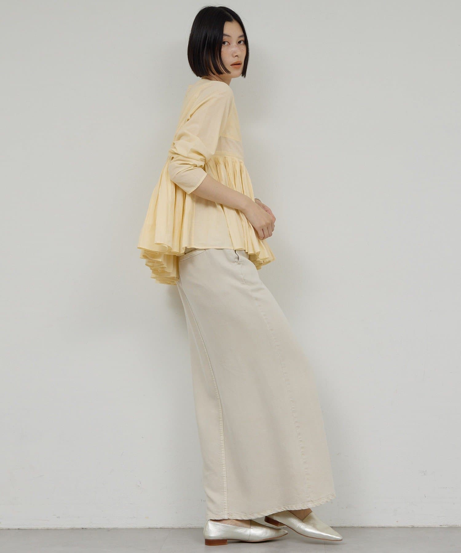 動くたびに揺れるタックが魅力のブラウス
