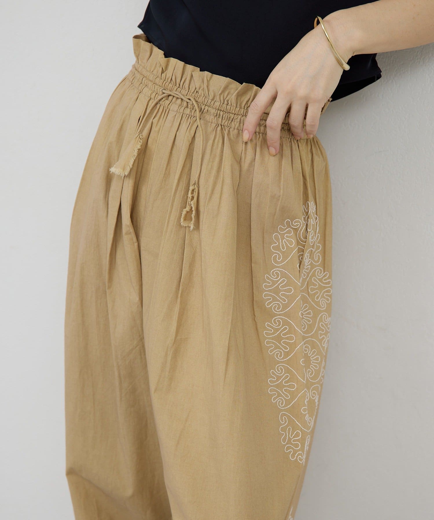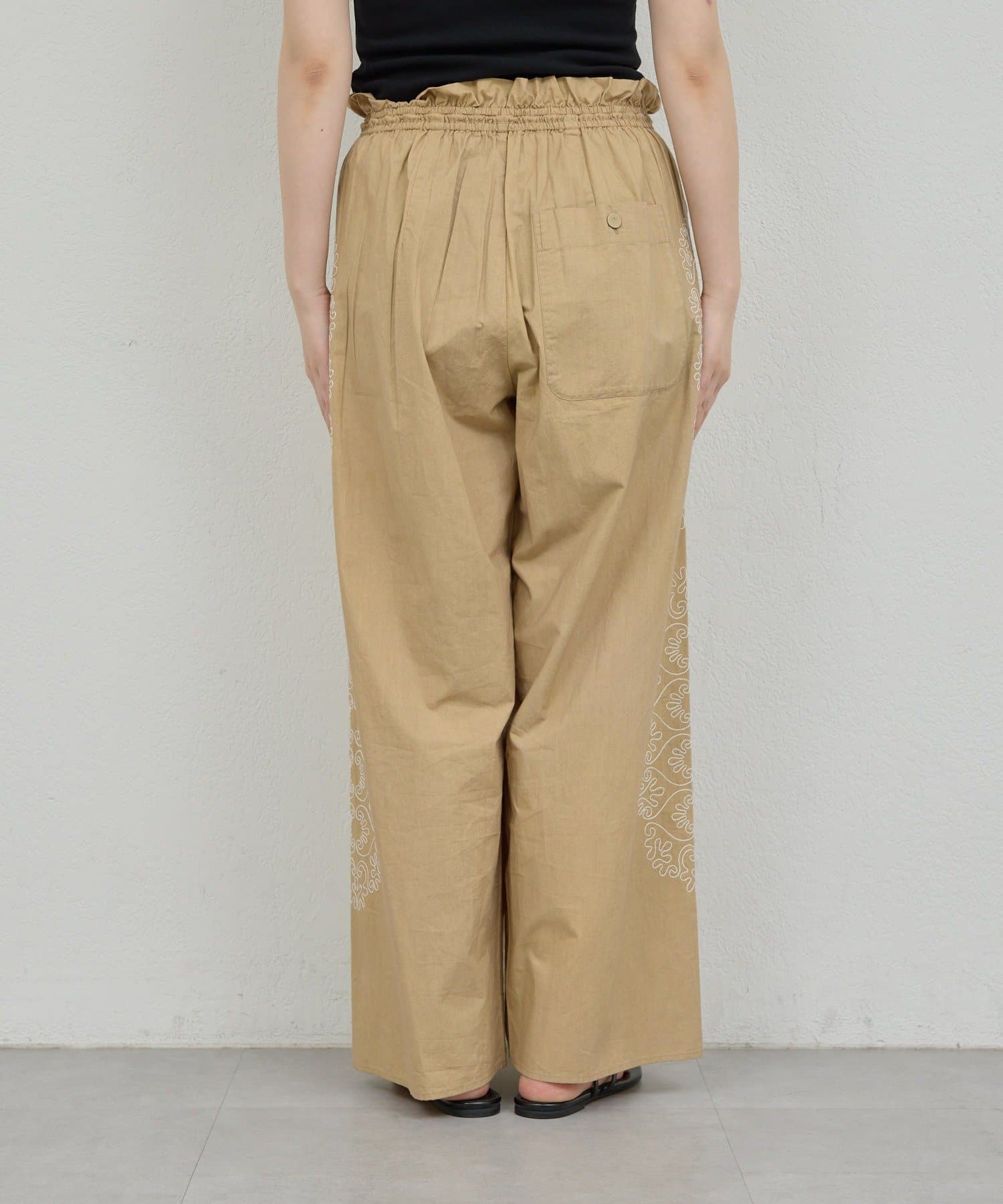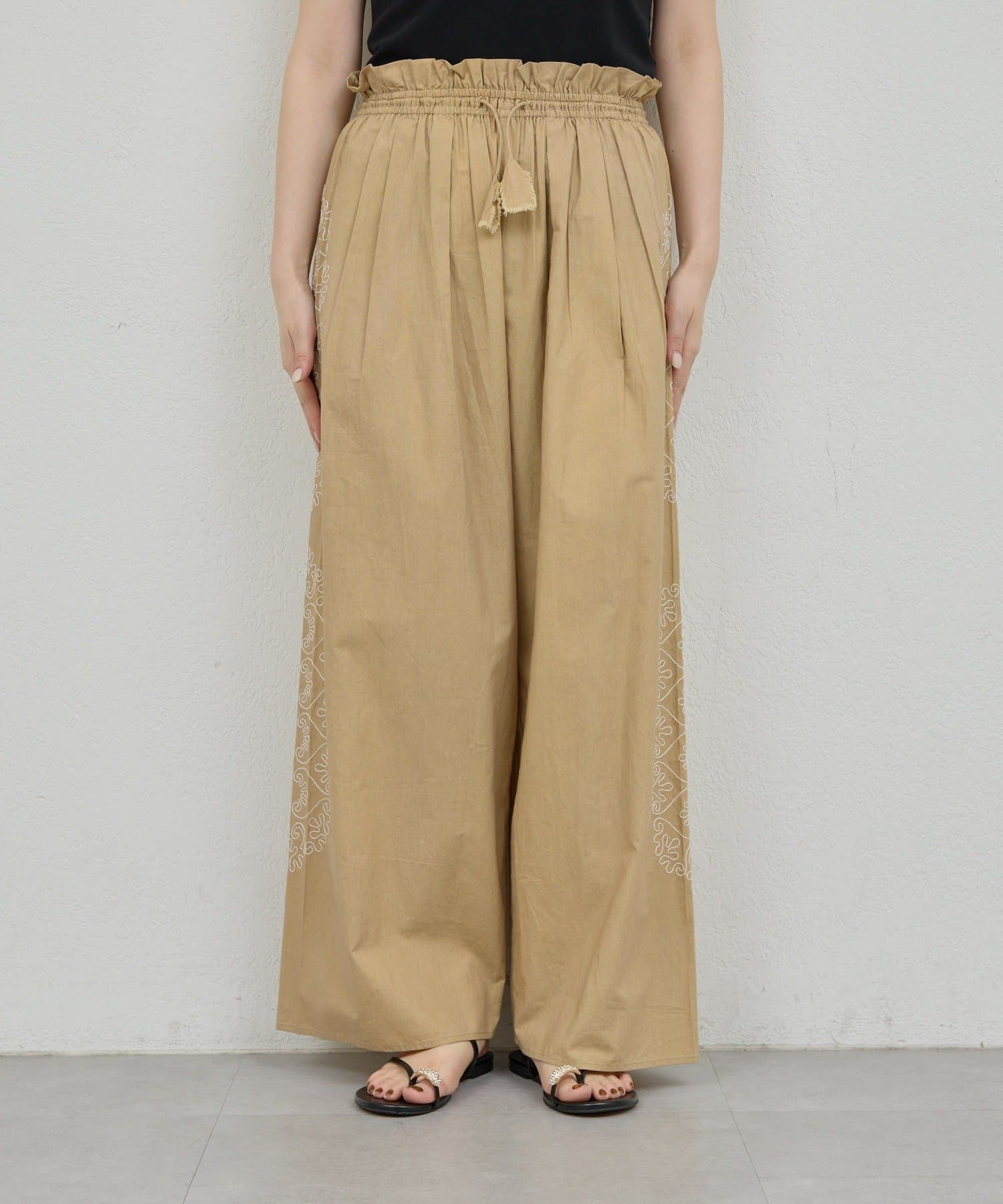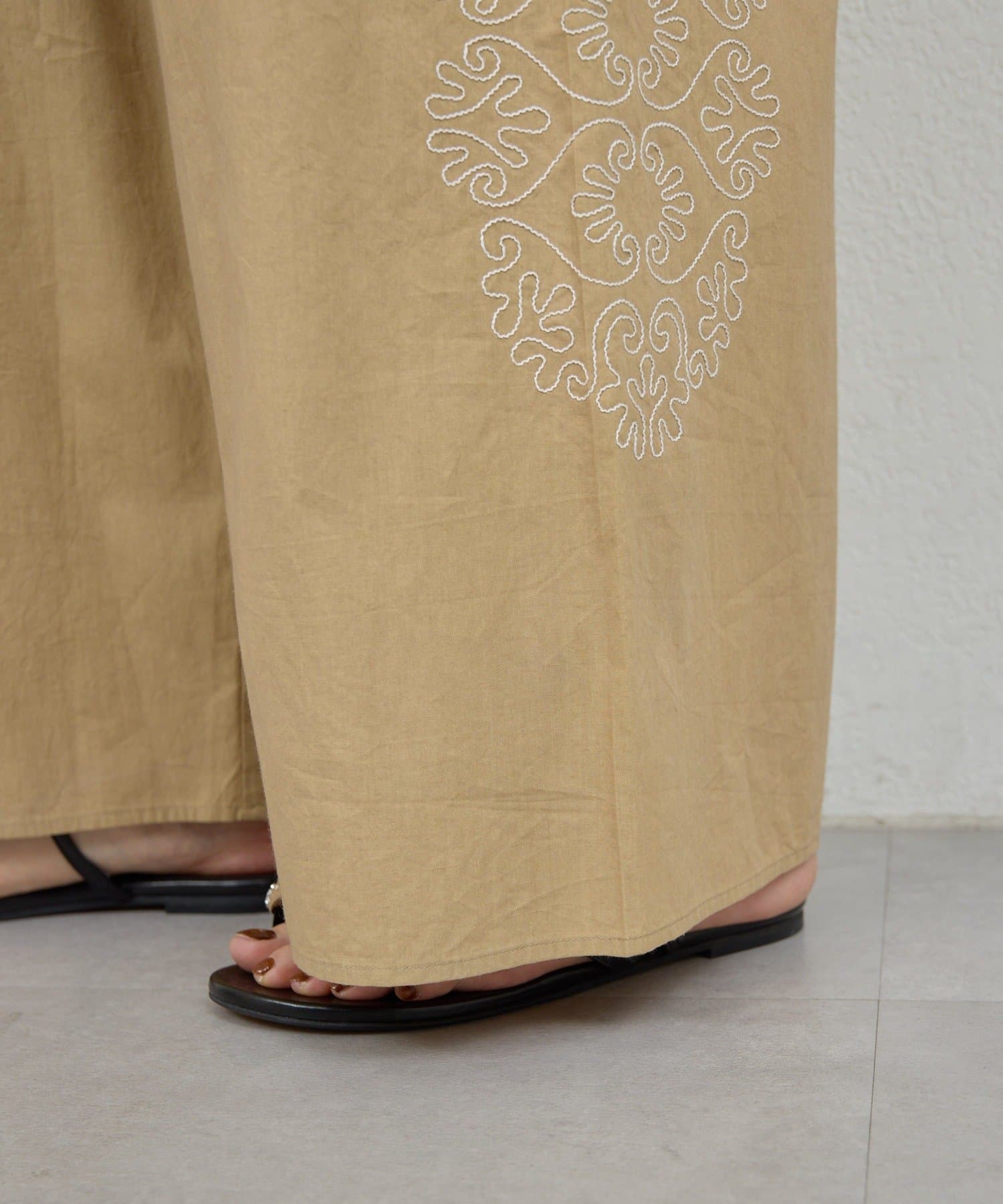 ●華やかな印象に導くナチュラルな刺繍パンツ。