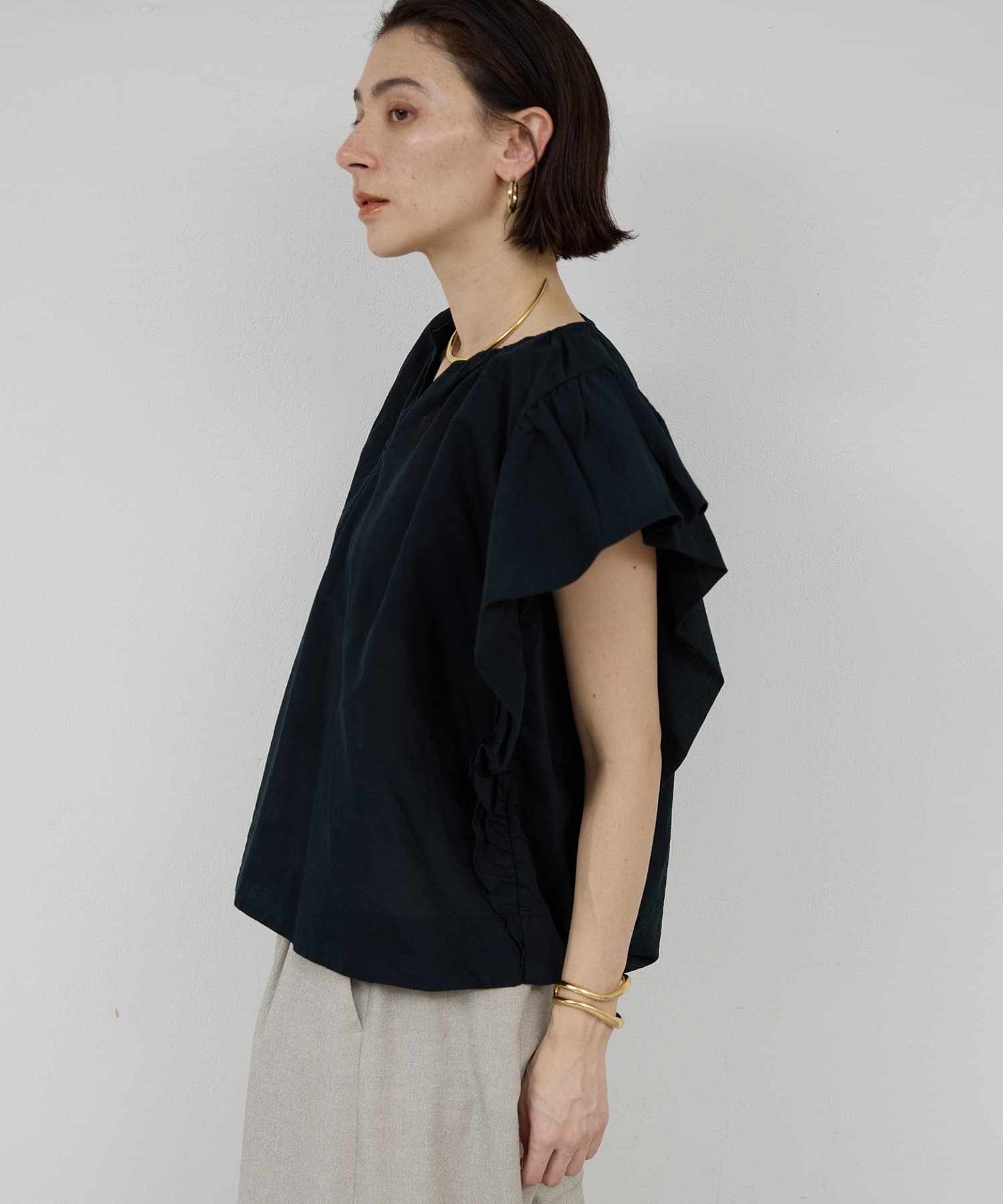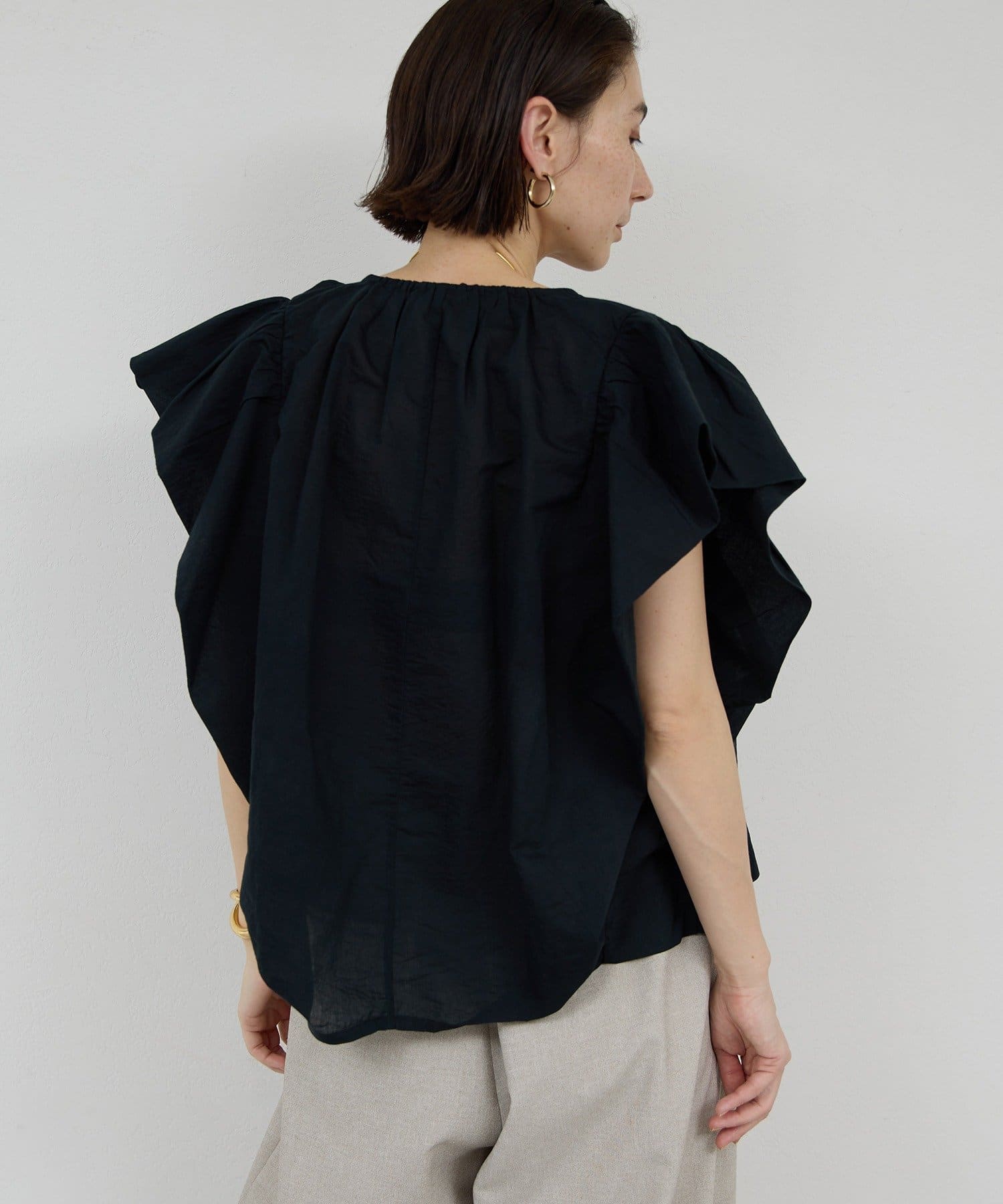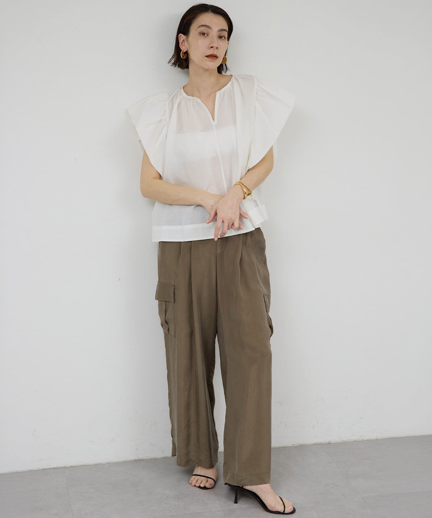 ●ギャザーが入った立体的なスリーブデザインが目を引く一枚。