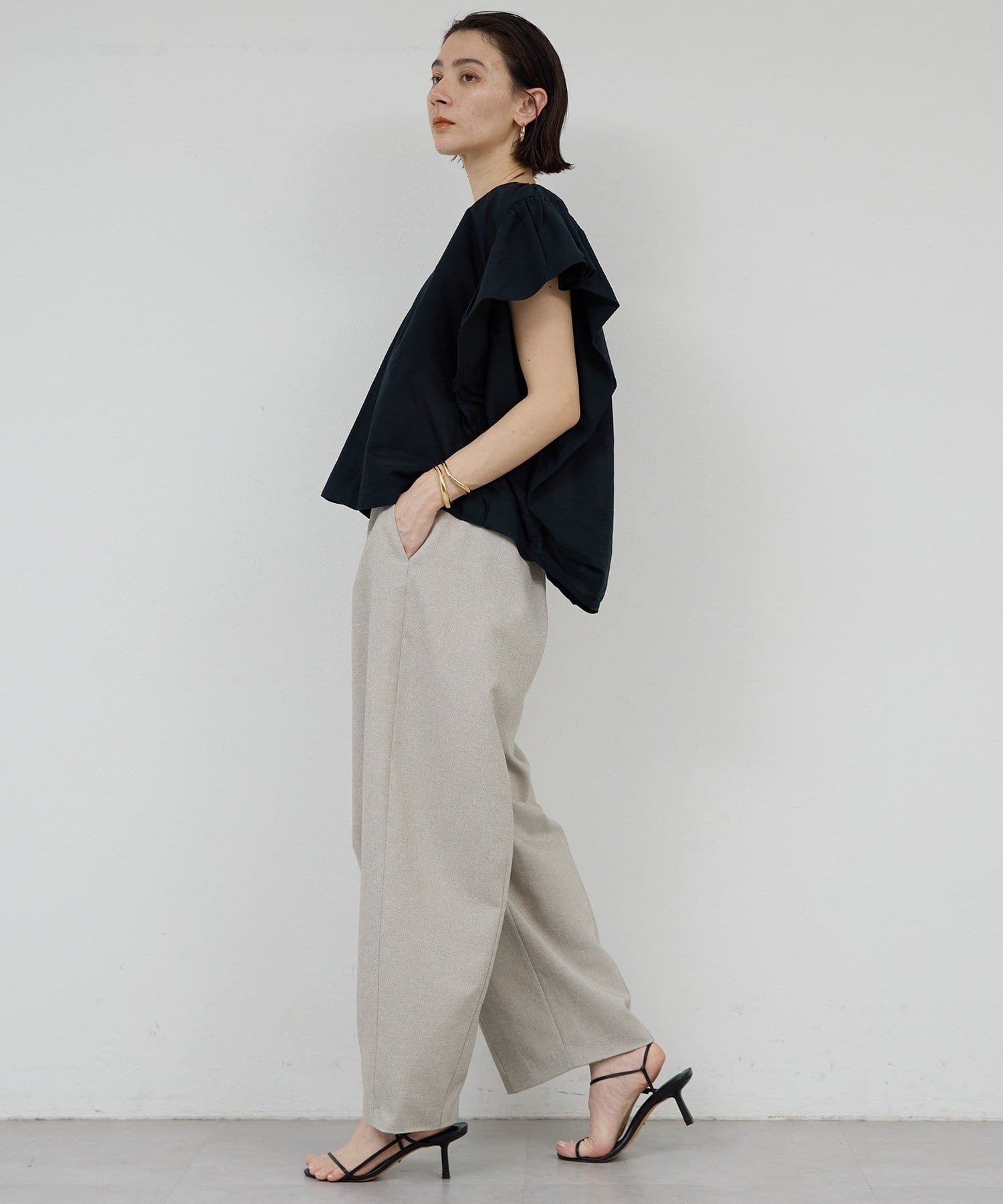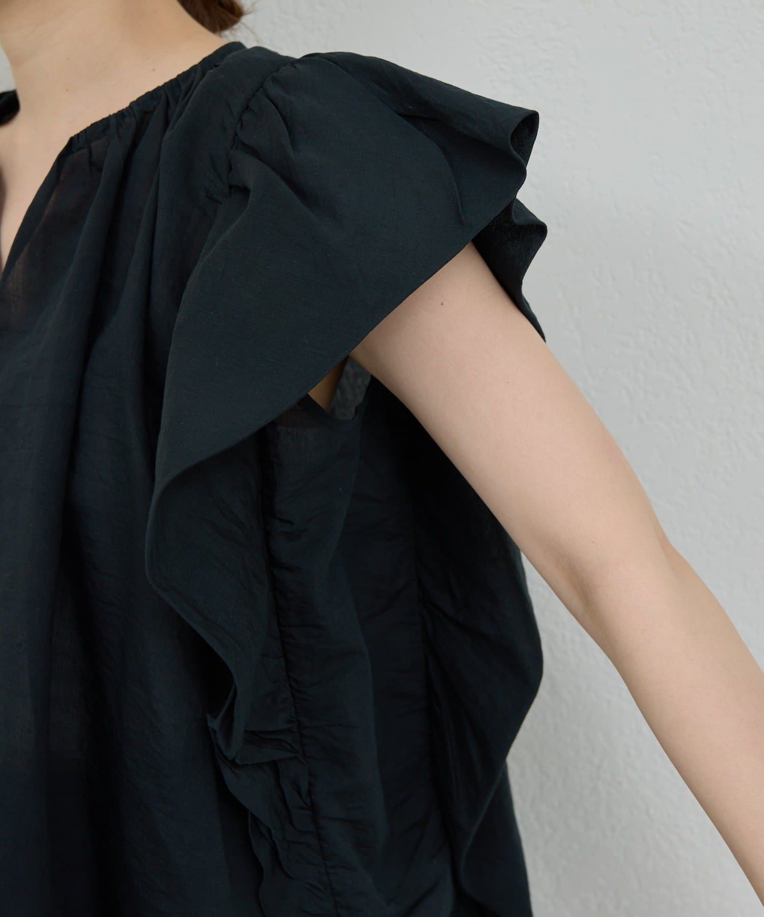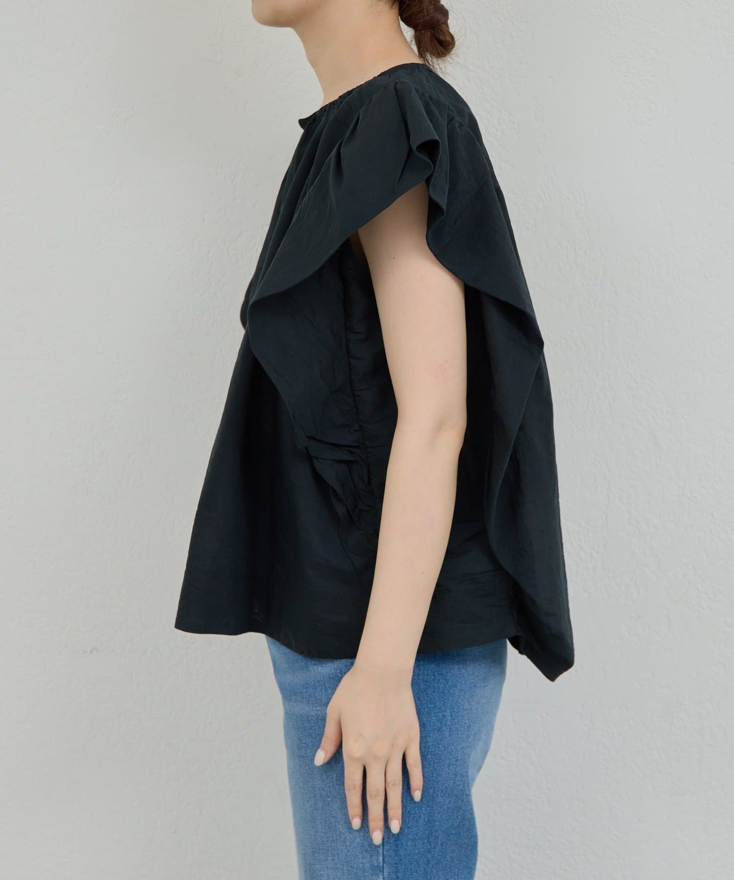●ギャザーが入った立体的なスリーブデザインが目を引く一枚。