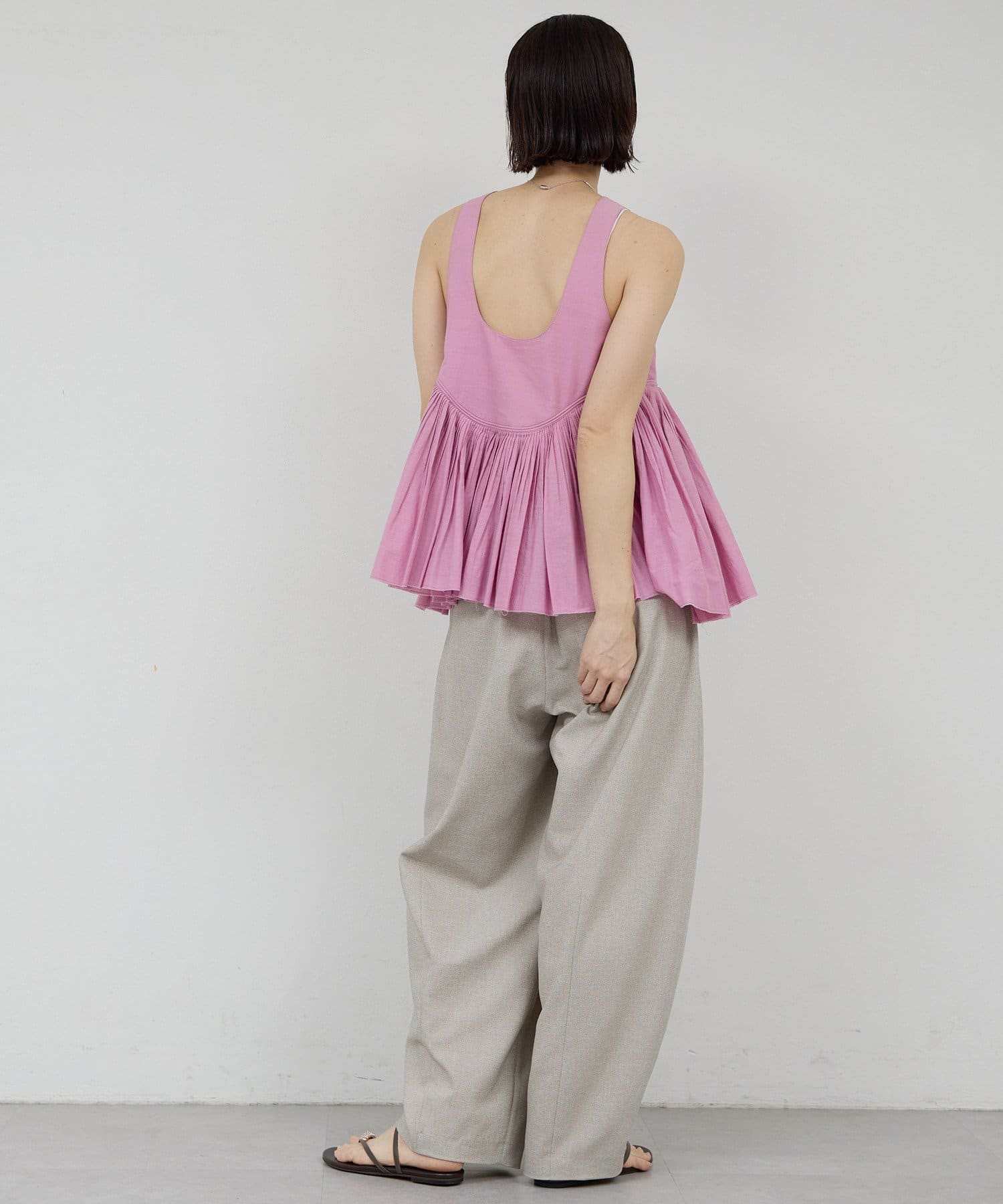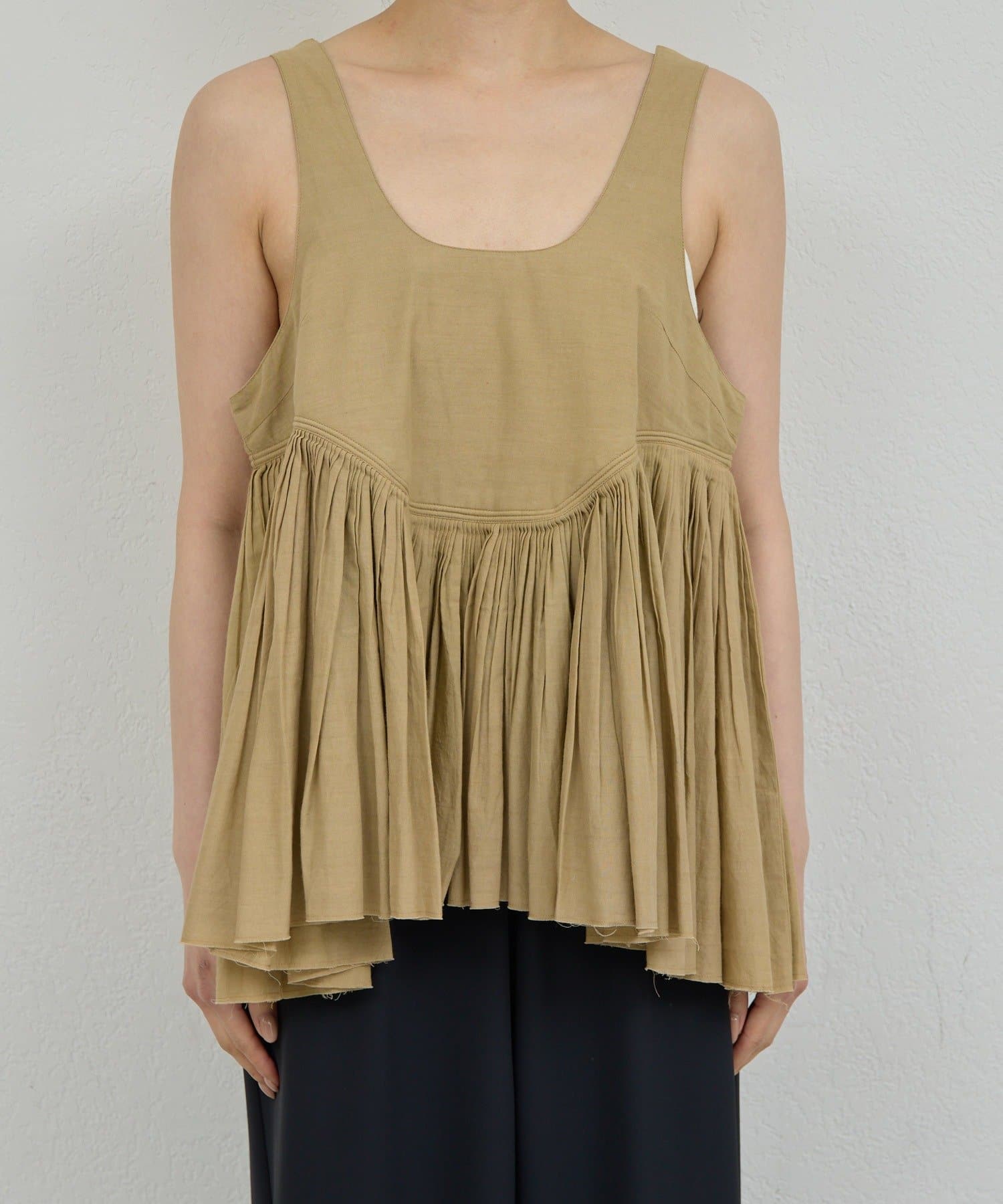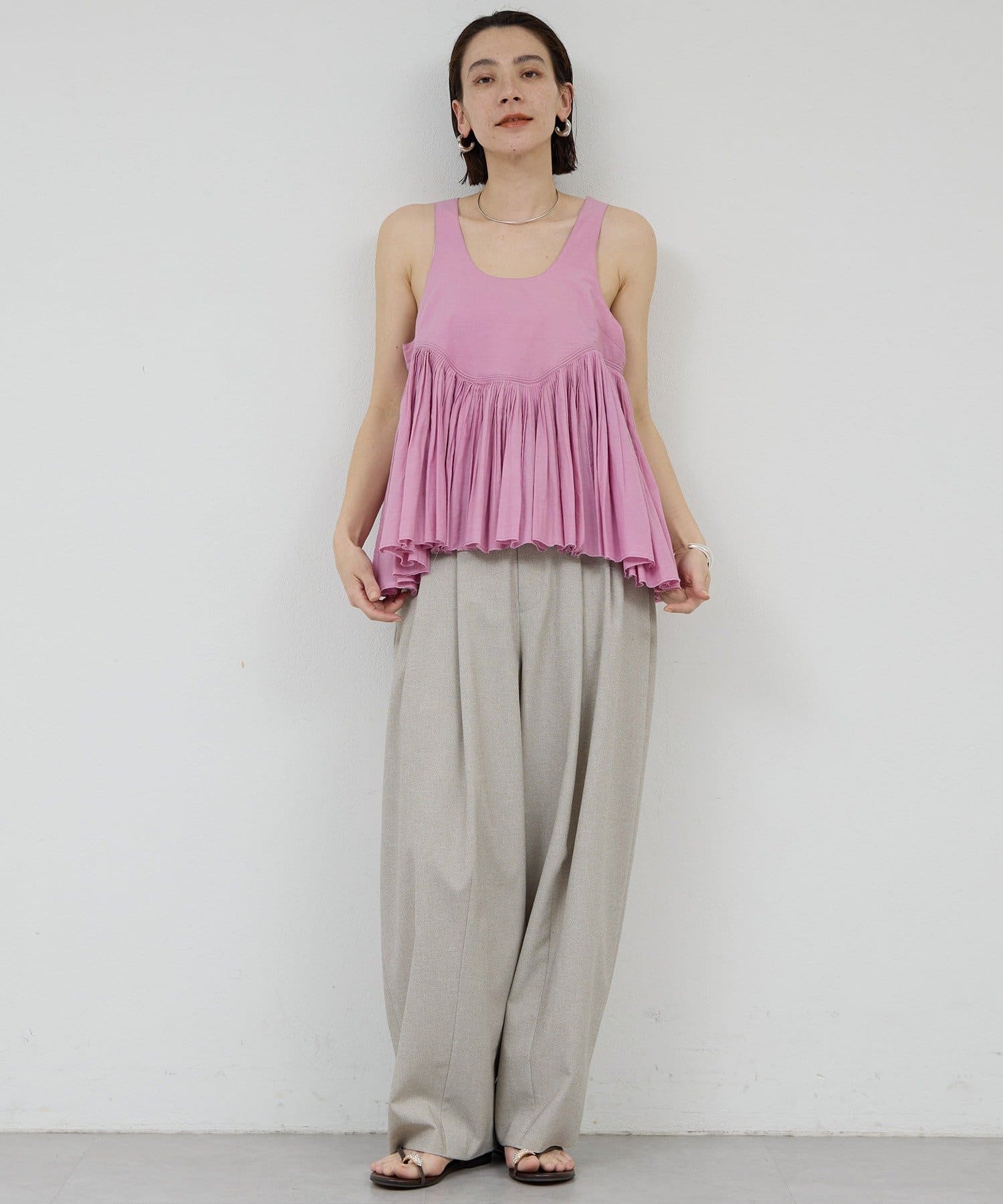 ●繊細なギャザーが印象的なノースリーブブラウス。